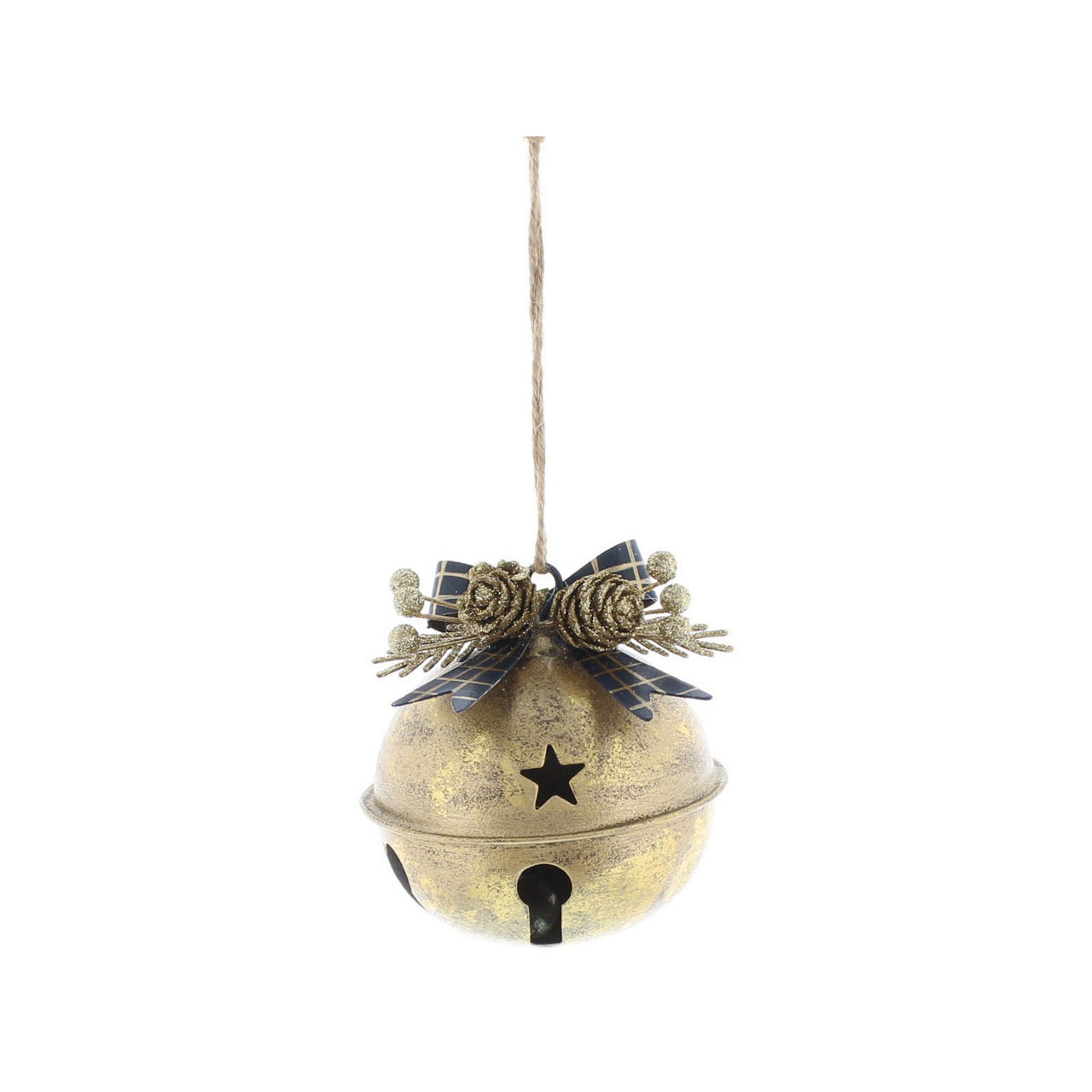 - Bell shape, bow and festive details, rope swing tag hanging loop