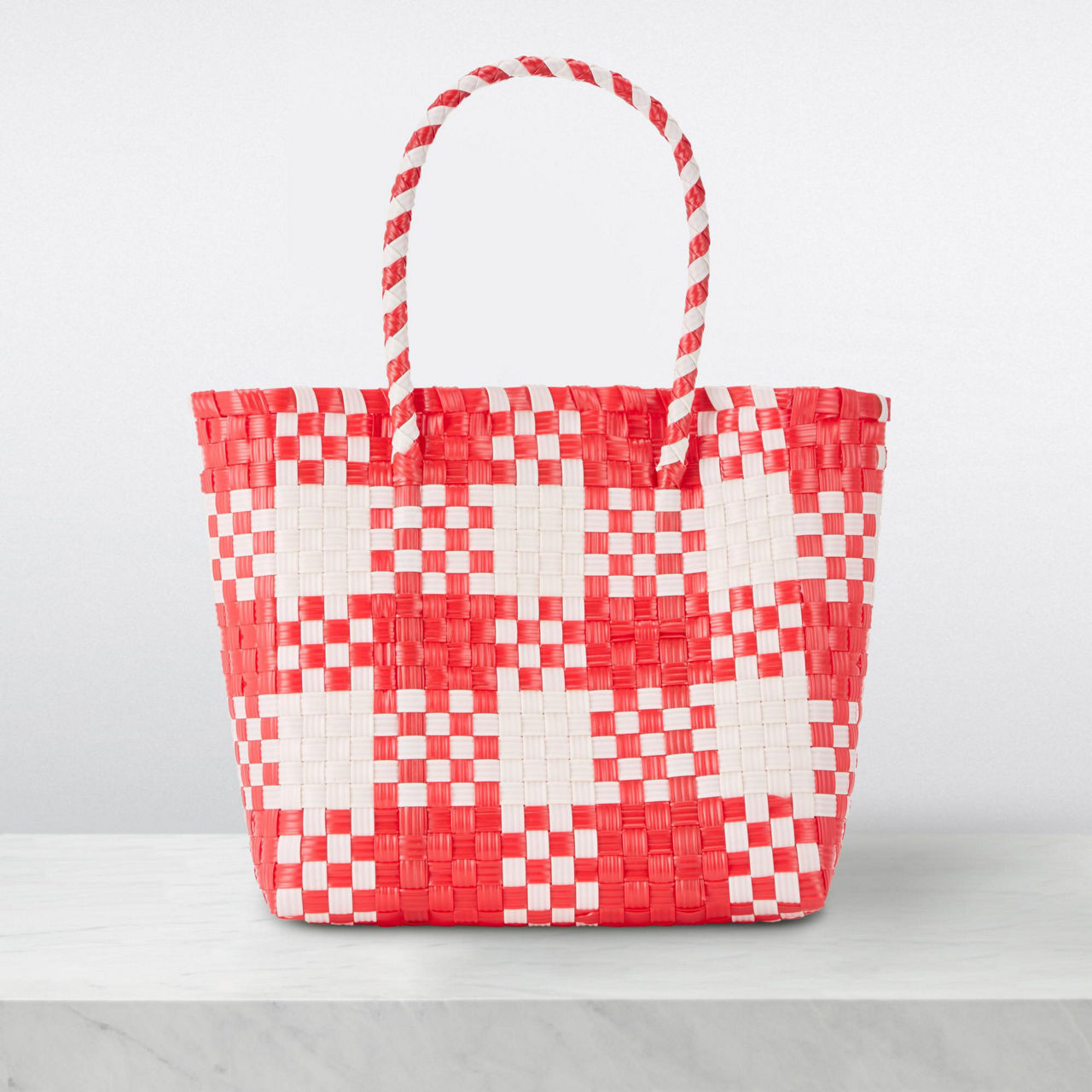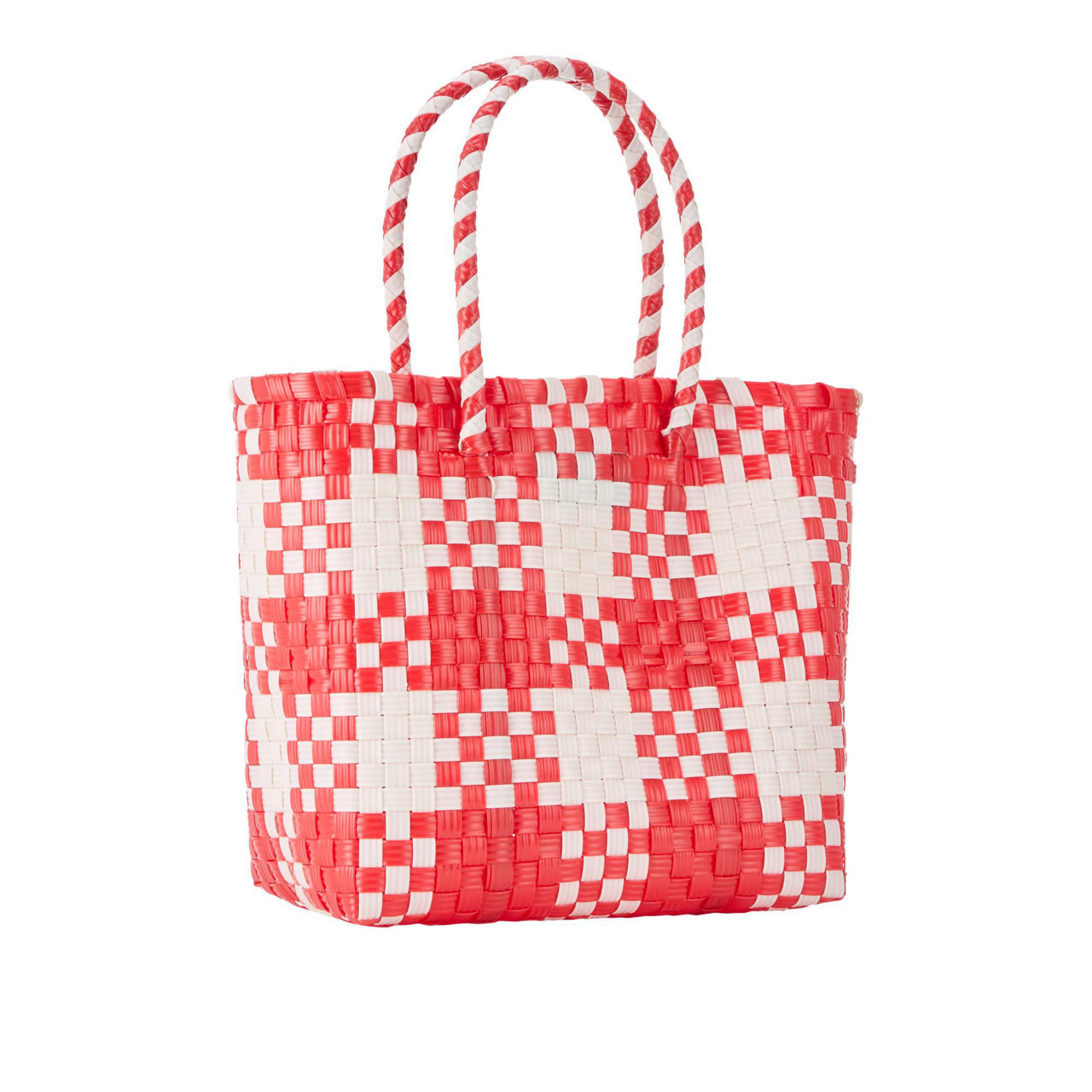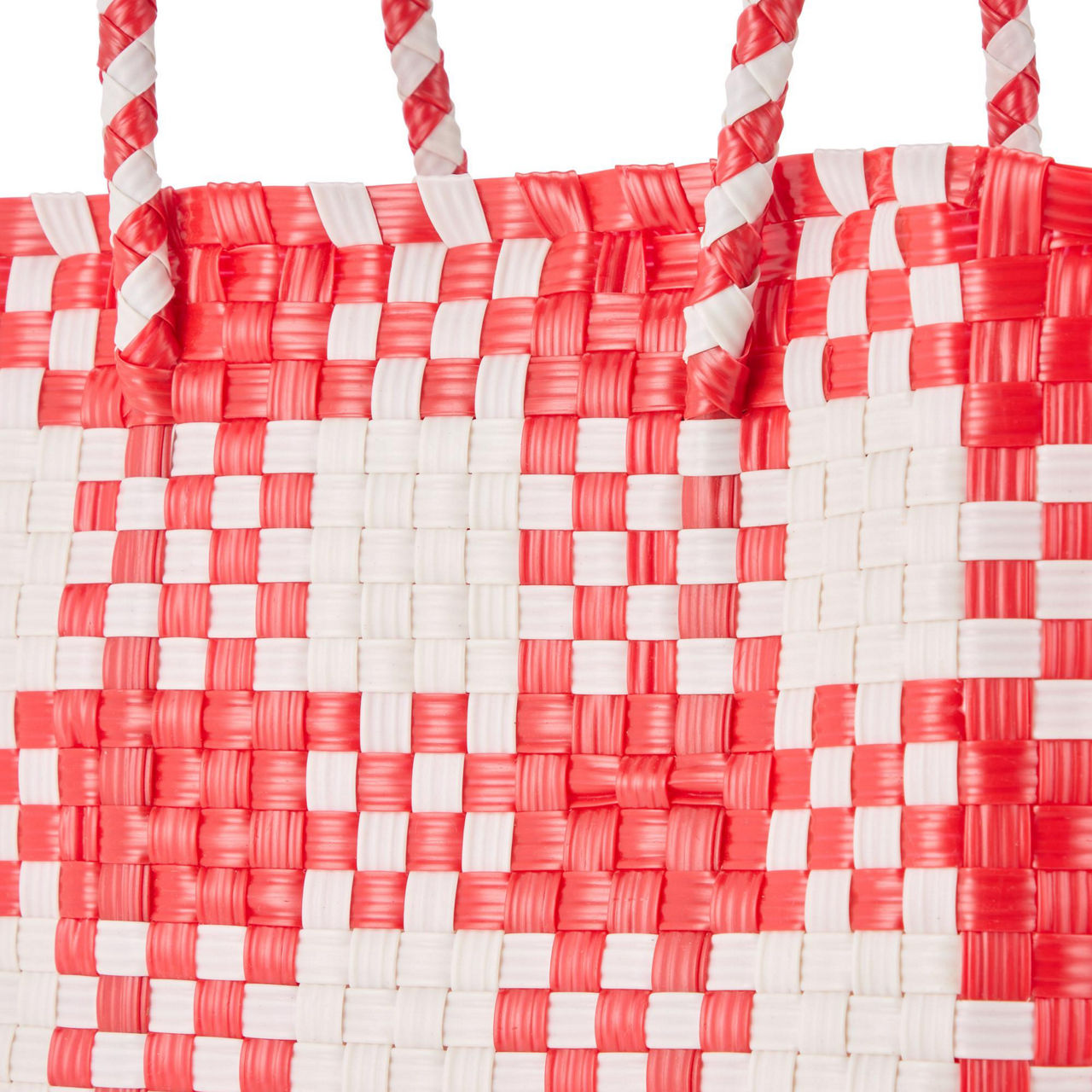 - Woven design, checked pattern, two top handles