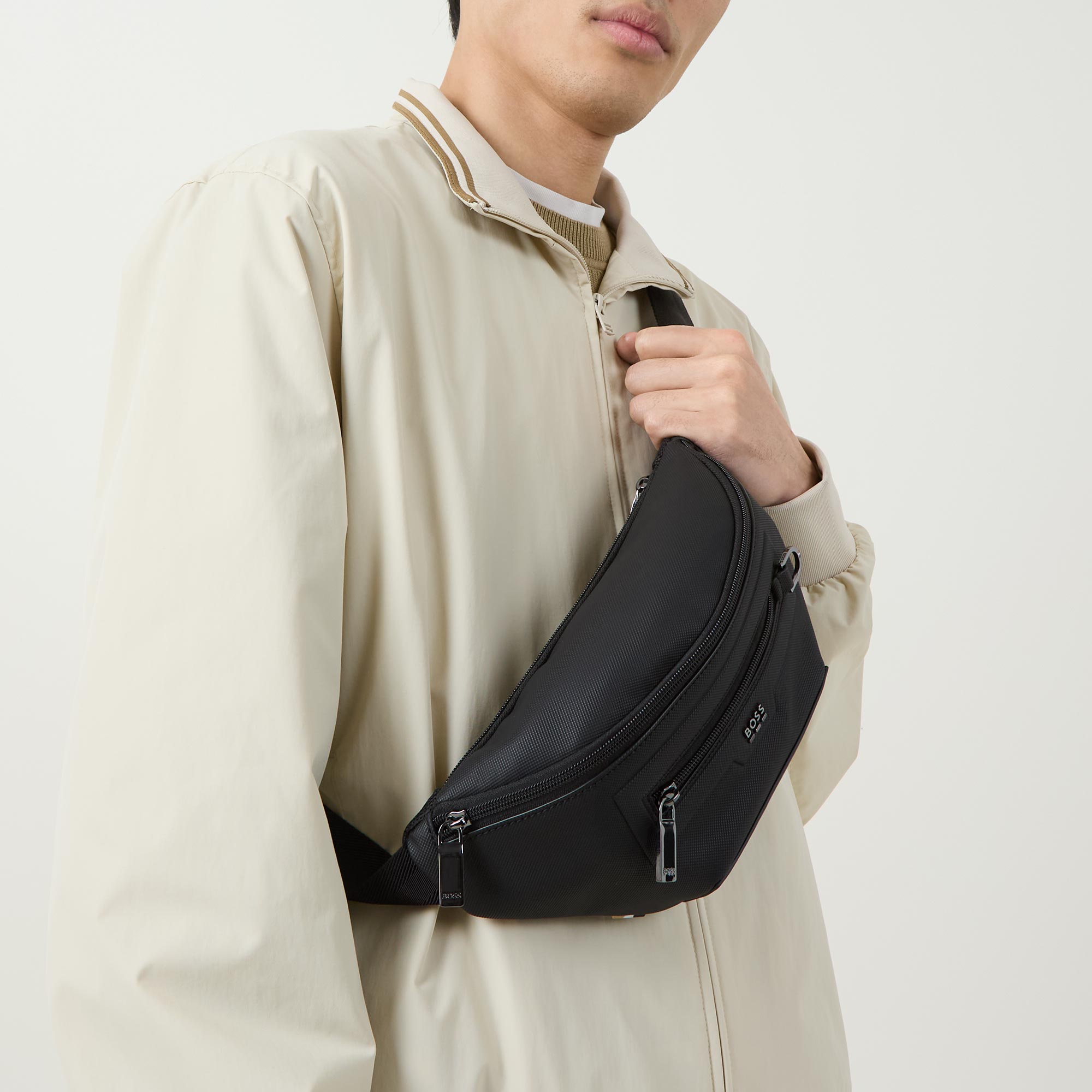 - Adjustable strap with clasp closure, zip fastening, gunmetal-tone hardware, logo details, front zipped pocket, D-ring to the front