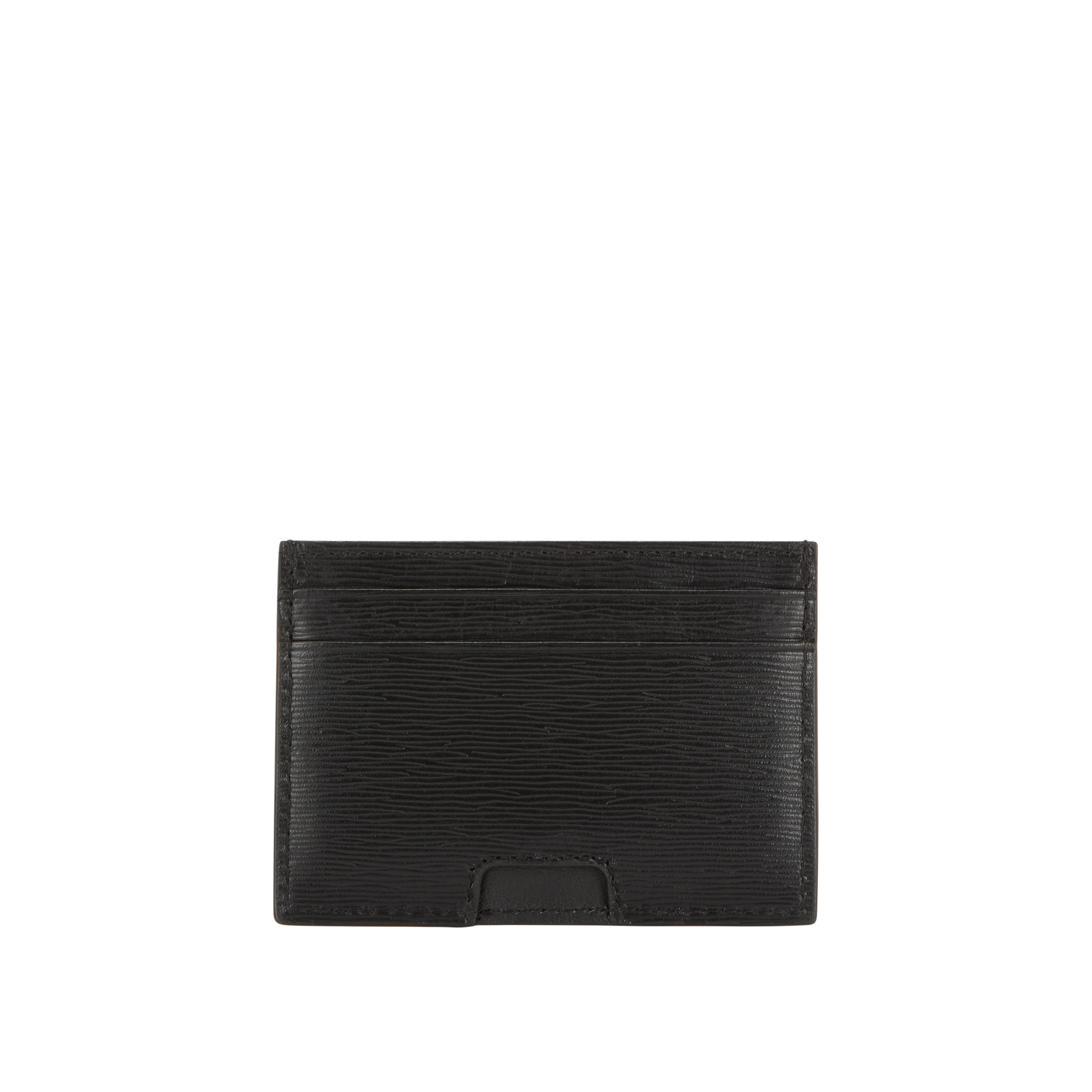 - Four card slots, logo hardware, silver-tone finish, textured design