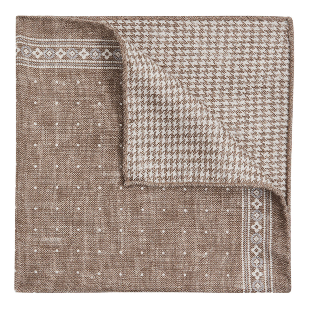 - Square-shaped, polka-dot and dogtooth design, reversible, smooth fabric