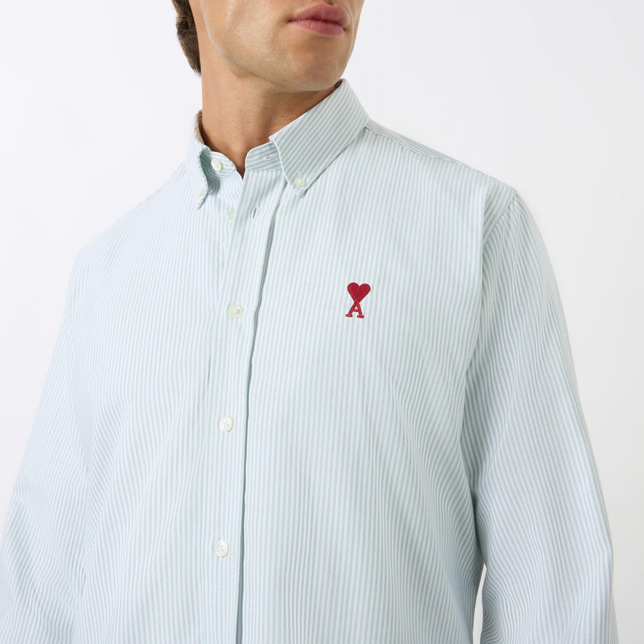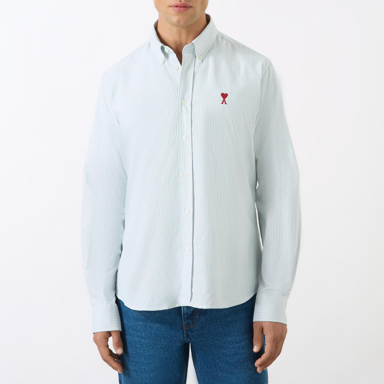 AMI ADC Logo Embroidered Striped Shirt