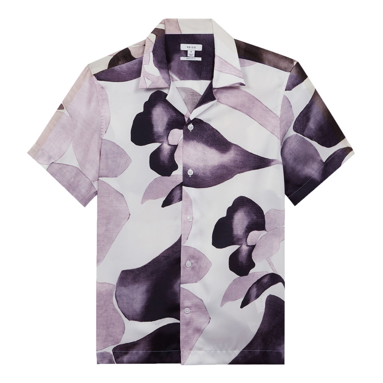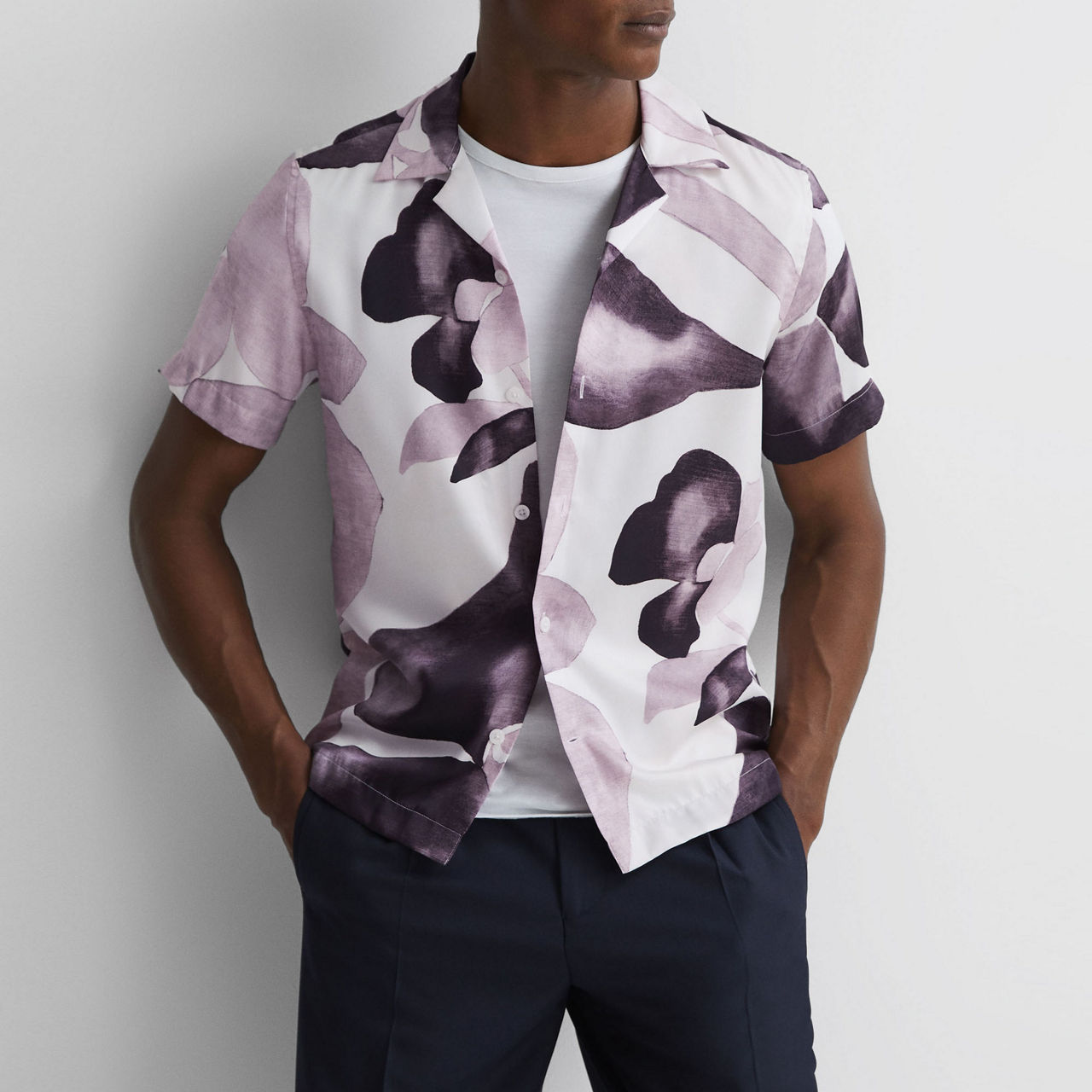 An abstract print lends a vibrant feel to the Howe shirt from Reiss, while its Cuban collar and button fastening ensures a smart finish. Perfect for cocktail evenings or lunch in the sun, this shirt looks great styled with shorts or chinos.
