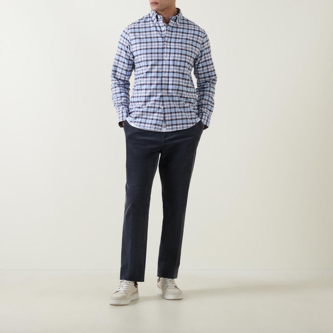 - Shield logo, button-down collar, button fastenings, chest pocket, long sleeves, check pattern