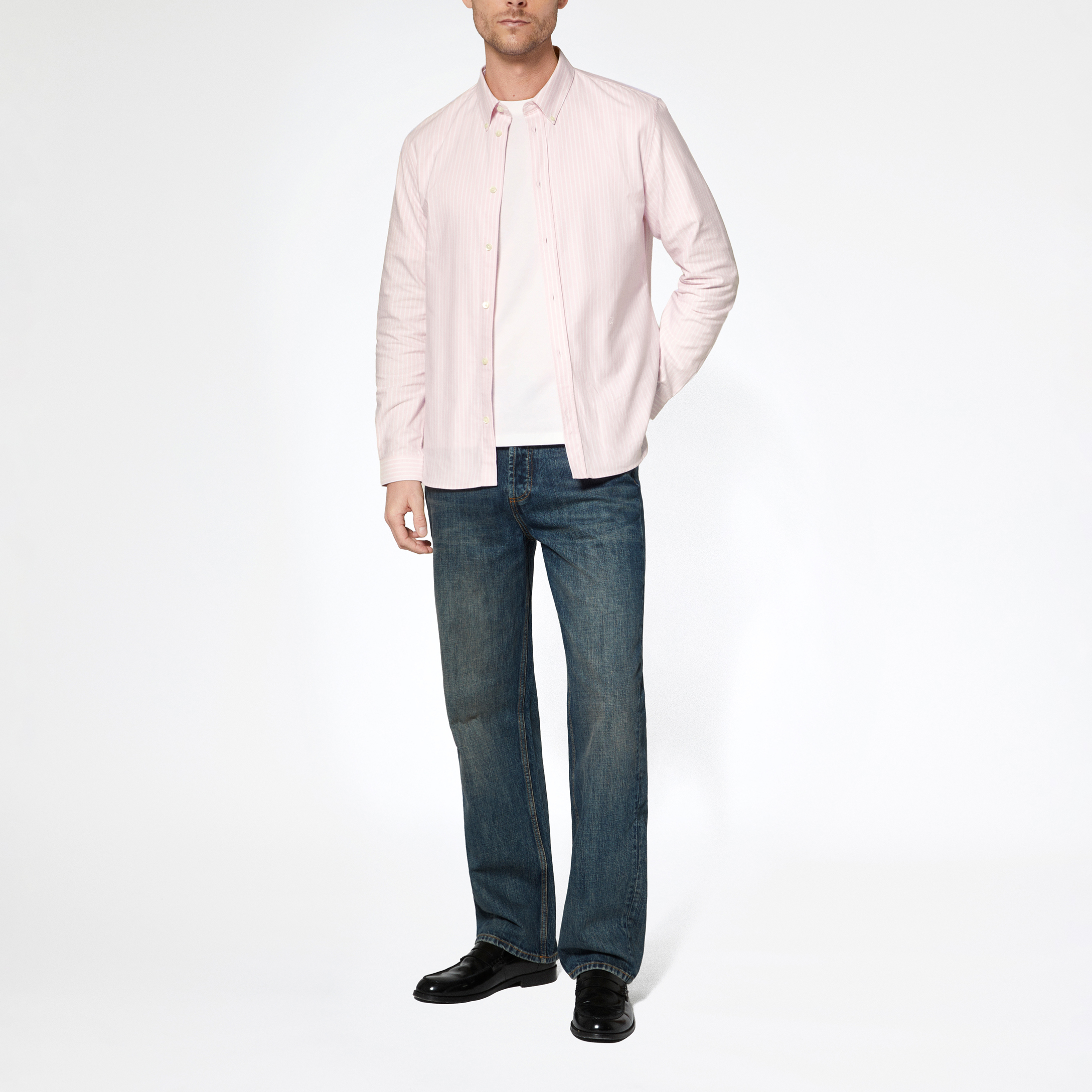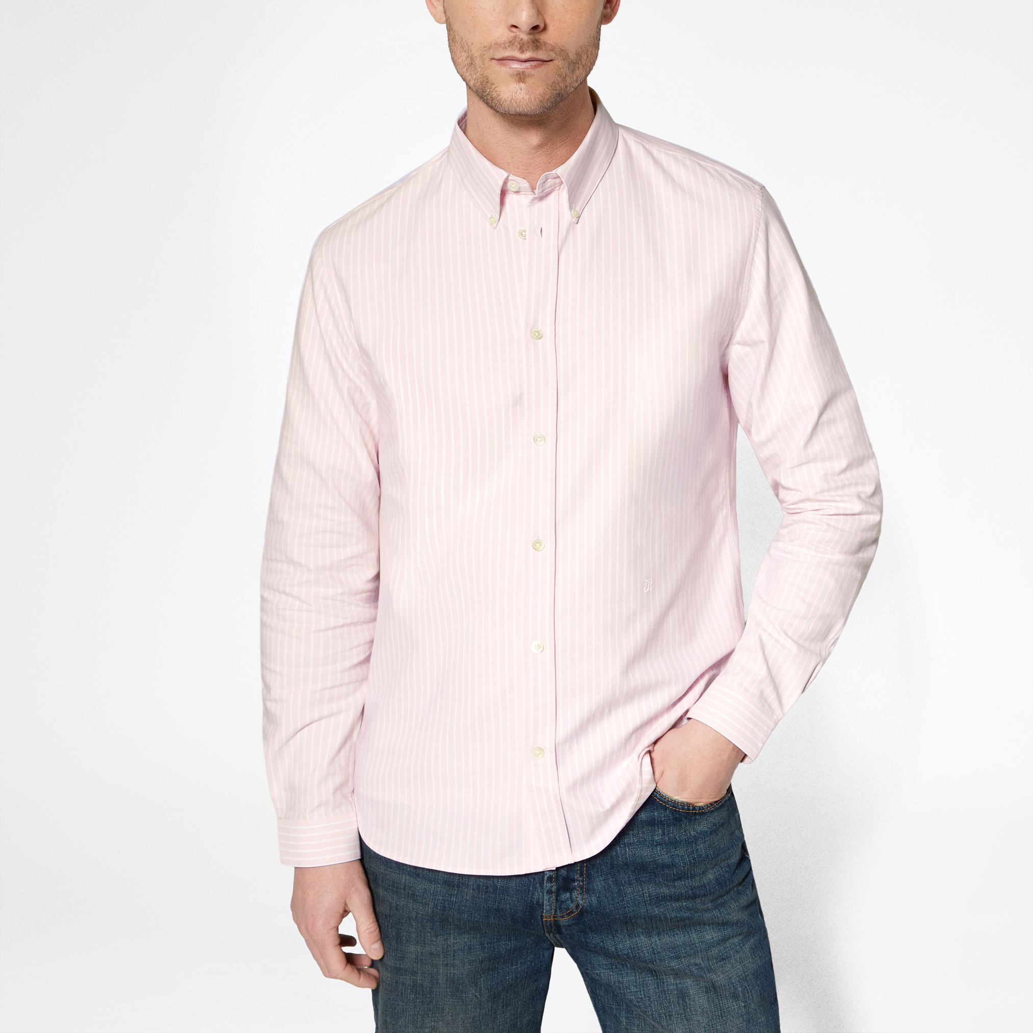 - Stripes, fitted cut, classic collar, long sleeves, tone-on-tone buttons, tone-on-tone logo embroidery