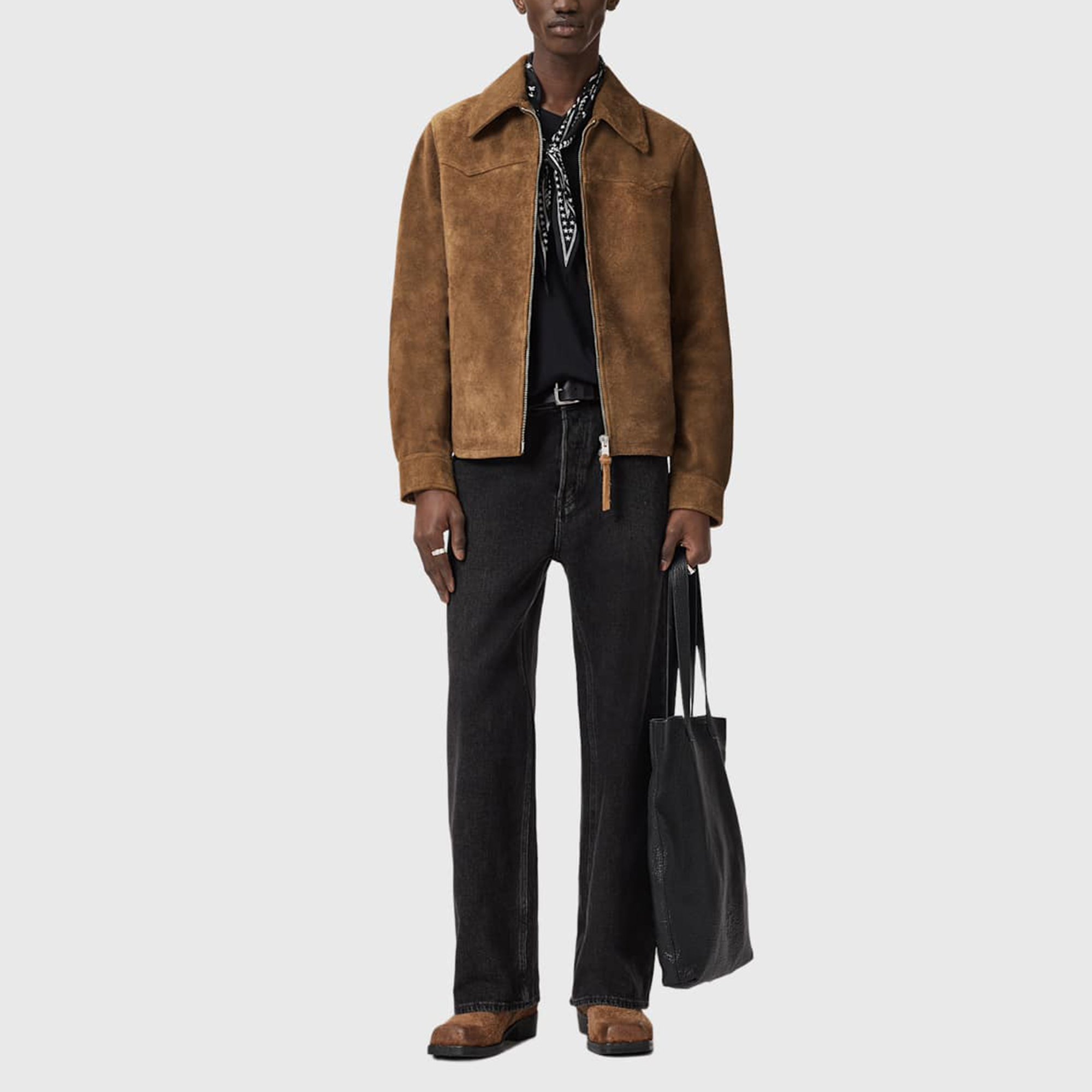Founded in London in 1994, AllSaints has been crafting iconic leather pieces for decades. As well as statement jackets, biker boots, and accessories, the brand’s everyday items offer a dose of attitude with distressed detailing, daring prints and the signature Ramskull logo.