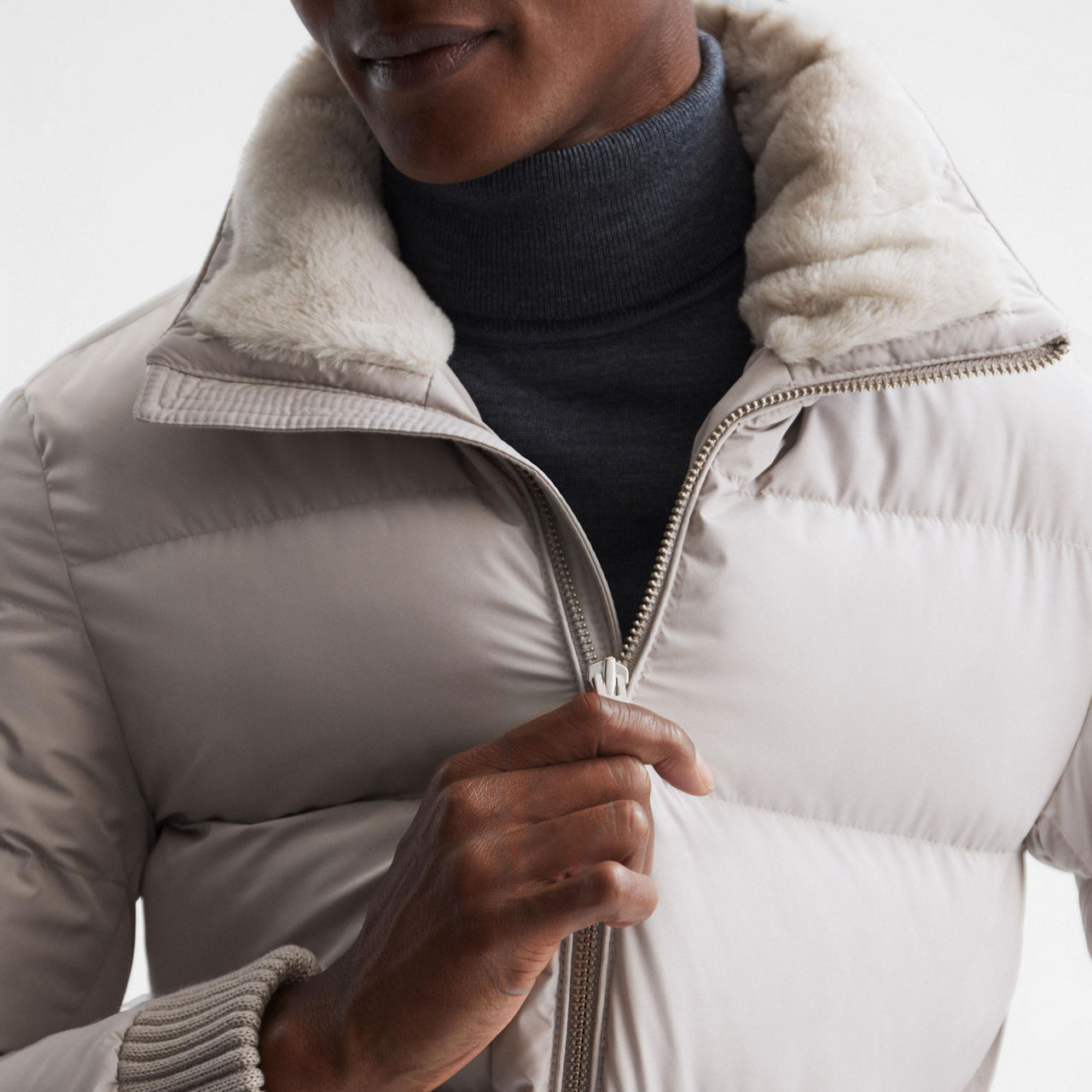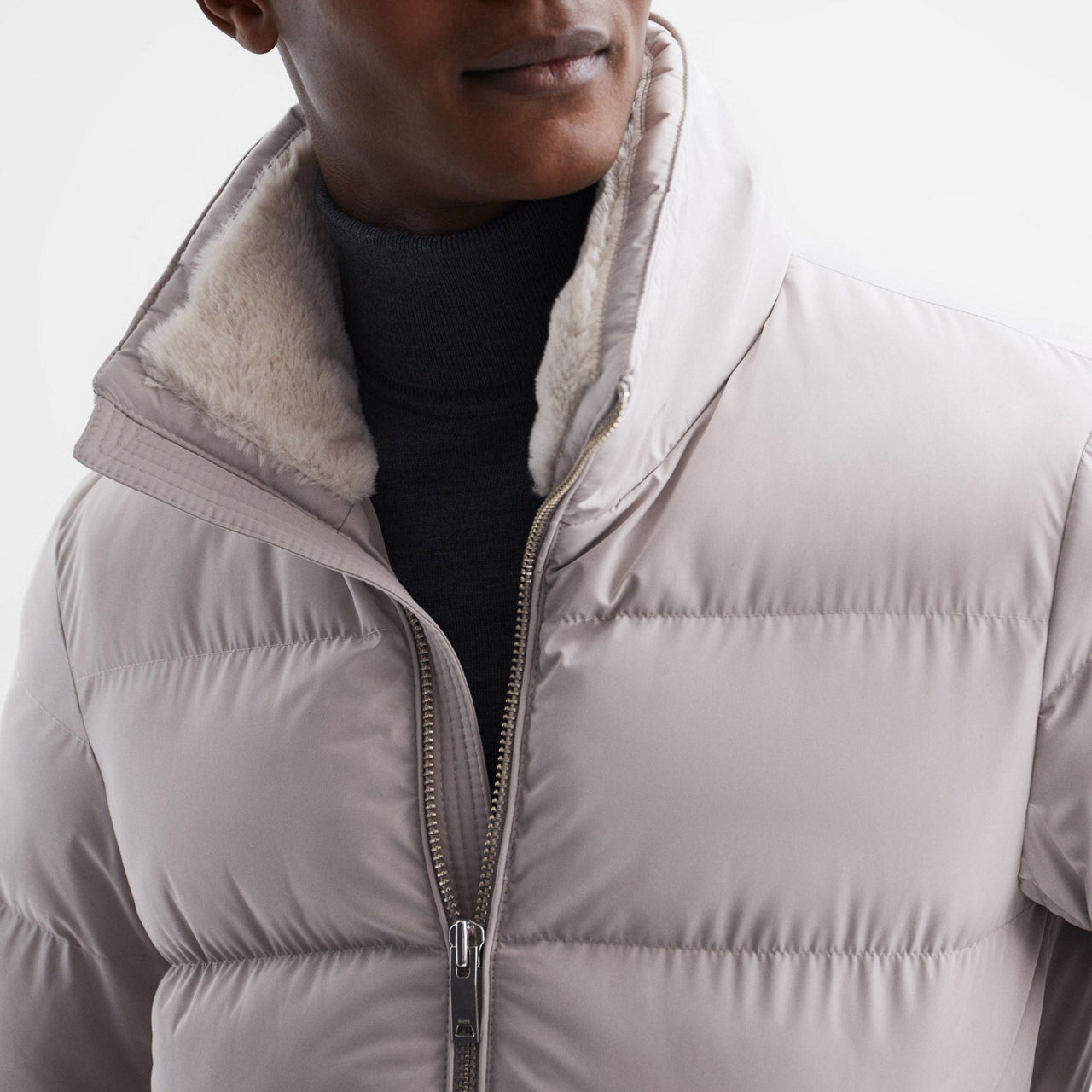 REISS Frost Faux Fur Trim Puffer Jacket