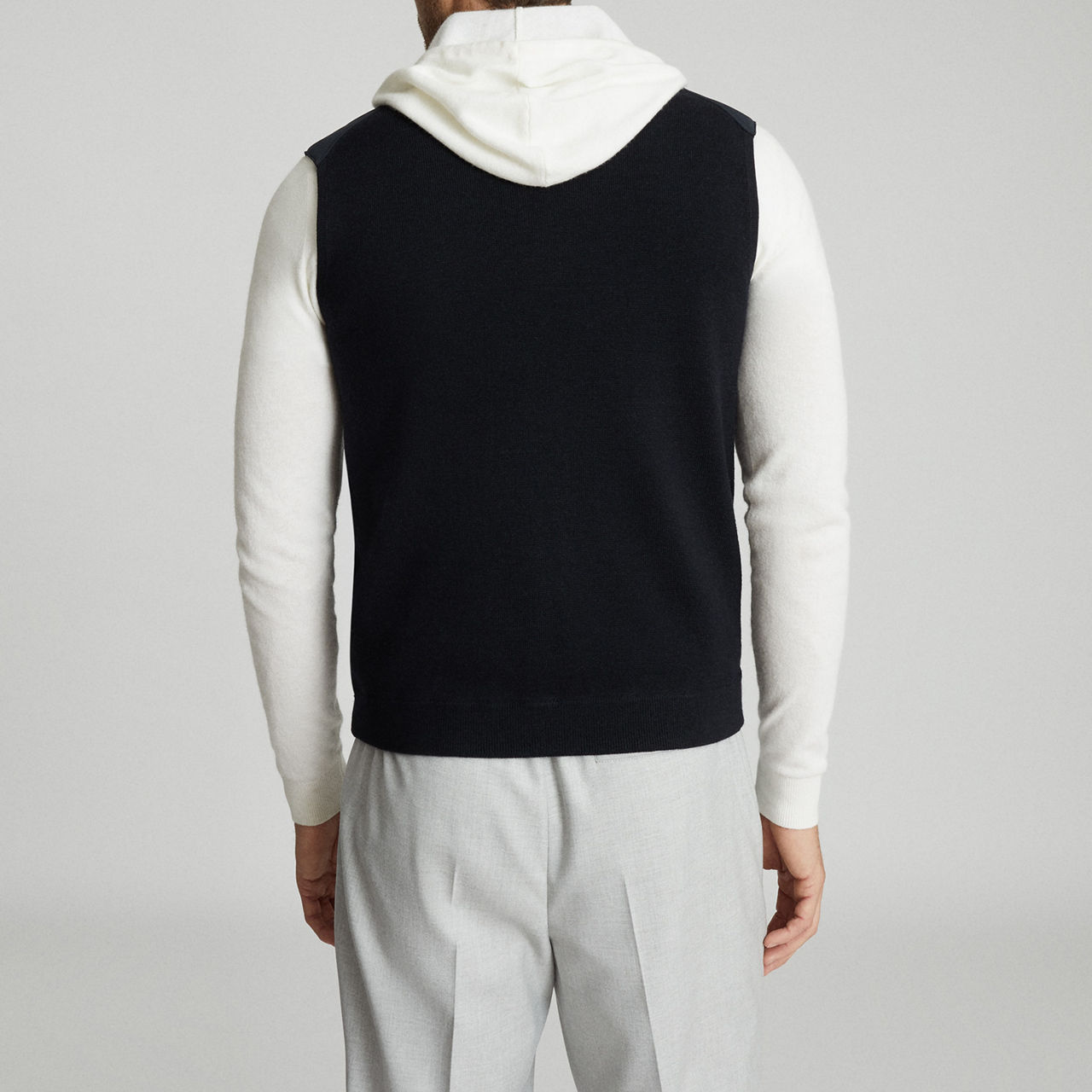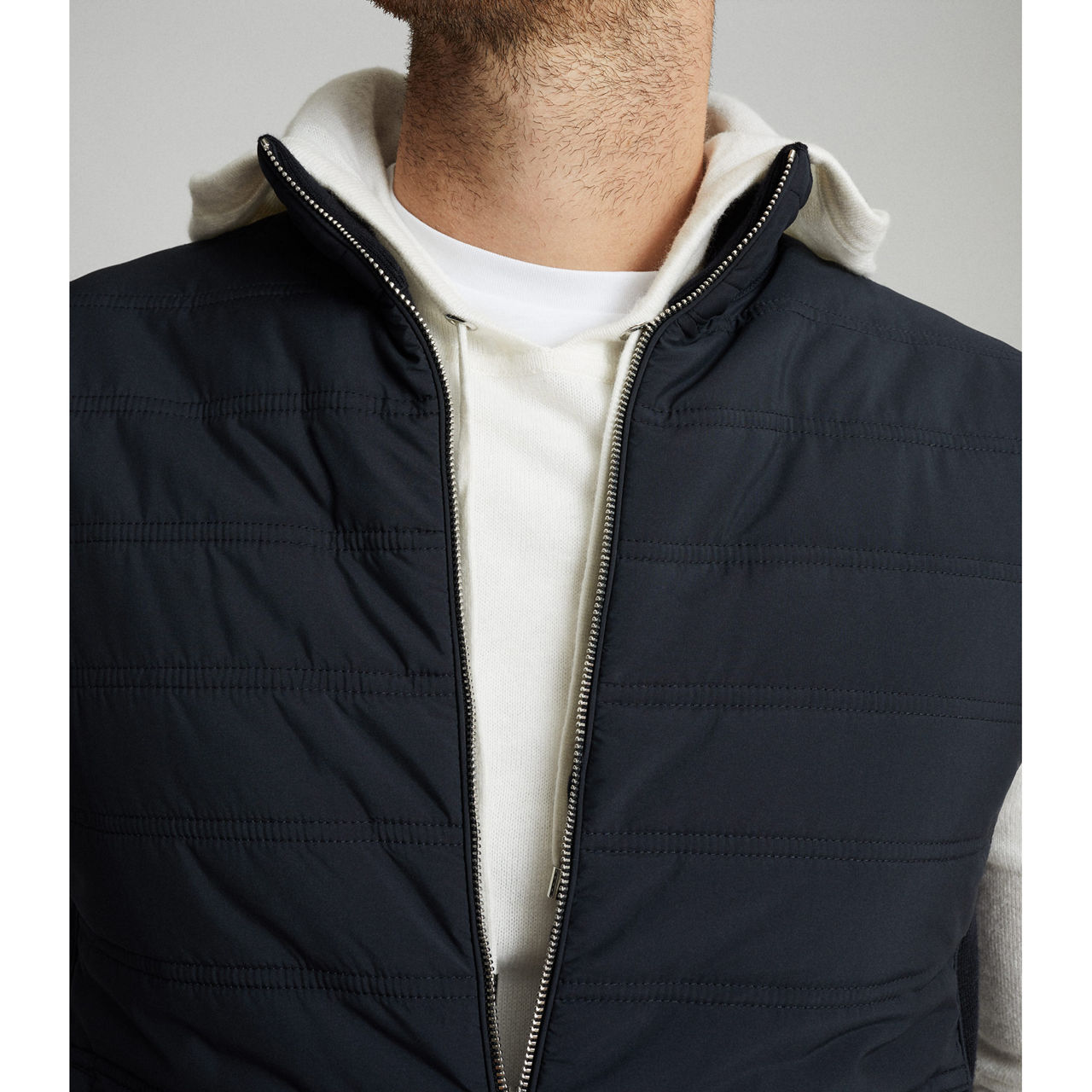 - Sleeveless, lightly padded, funnel neckline, centre-front zip fastening.