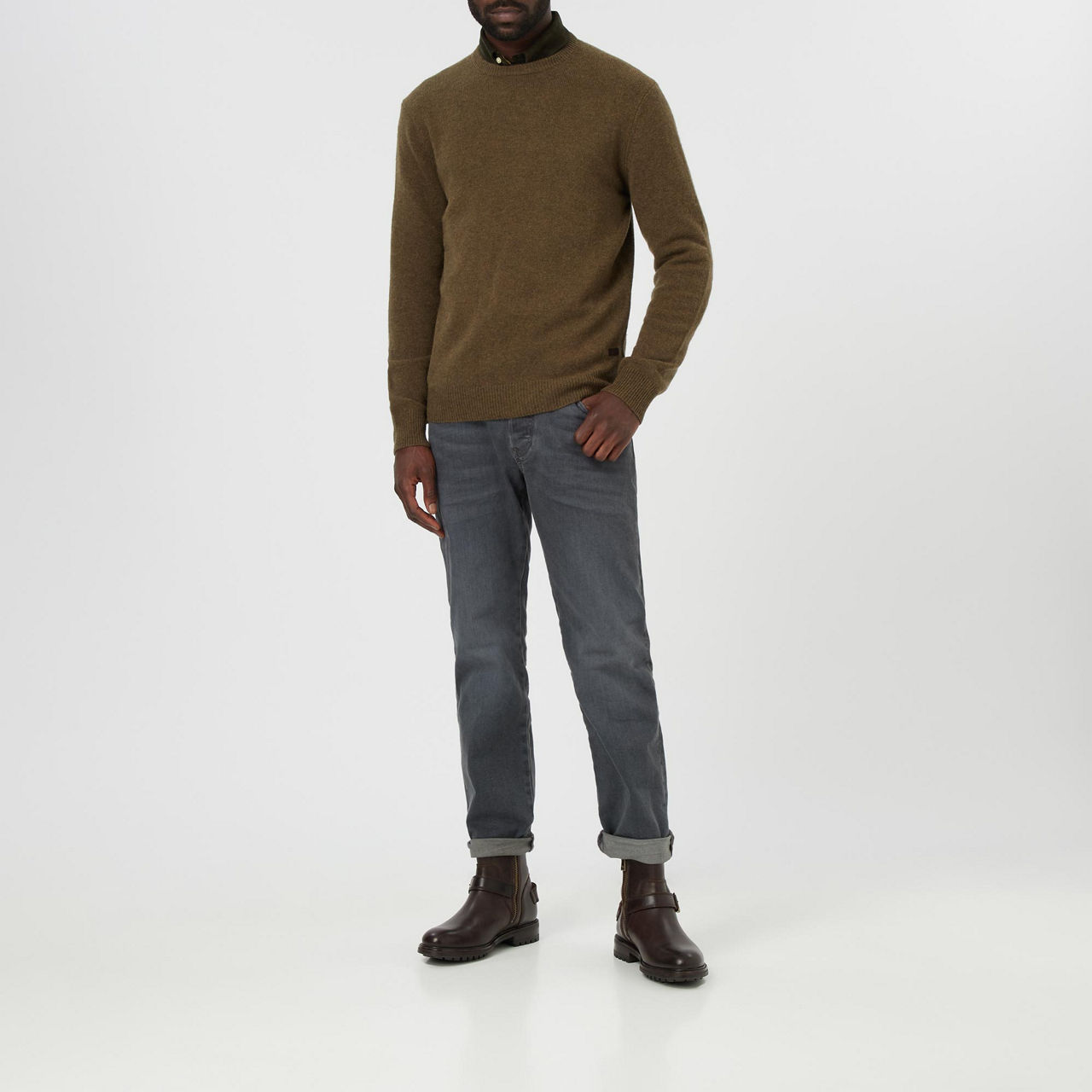 Barbour International highlights its classic English heritage style with the patched elbows on this sweater. Spun from warm lambswool, it's cut in a regular fit with comfortable ribbed trims and a logo patch above the hem.