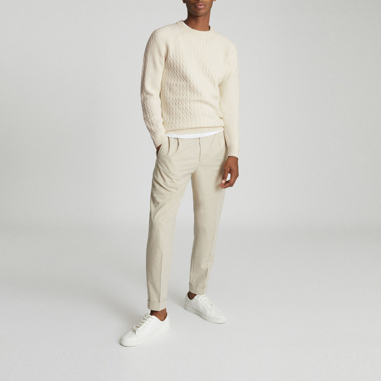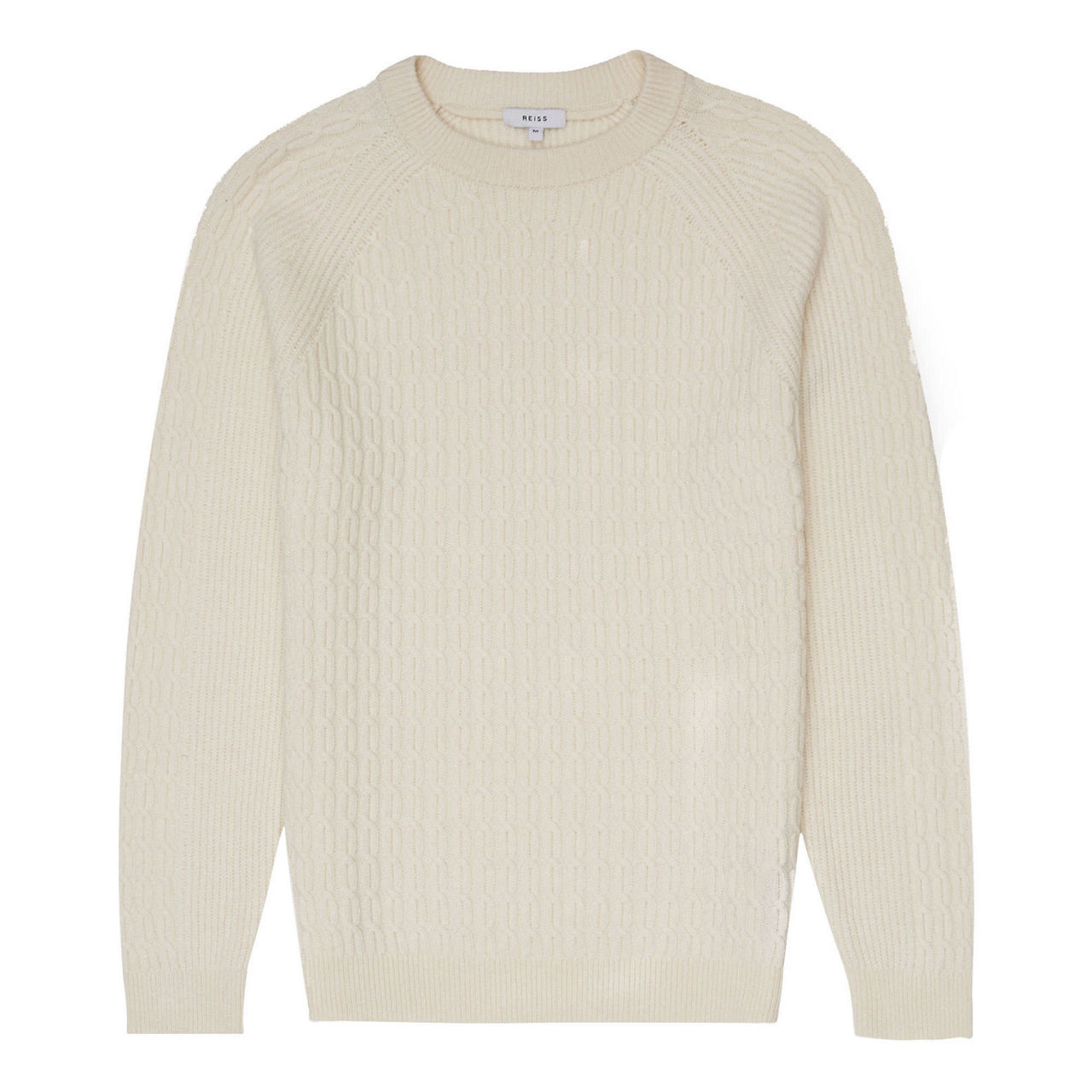 Cool and understated, the cable knit Ripper Sweater from Reiss is an assured choice for the modern man. Made from a luxurious blend with a touch of cashmere, it will keep you warm and cosy while it looks great with smart trousers or denim.