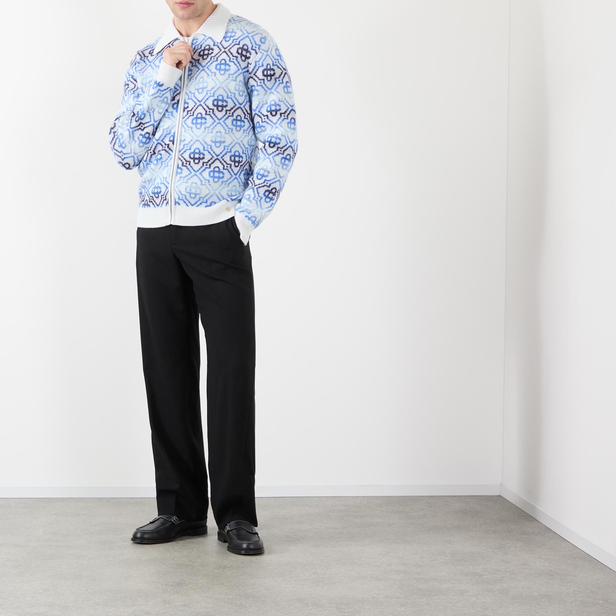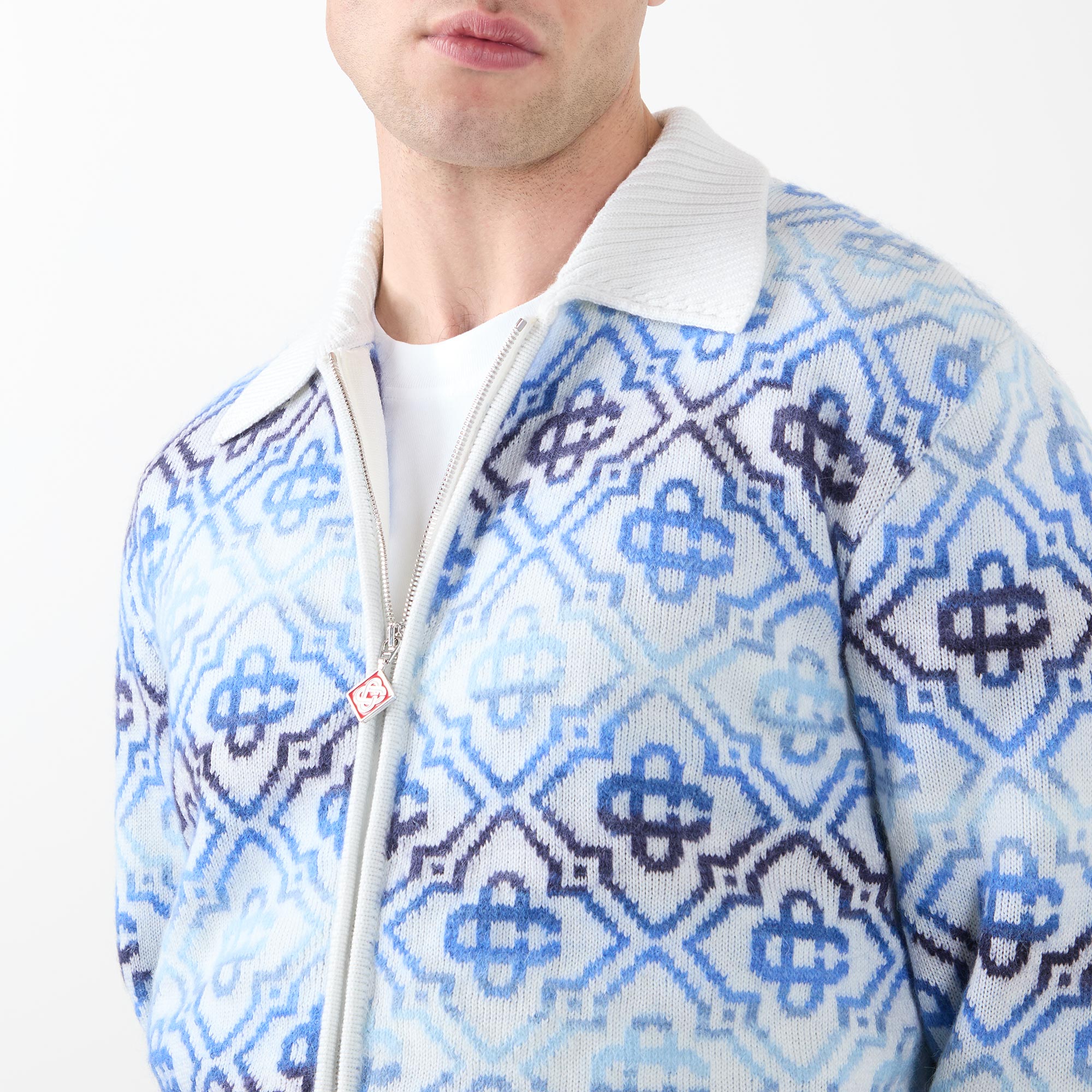 CASABLANCA Space Dye Monogram Logo Zip Cardigan