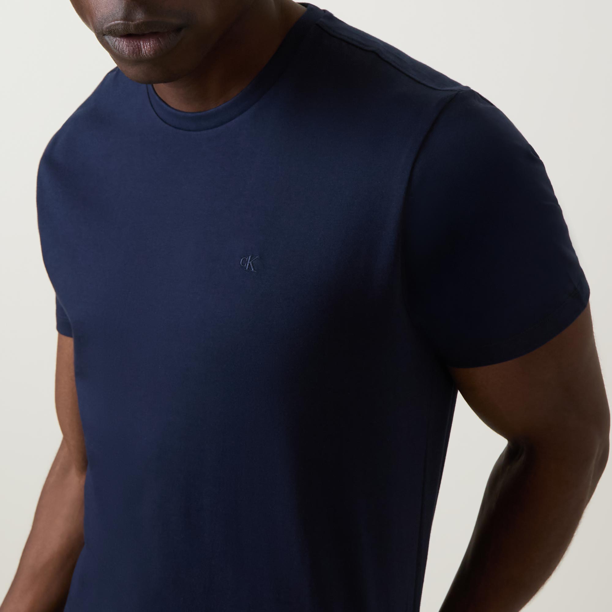 • Crew neck, short sleeves, straight hem, tonal monogram logo embroidery on the chest, tonal stitching, smooth finish