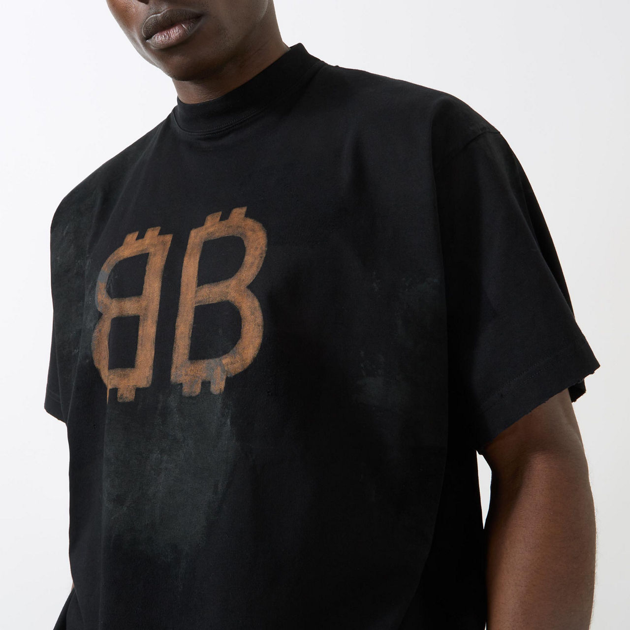 - Round neckline, wide-cut sleeves, straight hemline, faded details, crypto logo print at front and back