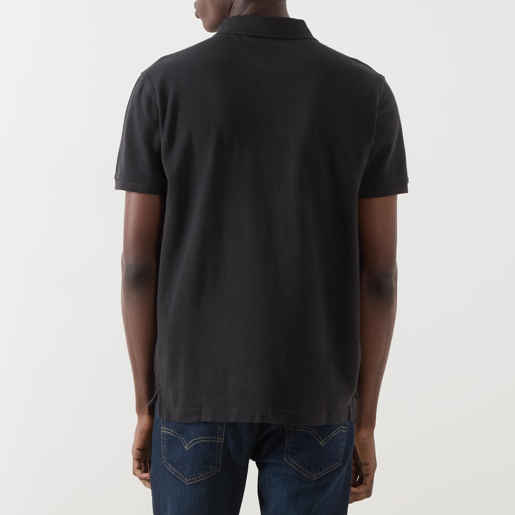 - Flat knit collar and cuffs, short sleeves, button fastening, straight hemline, split side seams, housemark logo detail at chest