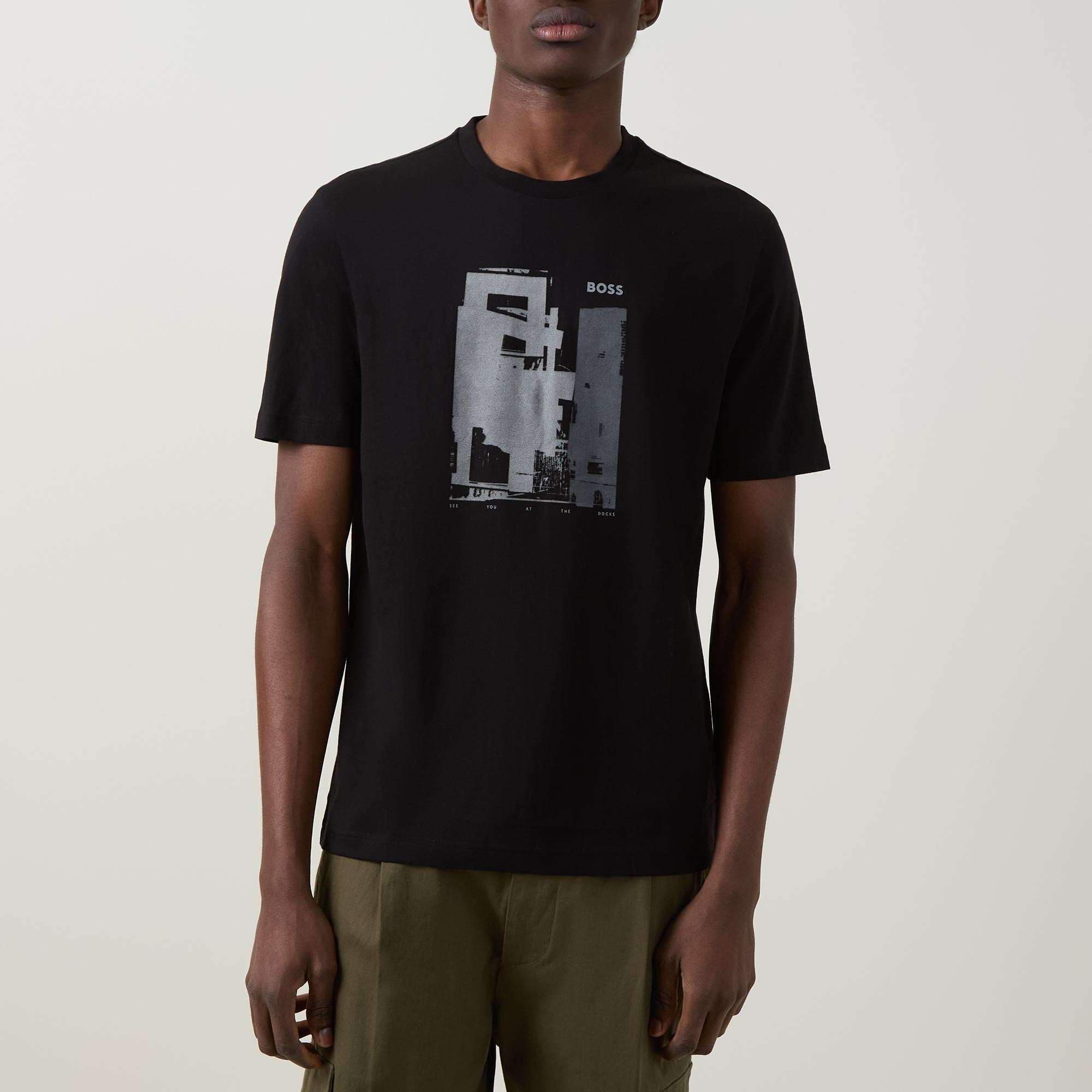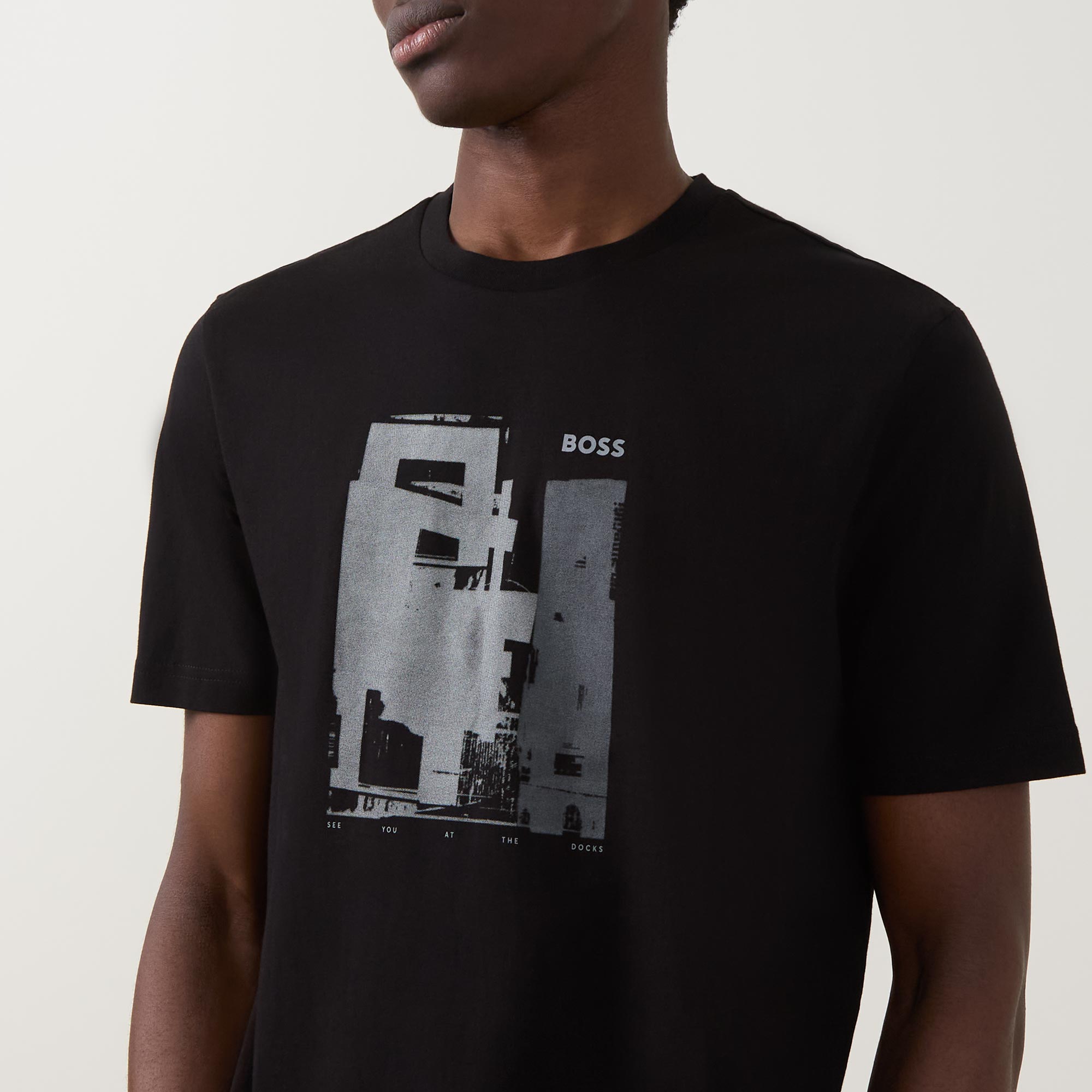 - Round neckline, short sleeves, straight hemline, imprint graphic and logo details
