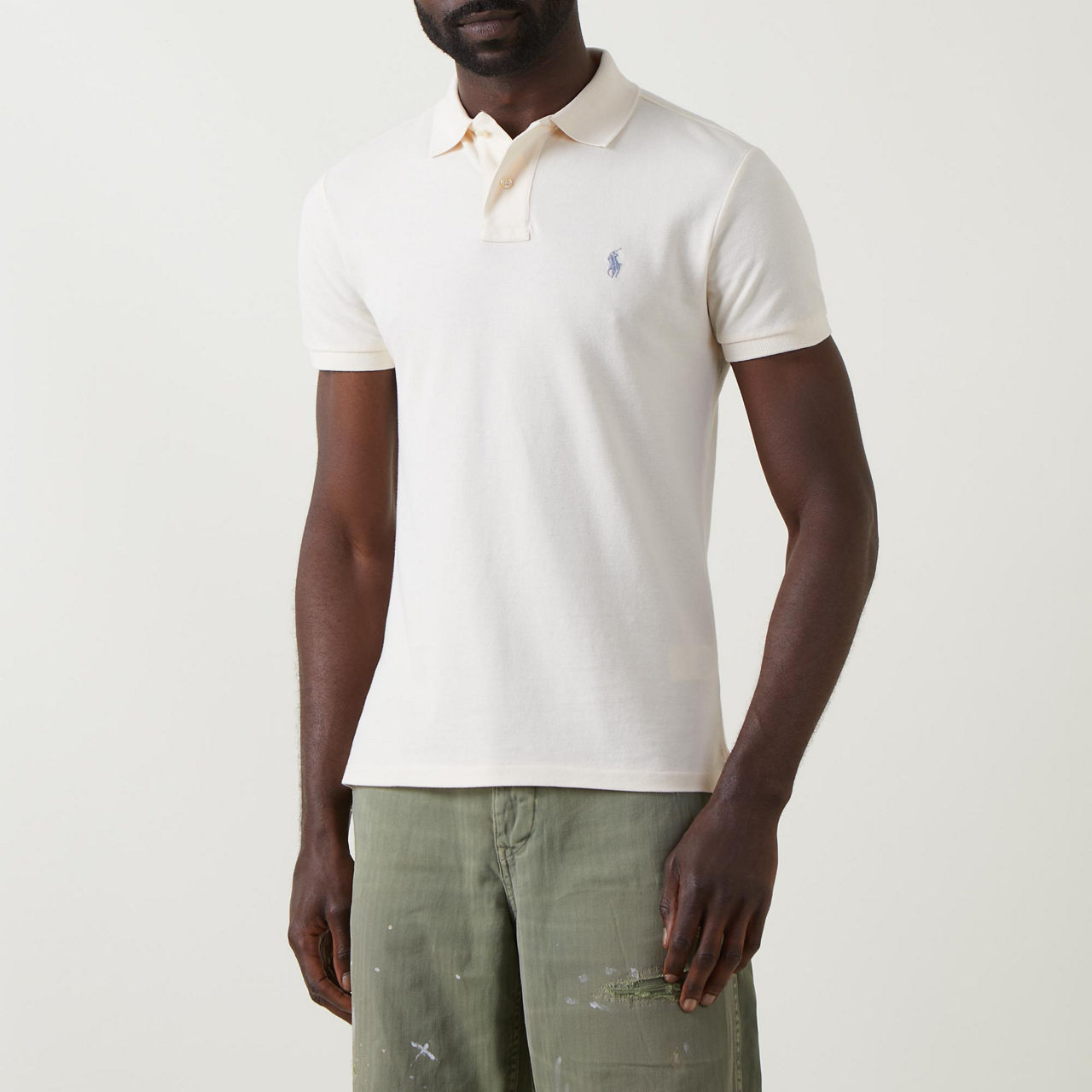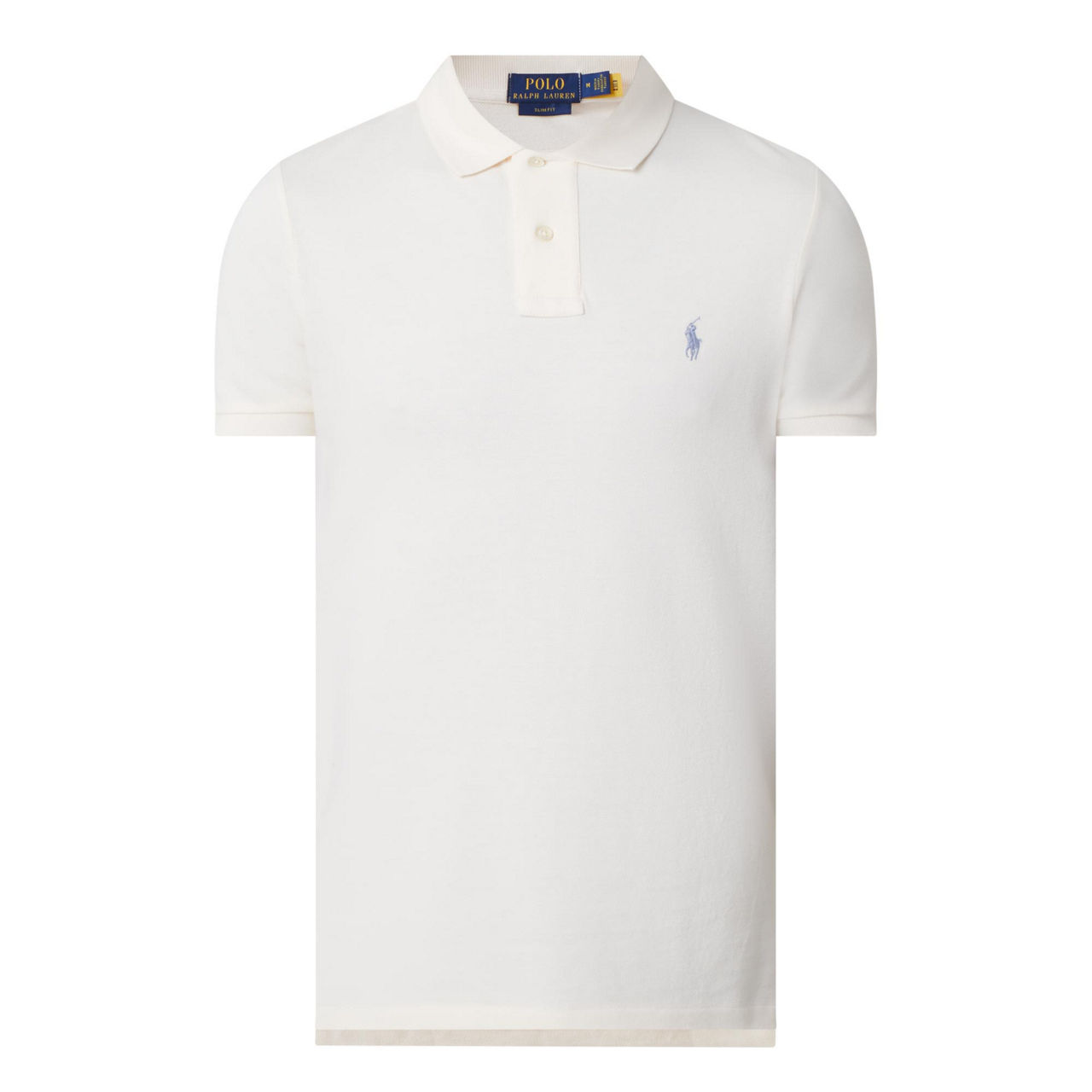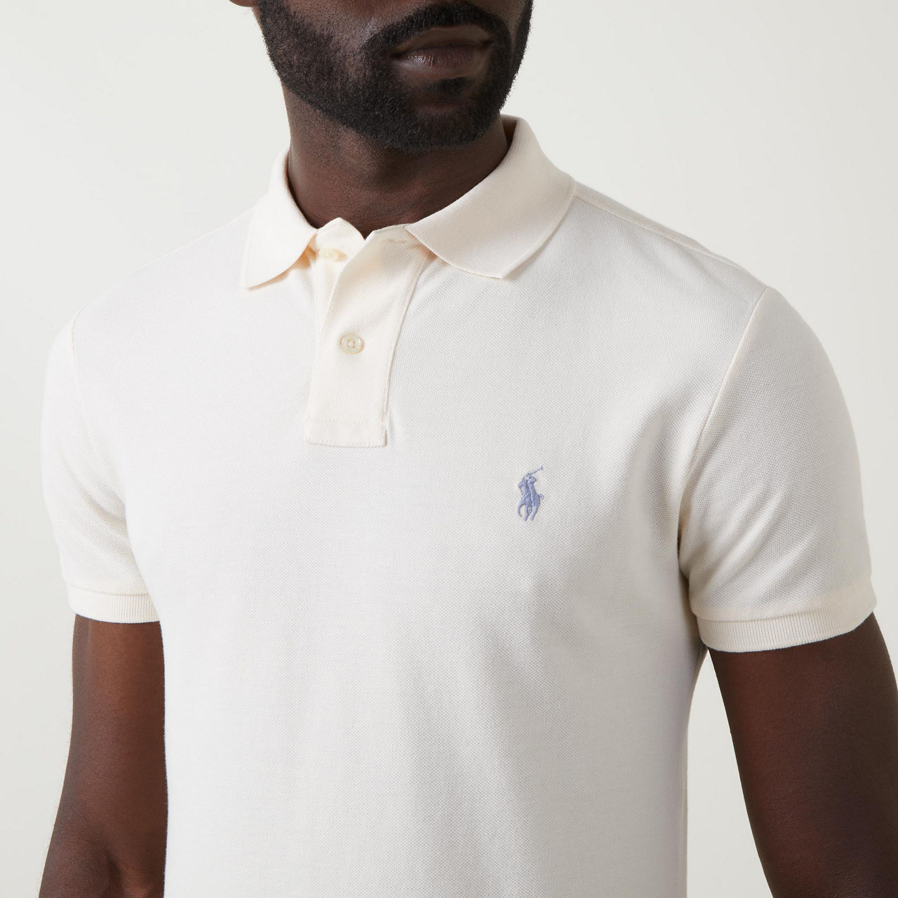 - Mesh design, short sleeves, polo player embroidery, polo collar, button fastenings