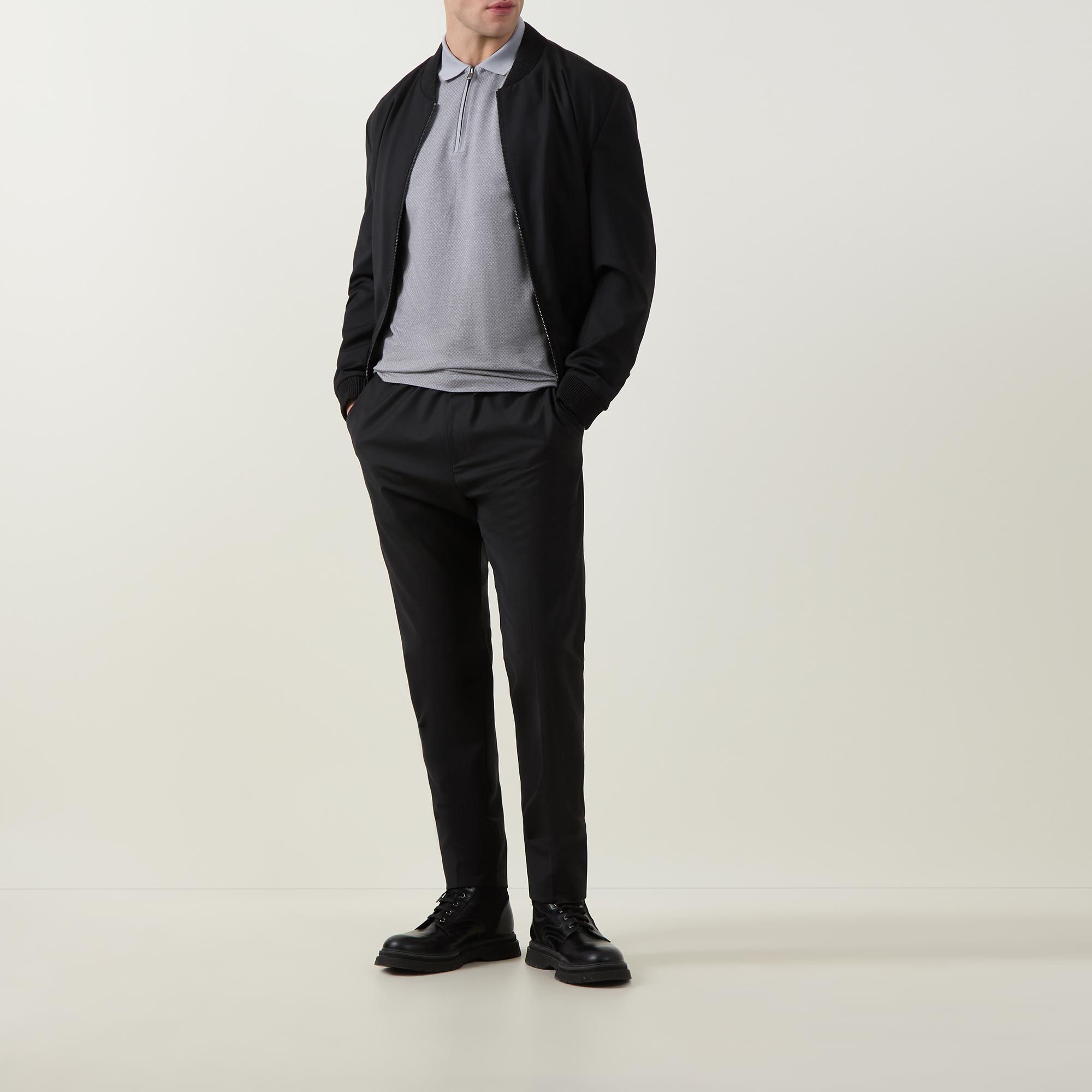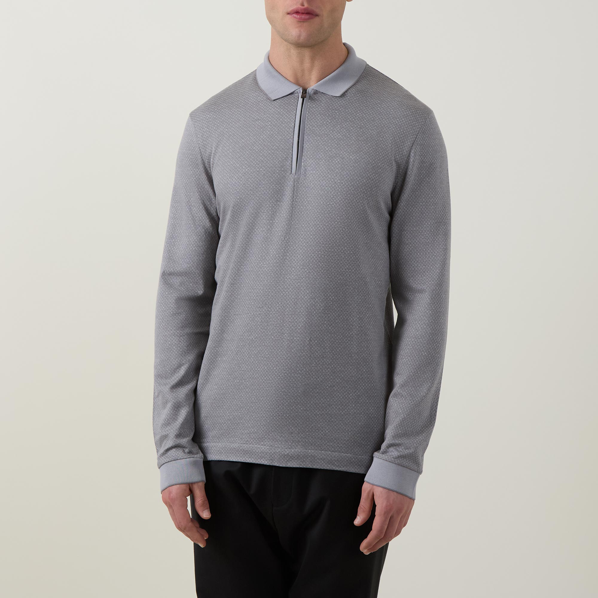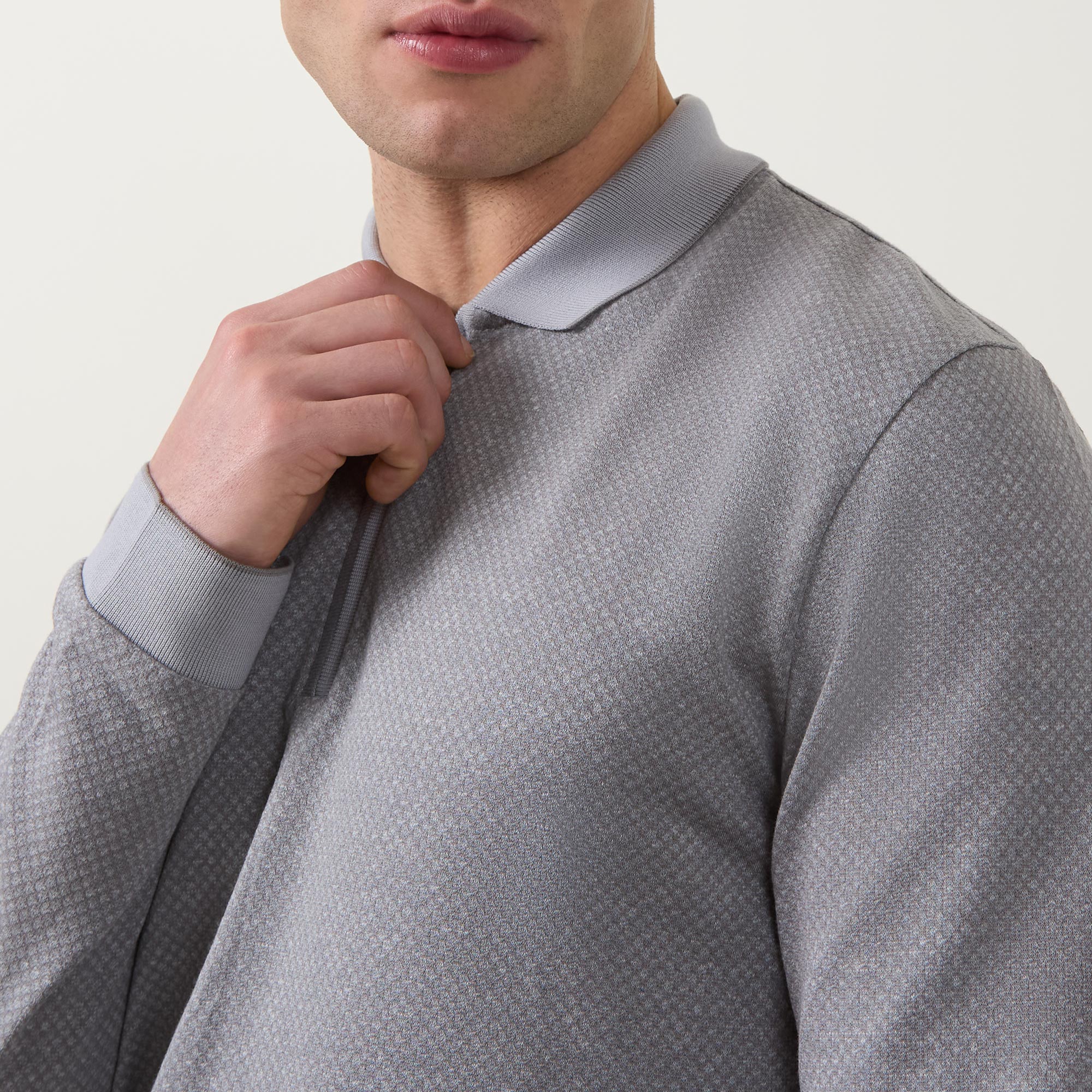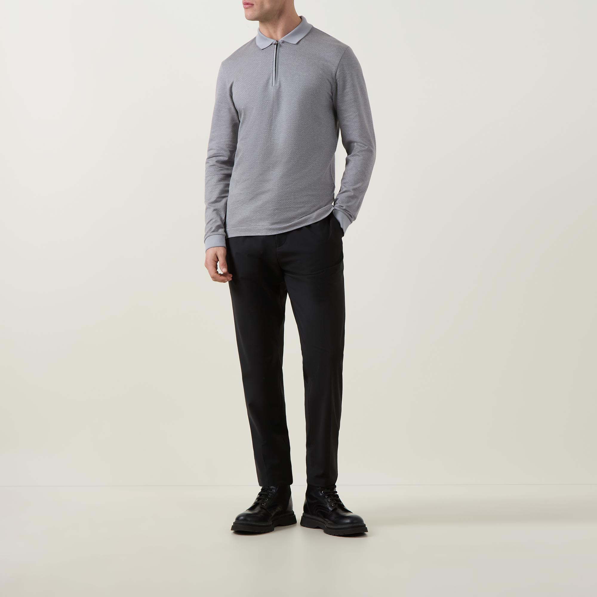 - Polo collar, half zip-fastening placket, long sleeves, straight hemline, side split detailing, tonal stitching, textured finish