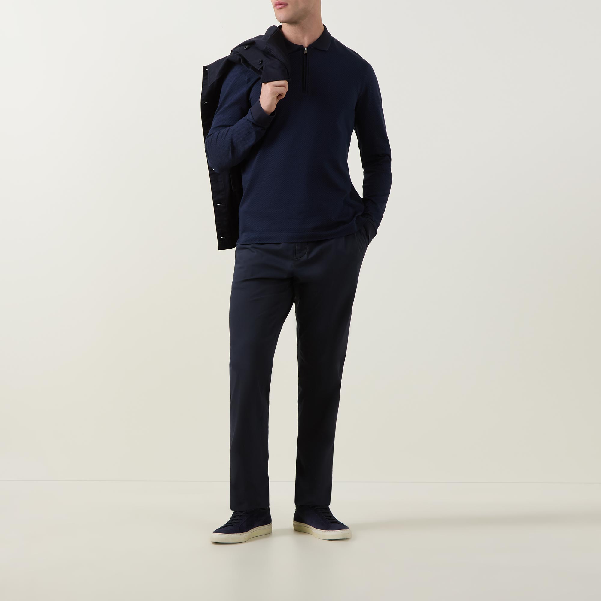 - Polo collar, long sleeves, half-zip fastening, straight hemline
