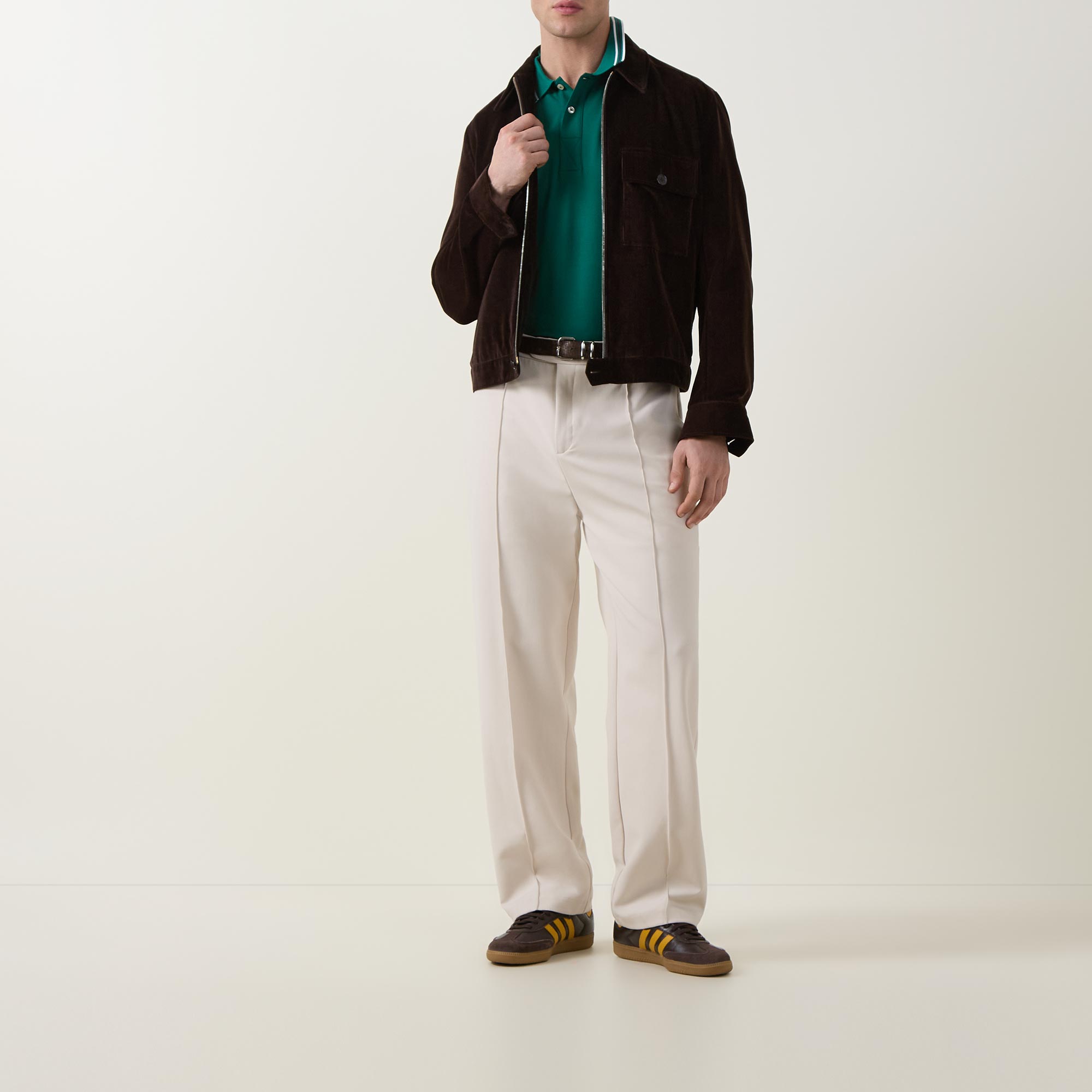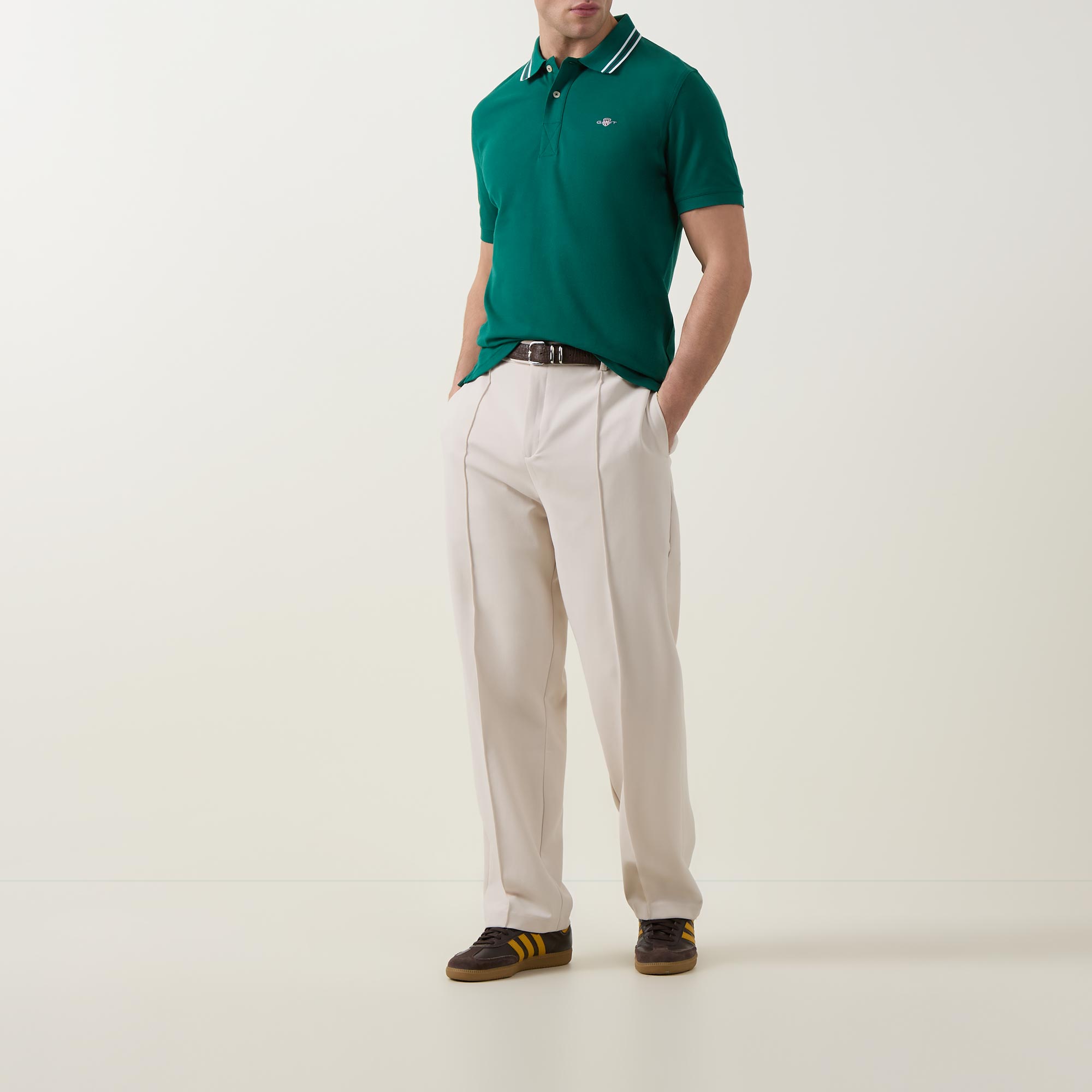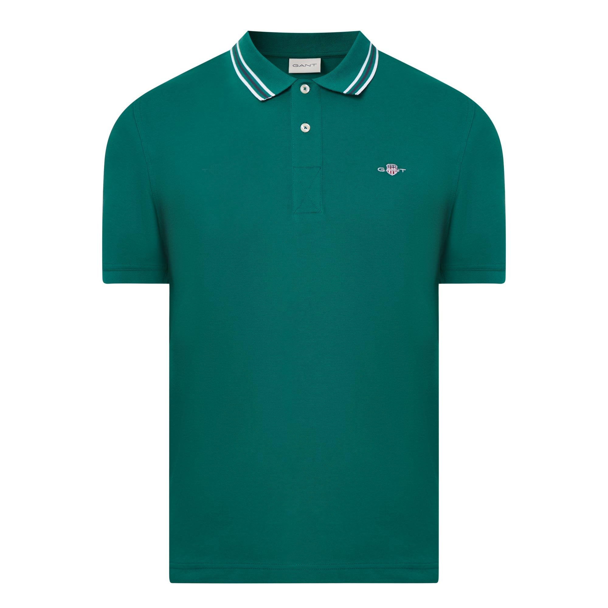 - Polo collar, short sleeves, shield logo, straight hemline, tipped trims
