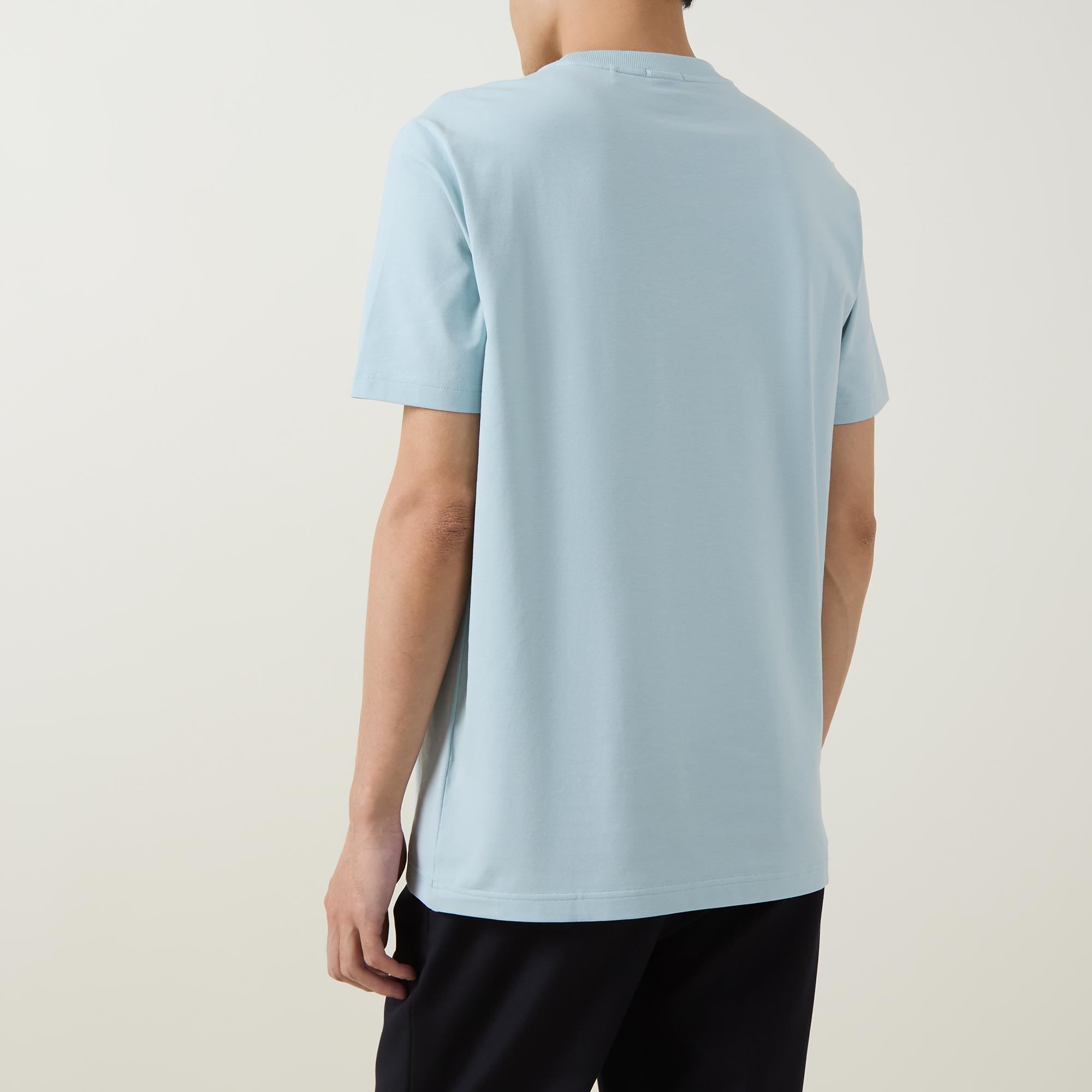 - Logo detail, round neck, short sleeves, straight hemline