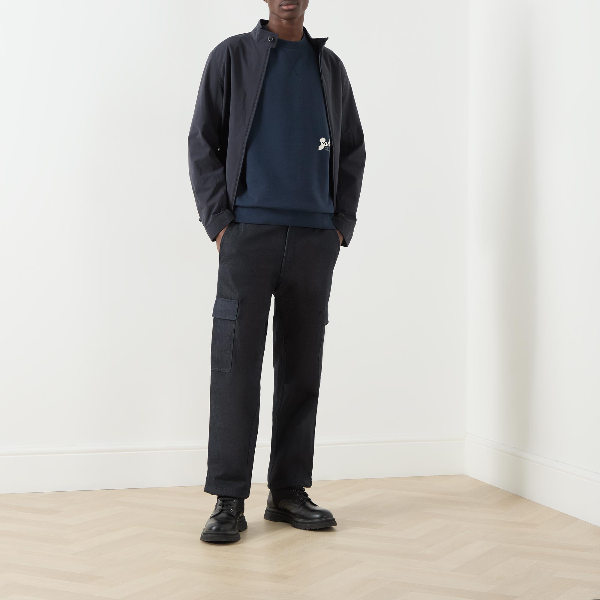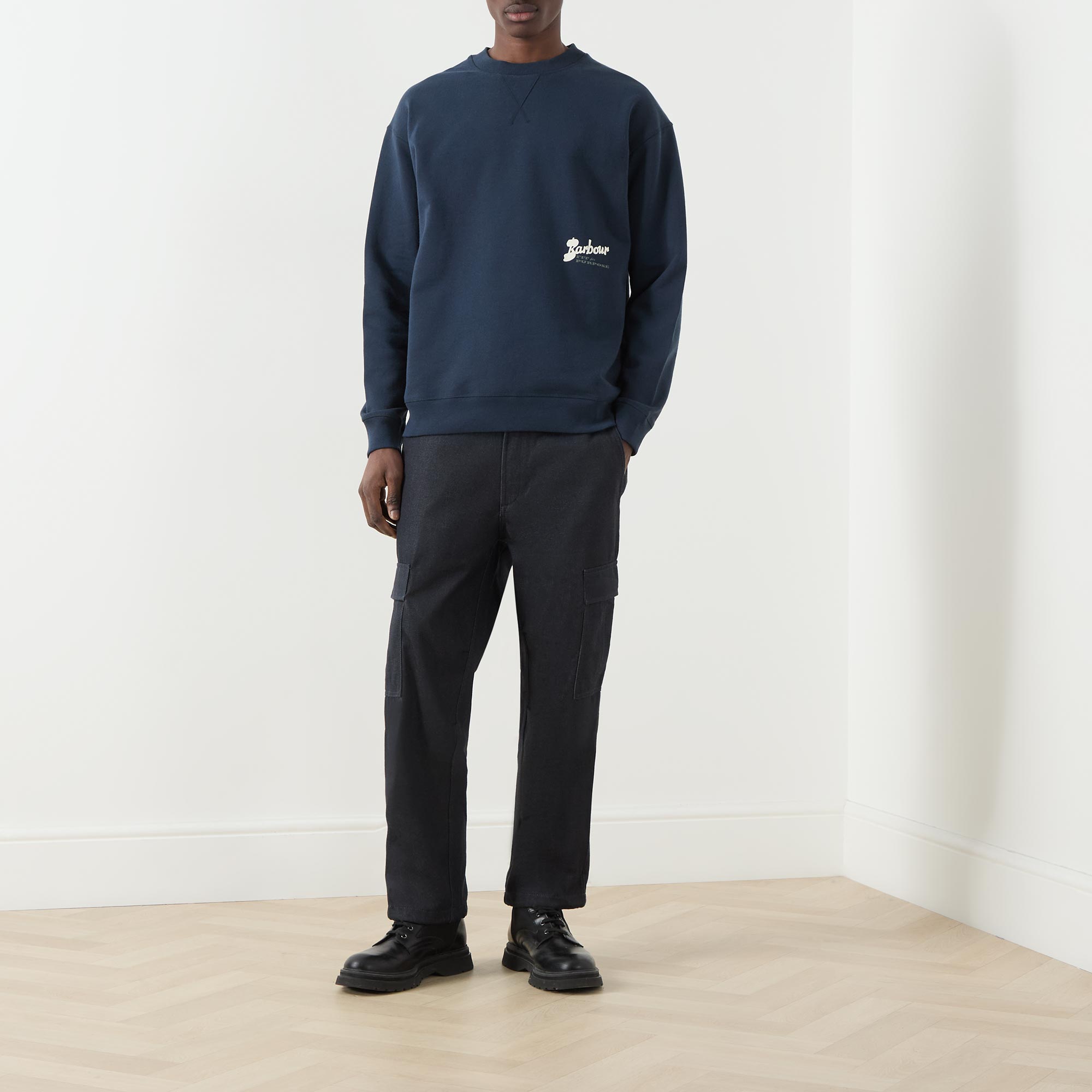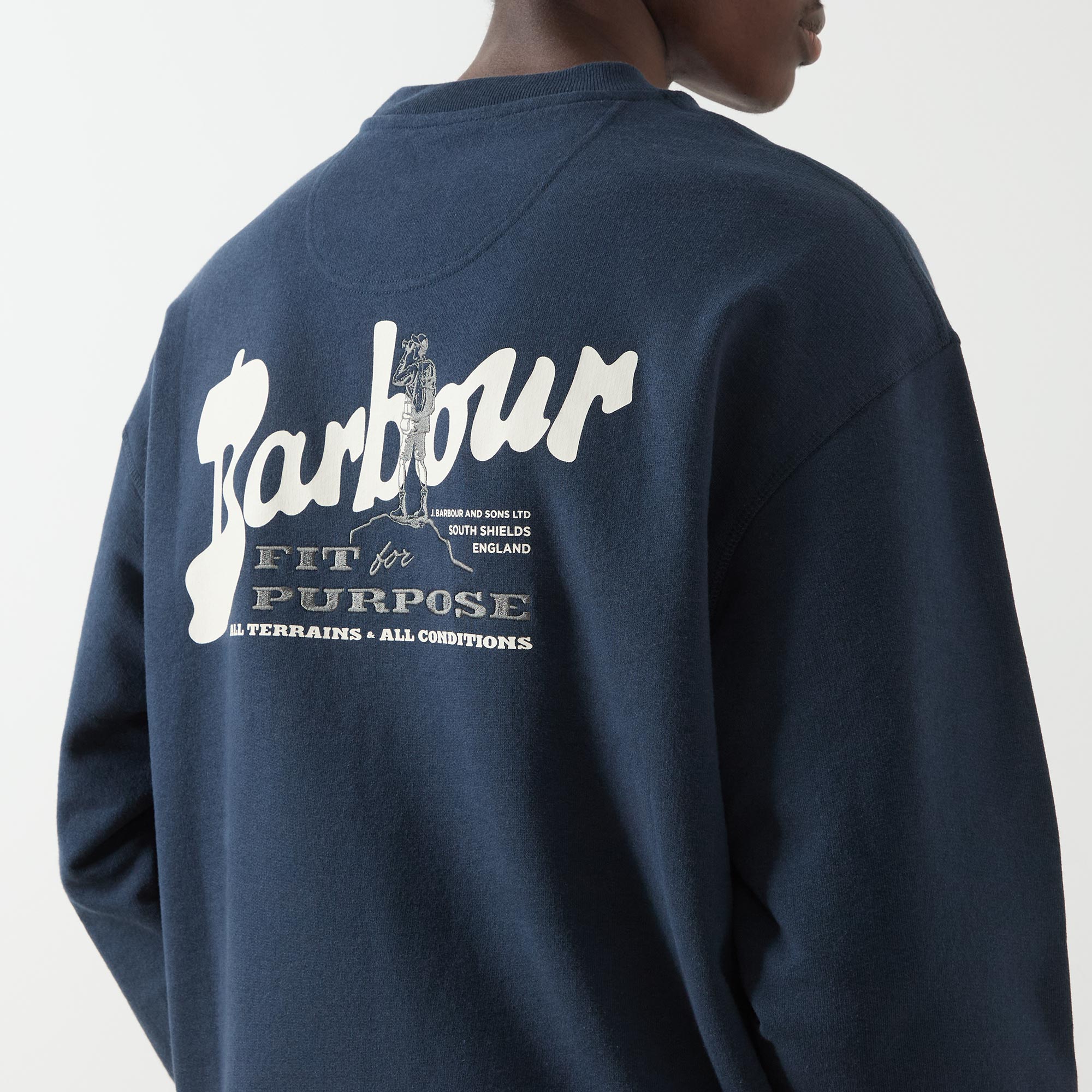 - Round neckline, long sleeves, dropped shoulders, pickstitch details, logo graphic print at chest and back
