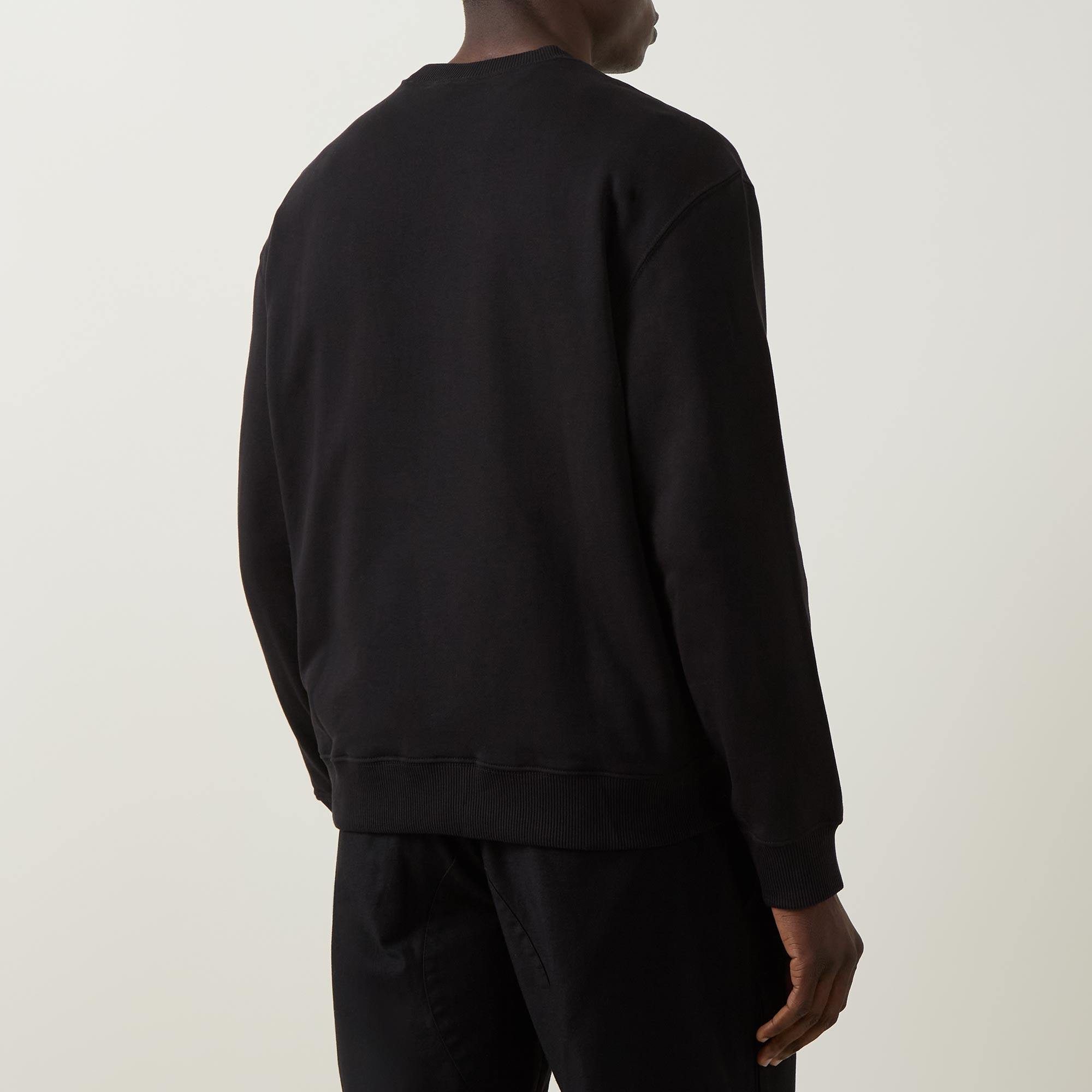 • Crew neck, dropped shoulders, long sleeves, straight hem, ribbed trims, contrast monogram logo embroidery on the chest