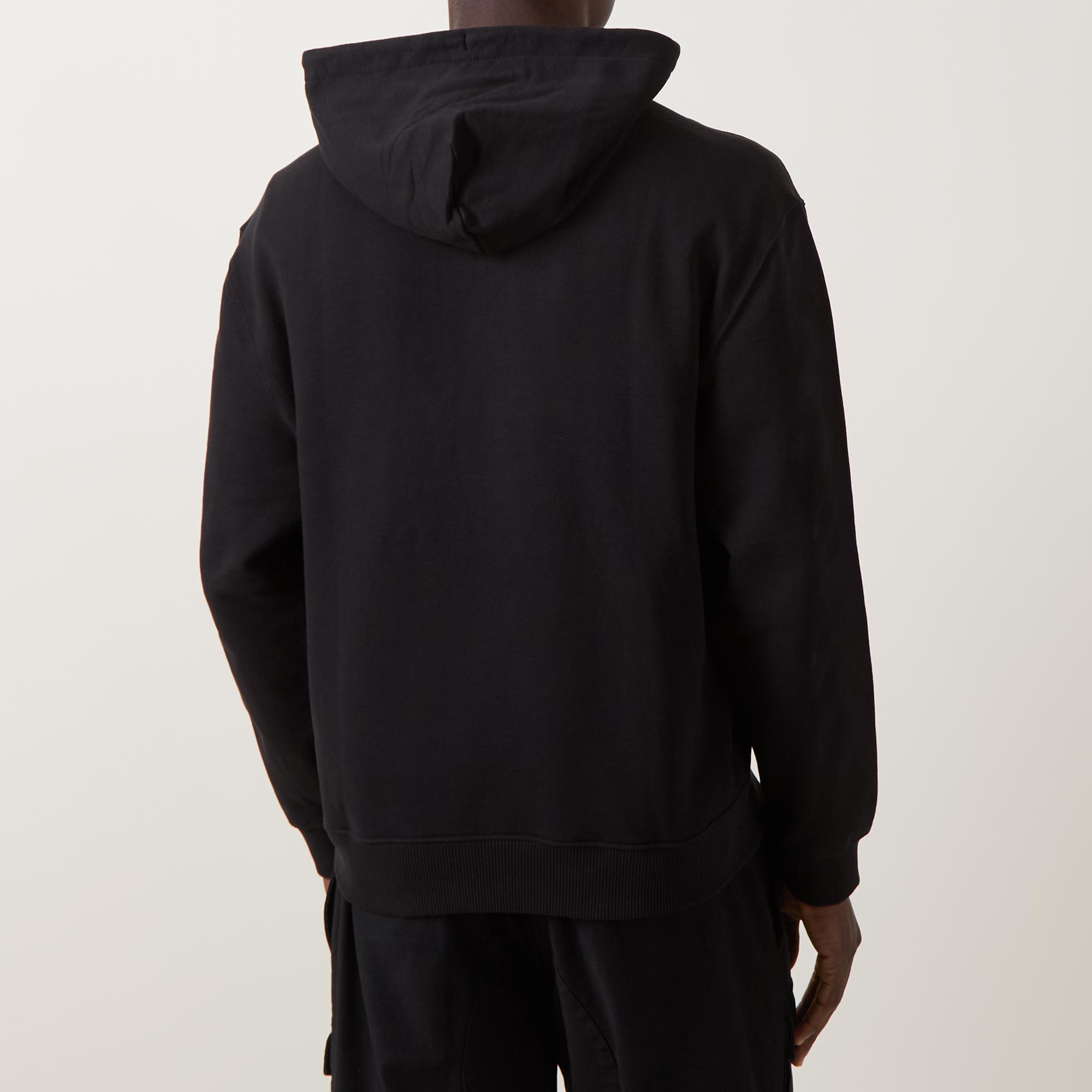 - Hood with drawstring adjustable fit, long sleeves, dropped shoulders, ribbed trims, kangaroo pocket, embroidered monogram logo detail