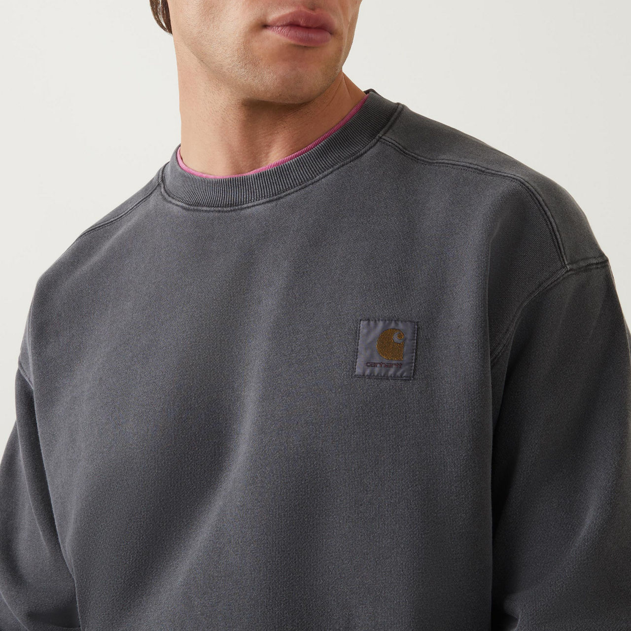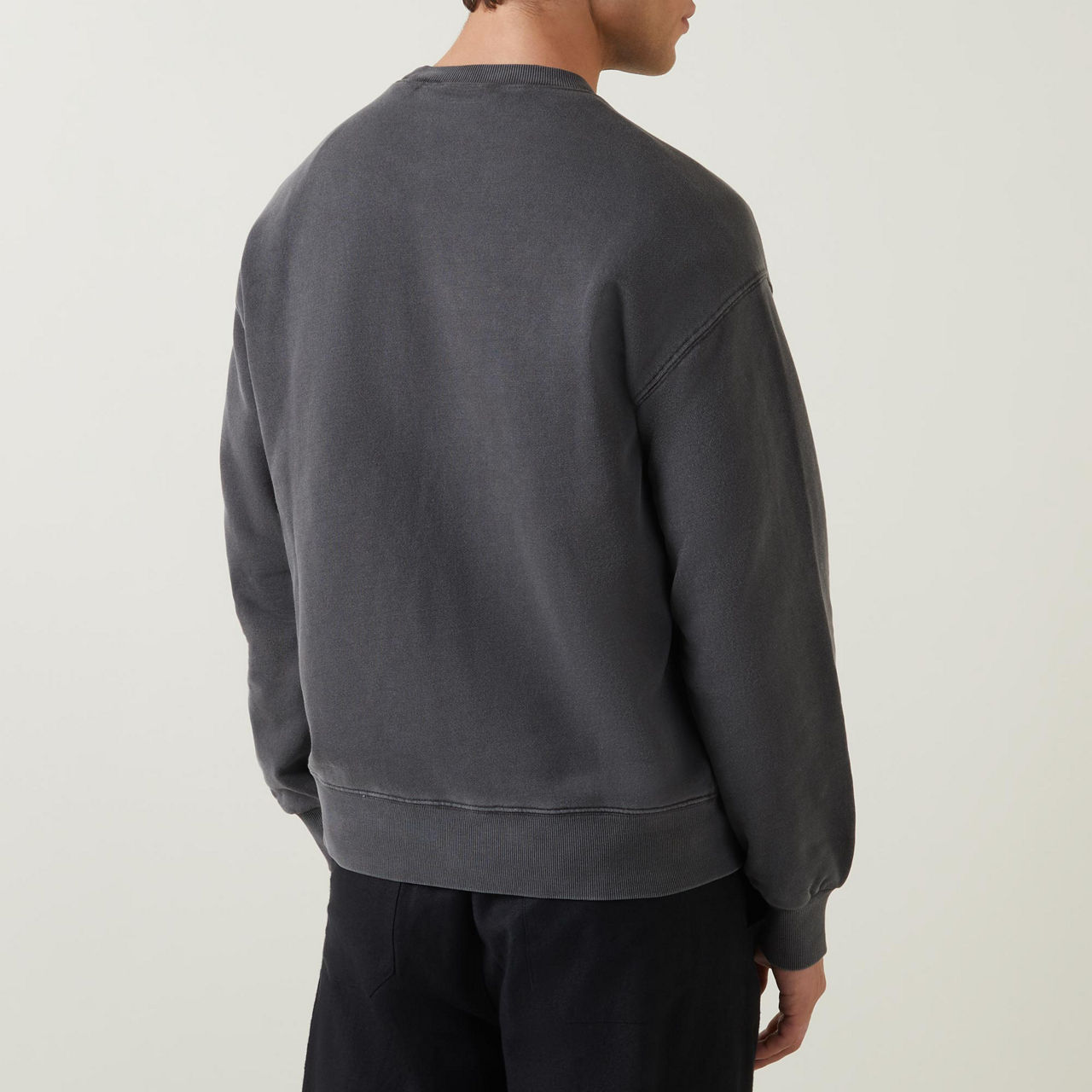 - Washed effect, crew neck, long sleeves, ribbed trims, logo detail, straight hemline
