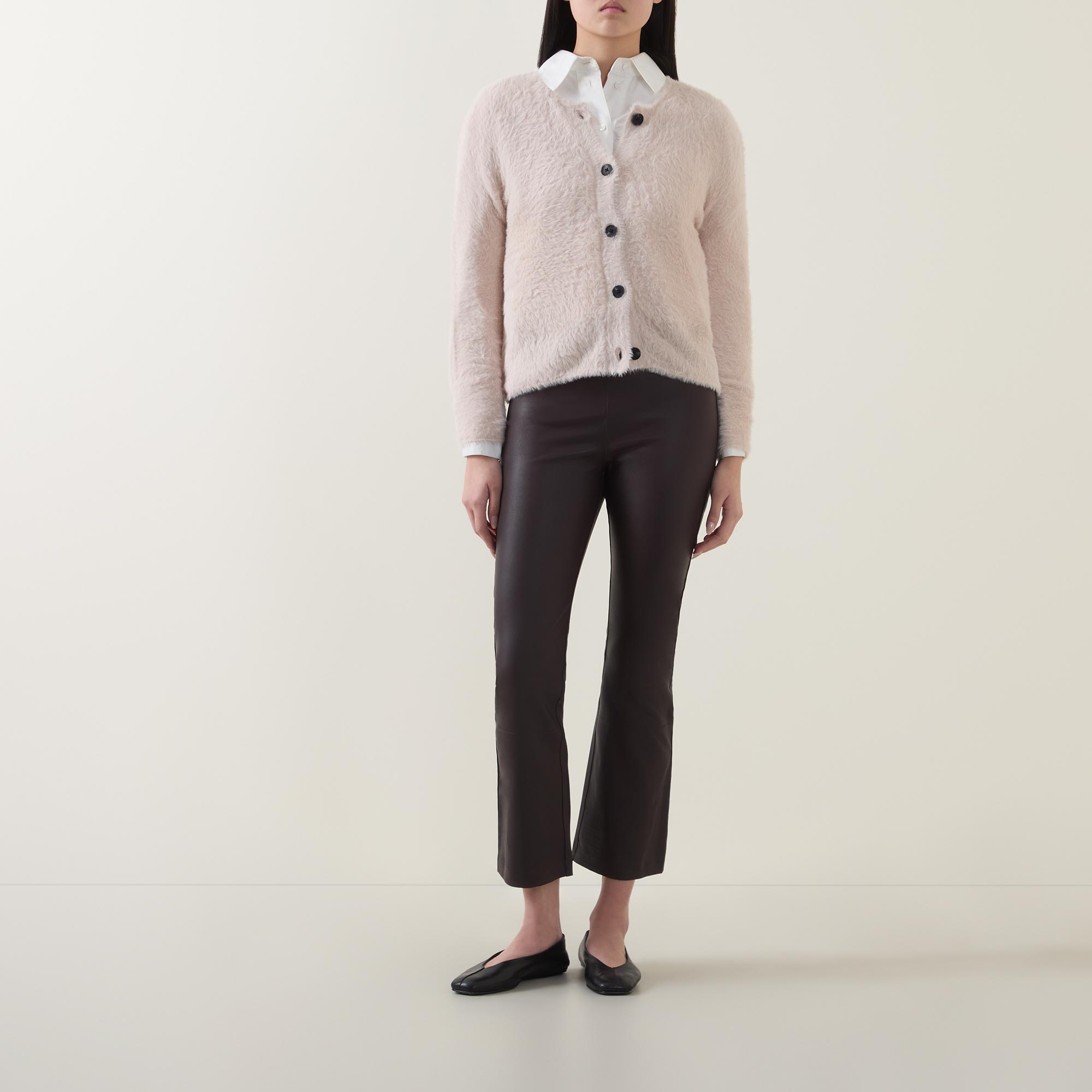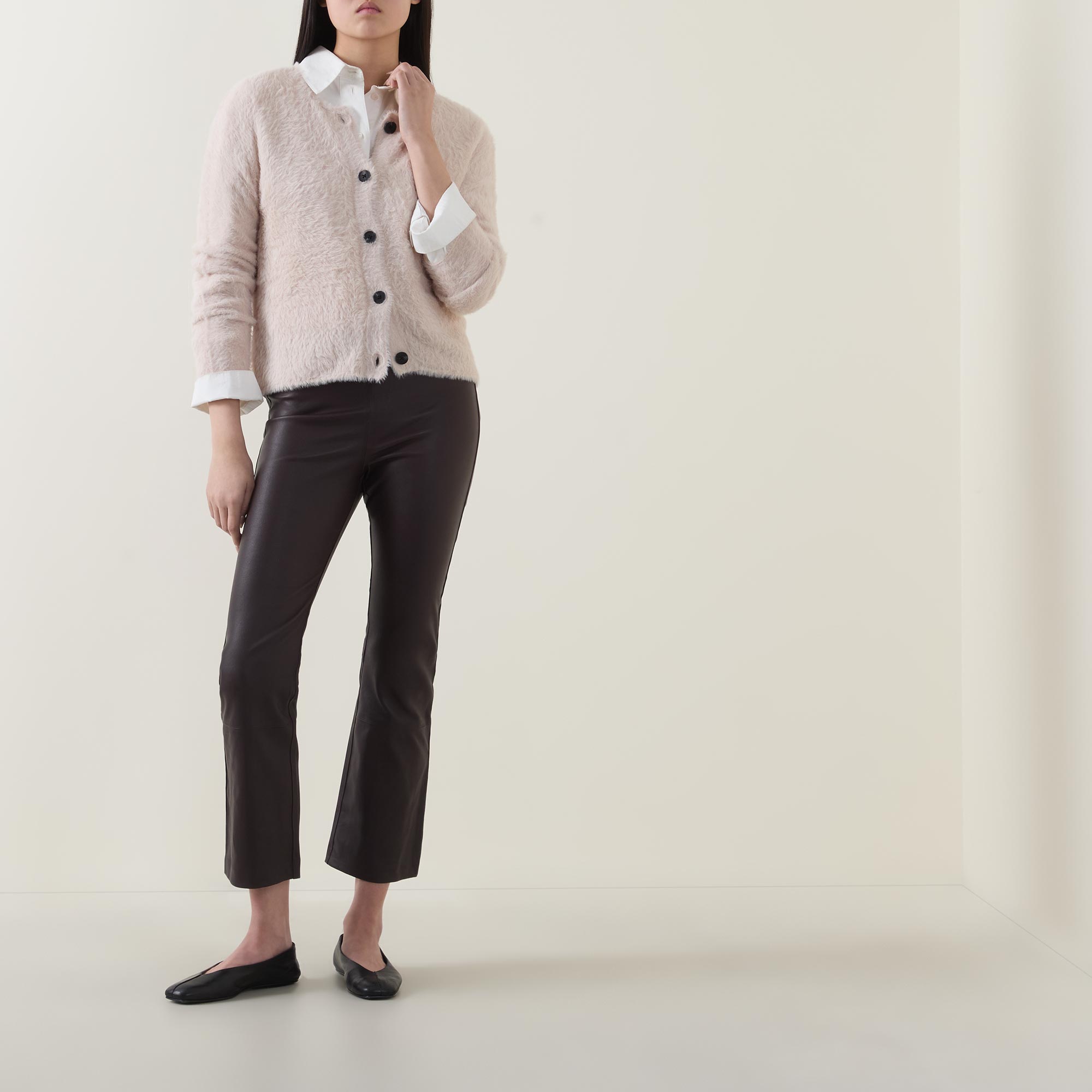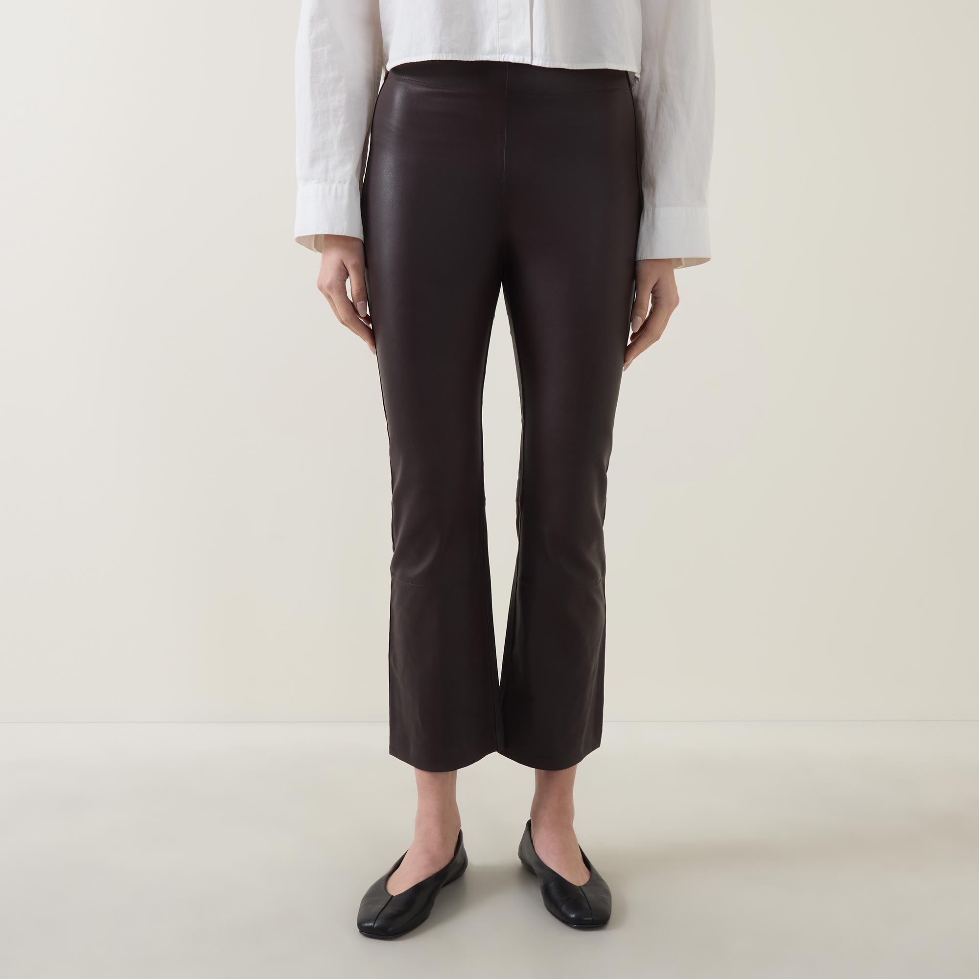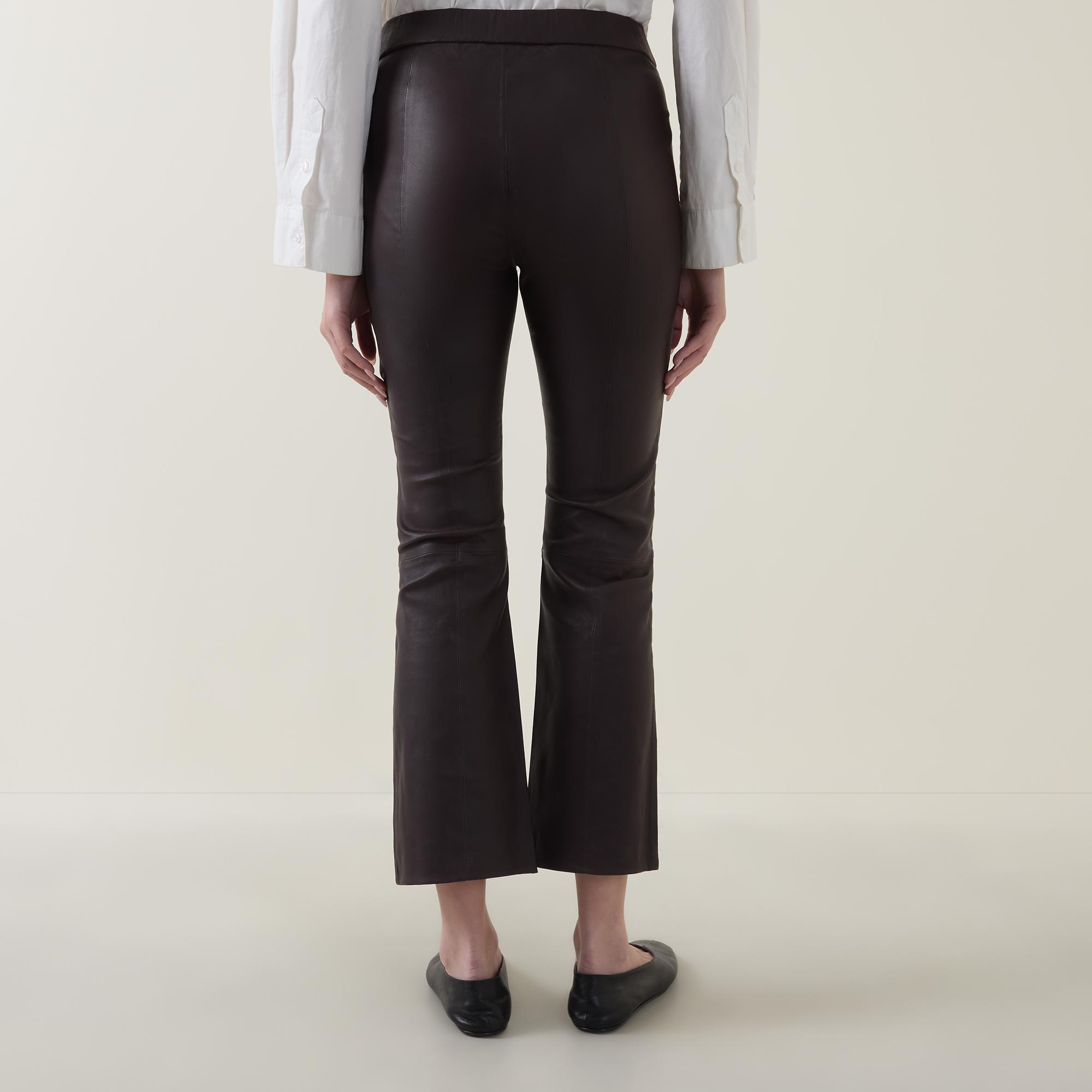 - Elasticated waistband, bootcut silhouette, grained finish, seam detail across the knees