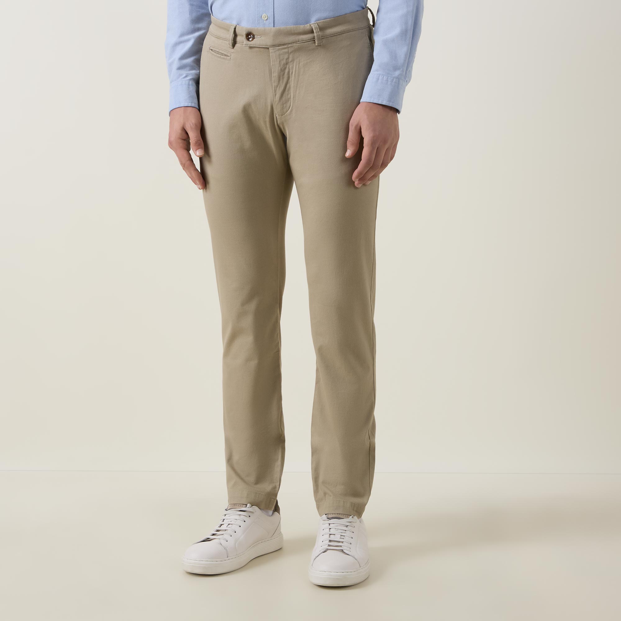 • Belt loops, button and zip fastening, five-pocket style, brand logo detail, belt loops, stretch-fused fabric