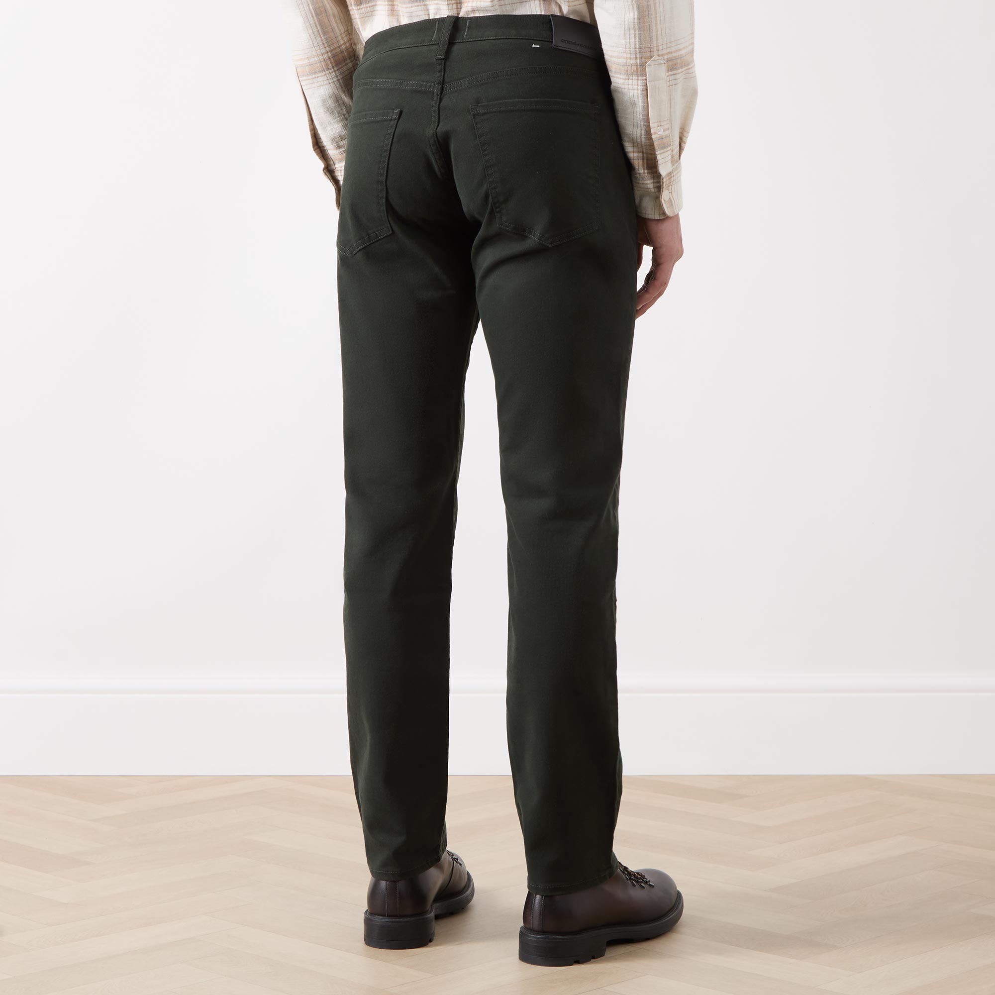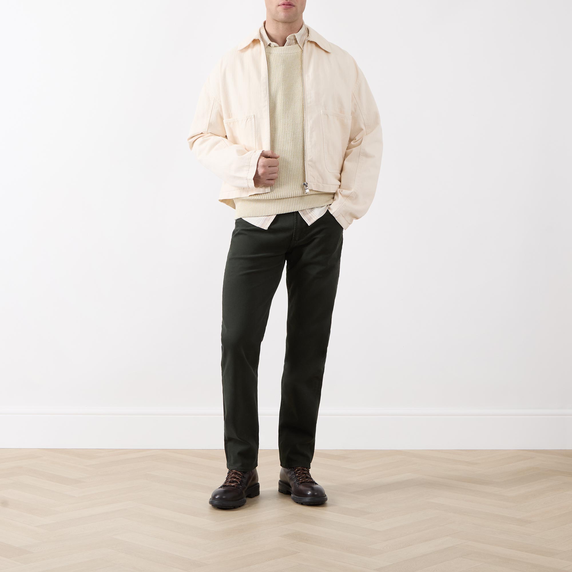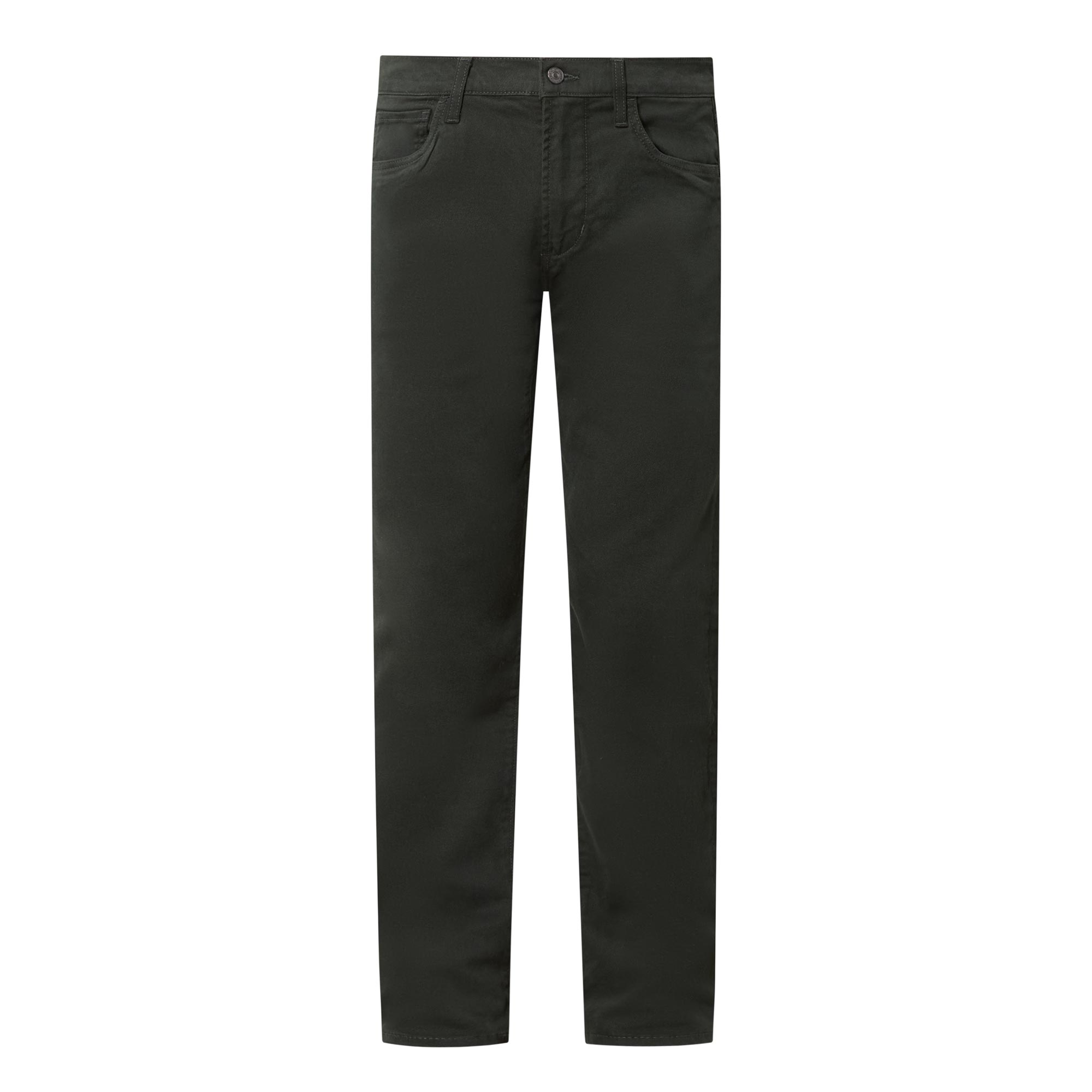 - Zip-fly and button fastening, belt loops, five-pocket design, tonal stitching, rear logo patch, mid-rise, straight-cut leg, smooth fabric