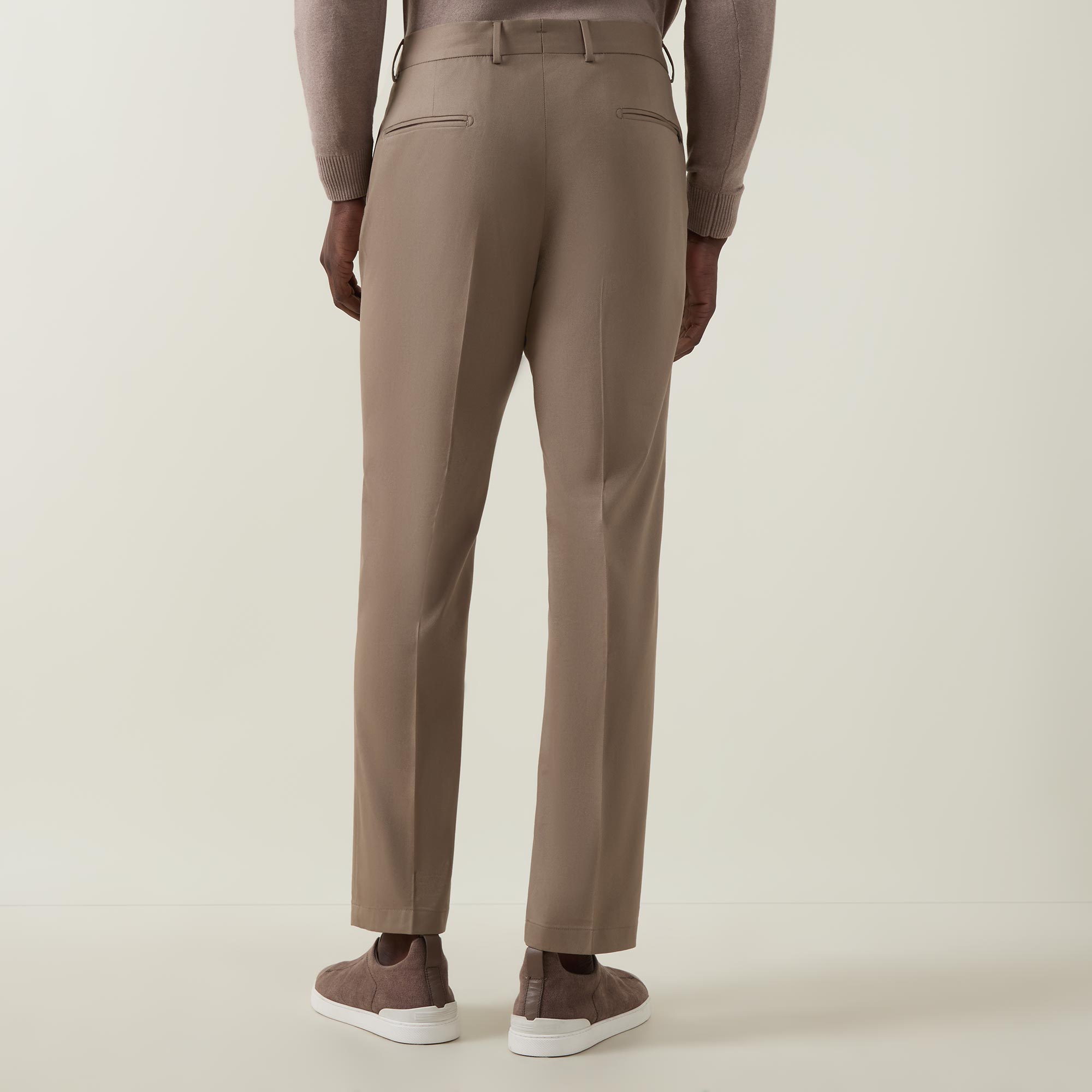 - Zip and button fly, mid-rise, belt loops, two side pockets, darted detail, pressed creases, two rear jet pockets, slim leg