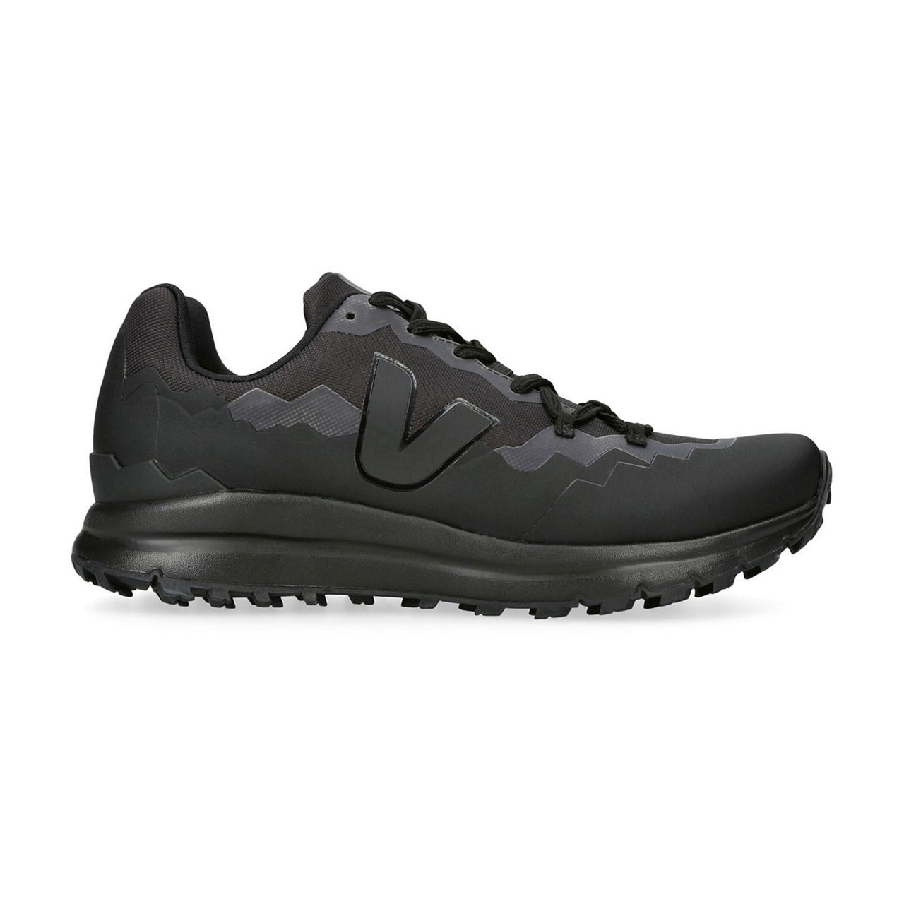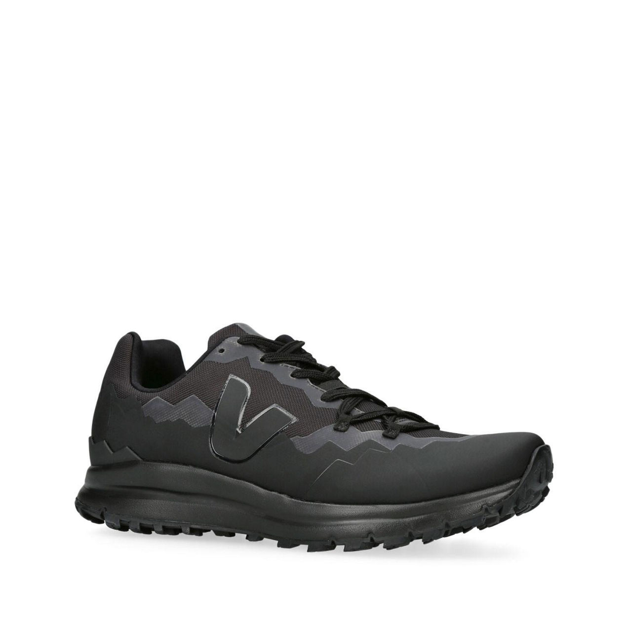 - Closed round toe, lace-up design, mountain-panelled detailing, logo patch on tongue, V logo detail, low-top, flat rubber sole