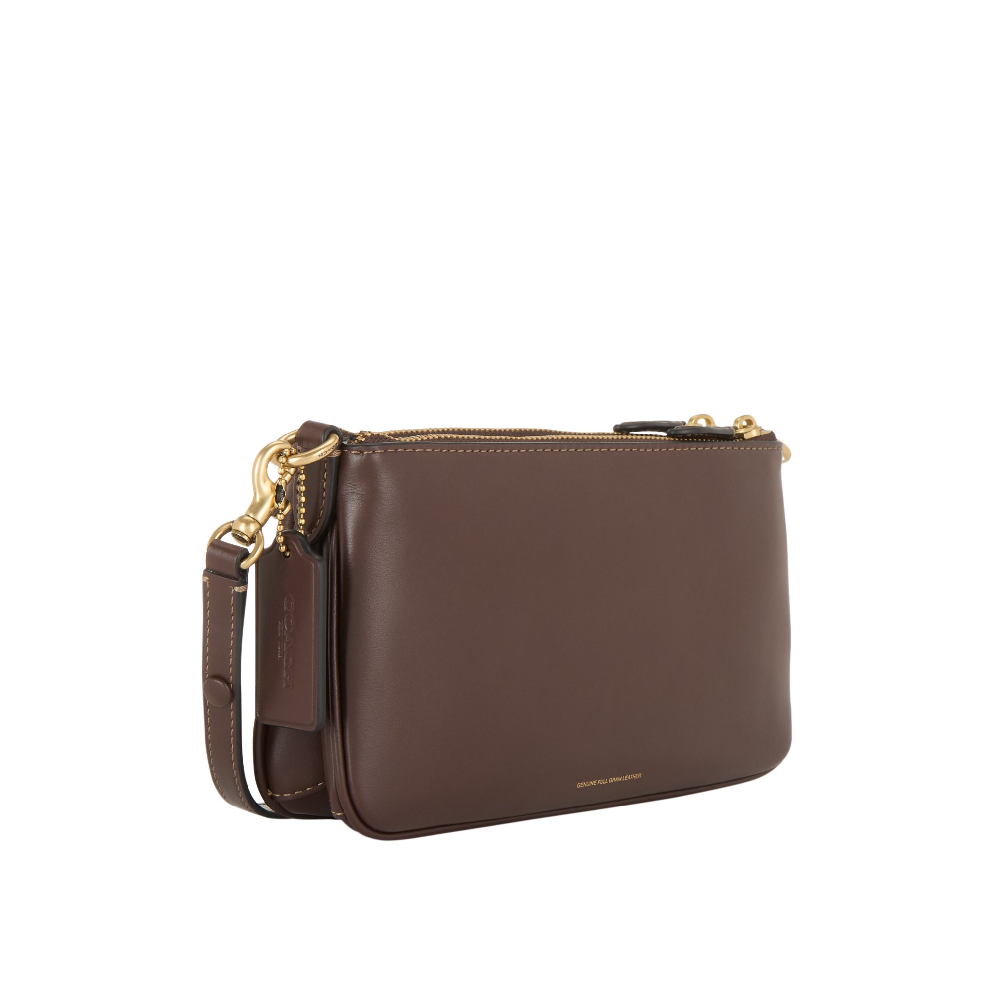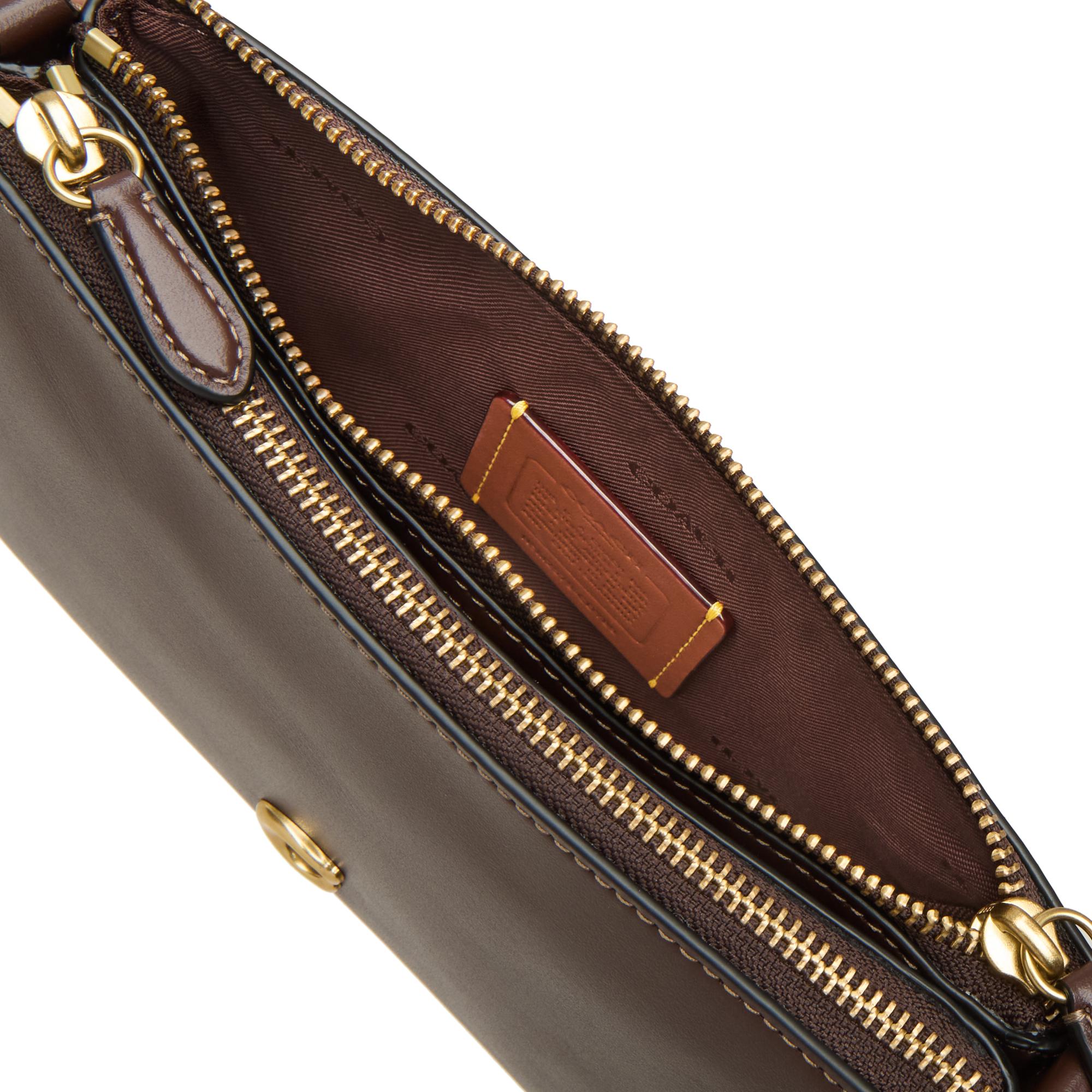 - Two zipped compartments, crossbody strap, gold-toned hardware, hanging logo tag