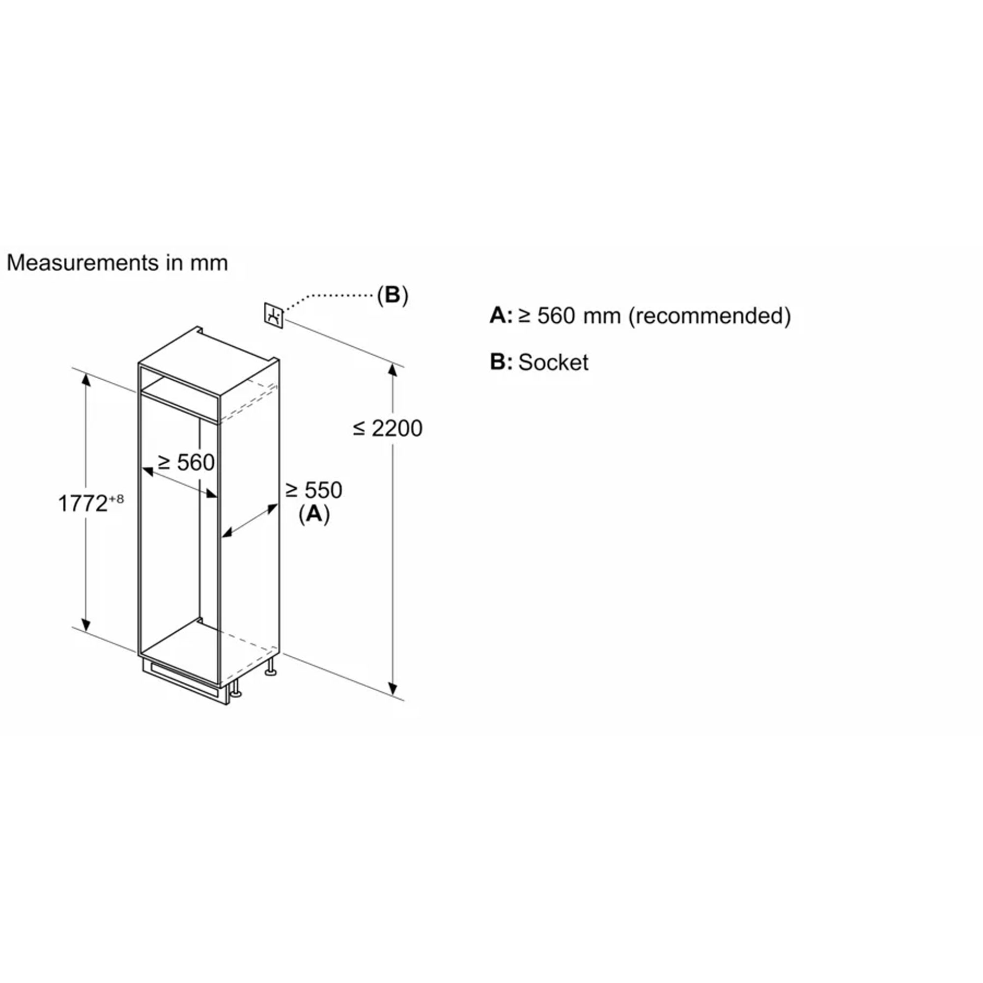 This Bosch Series 2 built-in fridge-freezer (177.2 × 54.1 cm) offers efficient cooling, extra storage for fresh foods, and convenient low-maintenance features. With NoFrost technology, you will never need to defrost the freezer again. Eco Airflow ensures consistent temperature and humidity throughout the fridge, helping food stay fresher for longer. LED lighting provides a clear view of every shelf, and when connected to the Home Connect app, the lighting can even be controlled from your smartphone. The spacious MultiBox XXL gives you generous room for fruit and vegetables, while Super Freezing protects frozen items and quickly chills new additions. Designed with a sliding hinge, reversible doors, and a 60:40 split, it fits seamlessly into modern kitchens.