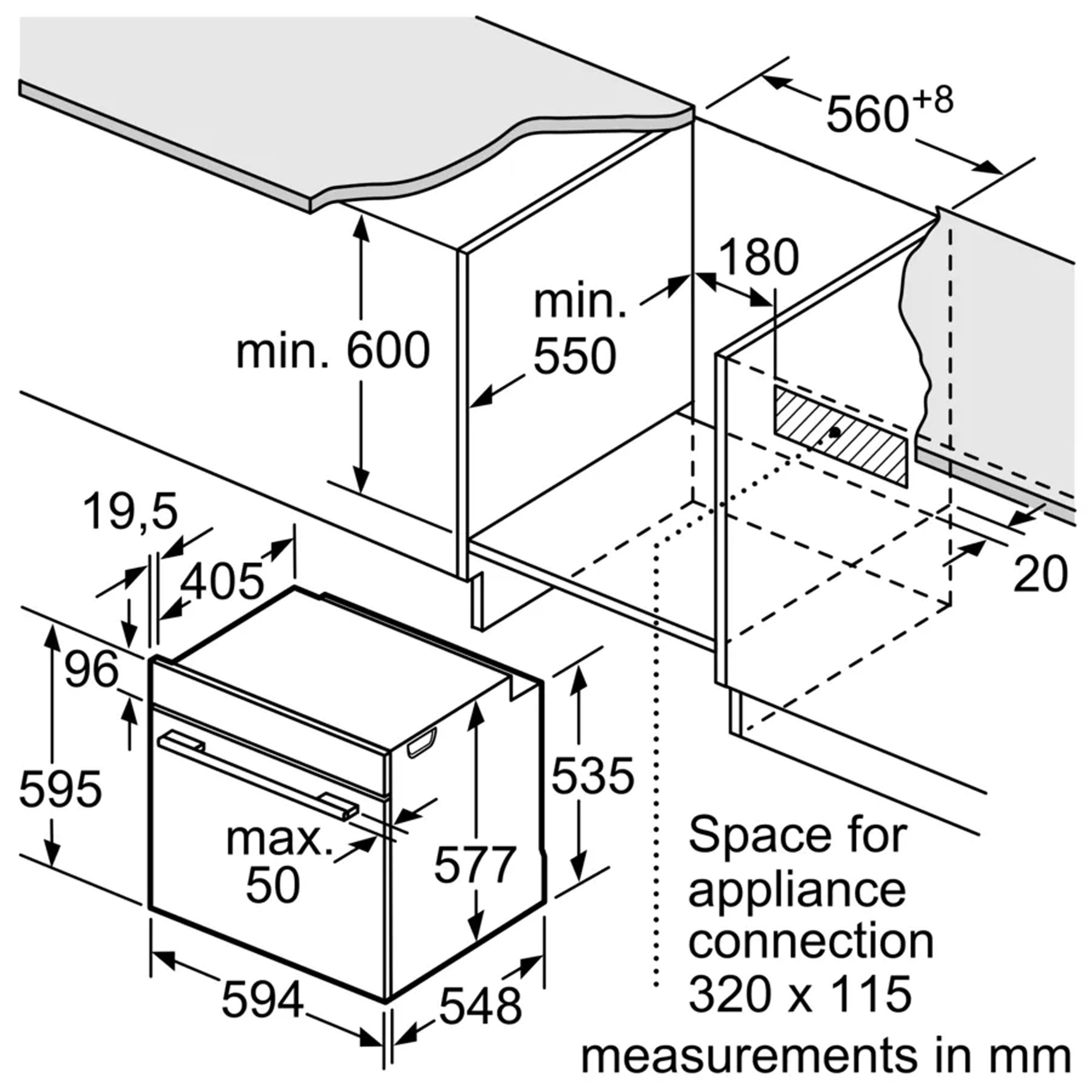 - Dimensions: 595 × 594 × 548 mm
