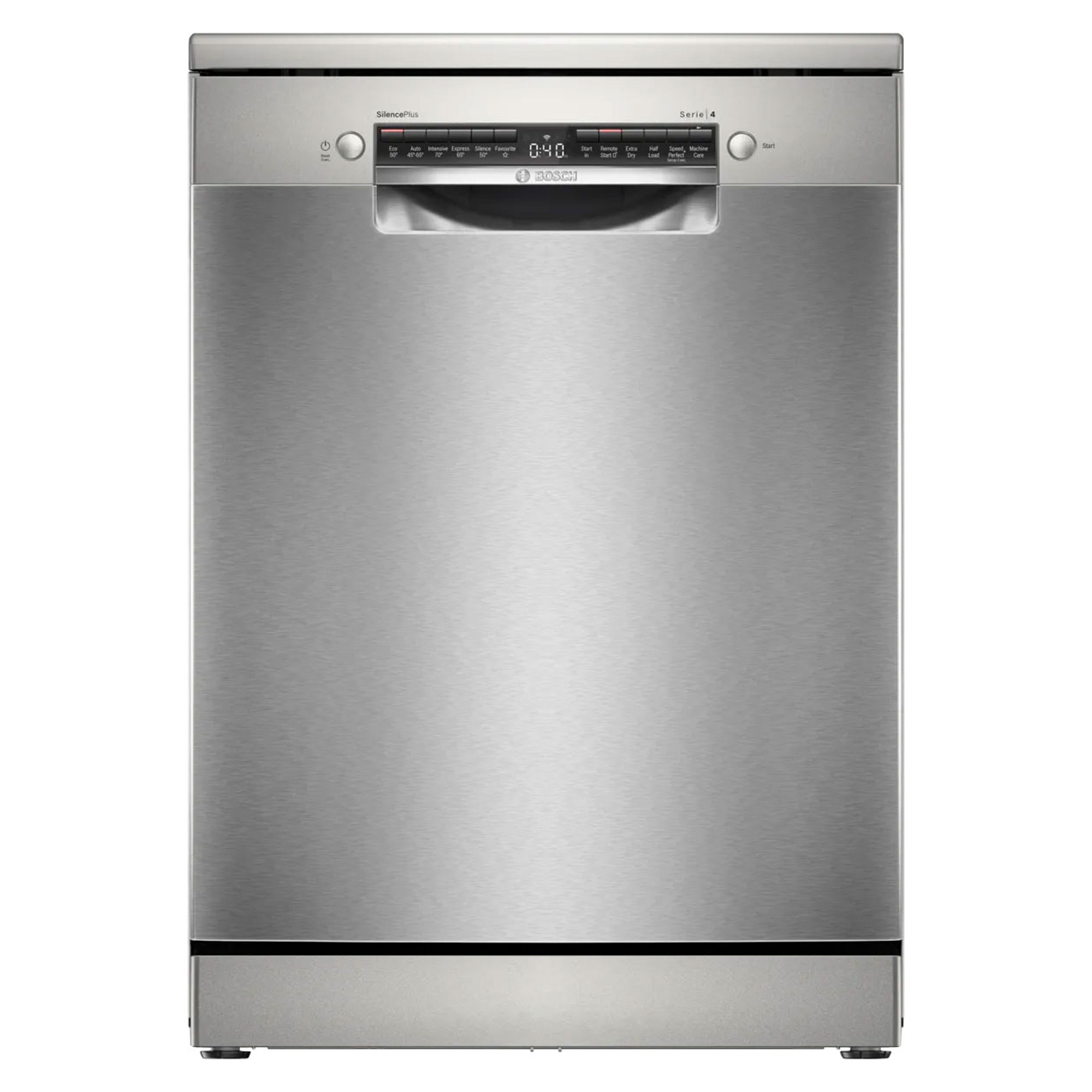 The Bosch Series 4 SMS4EMI06G freestanding dishwasher offers powerful cleaning, flexible loading, and smart connectivity. ExtraDry ensures plastic items come out completely dry, while Silence Plus 42 dB keeps your kitchen peaceful. Rackmatic provides adjustable upper-basket height for easier loading, and the VarioDrawer adds extra space for cutlery and utensils. With Home Connect, you can control the dishwasher remotely, download programmes, and use voice control with Amazon Alexa. Favourite settings, Programme Assistant suggestions, and automatic programmes make running the dishwasher effortless, while Remote Diagnostics offers support whenever you need it.