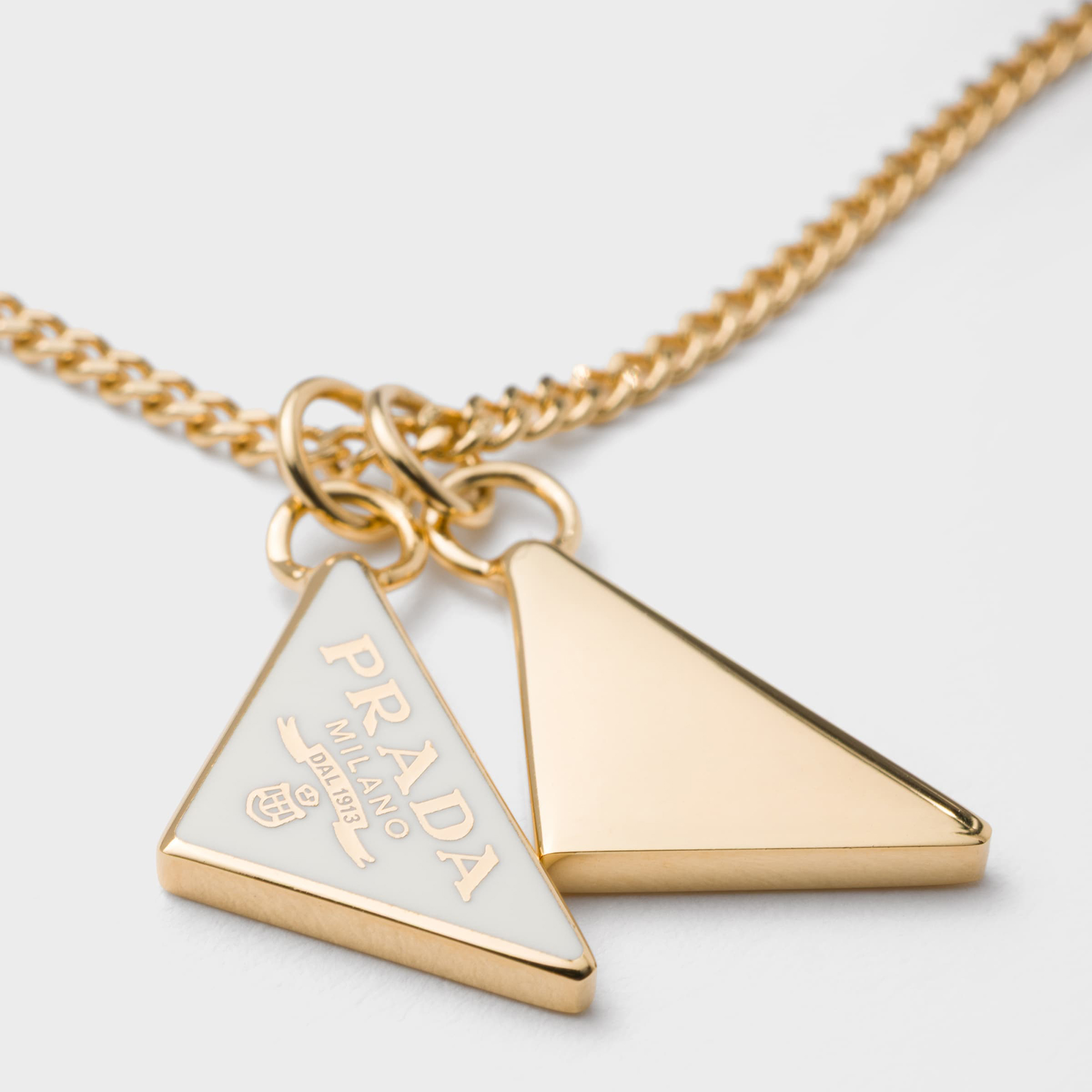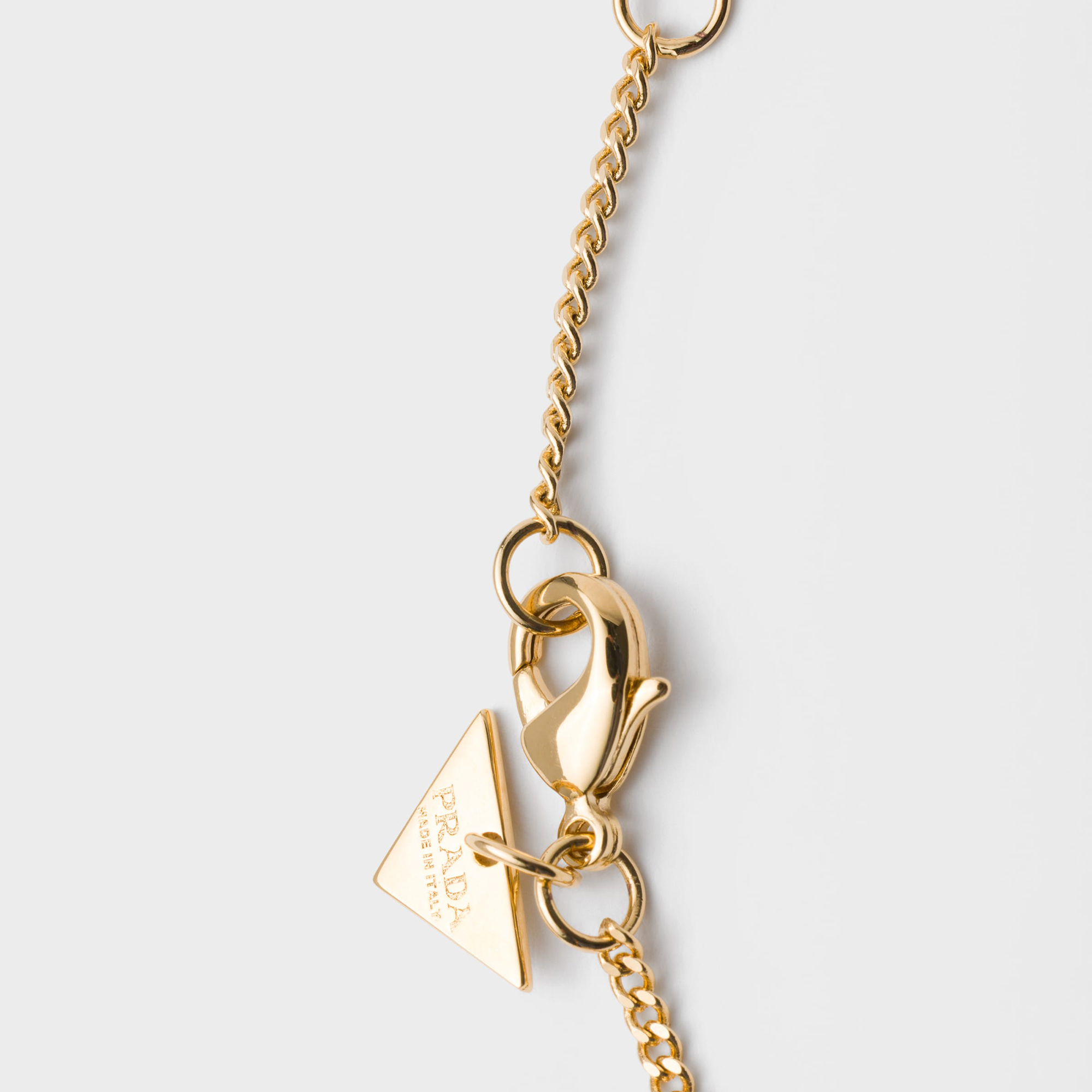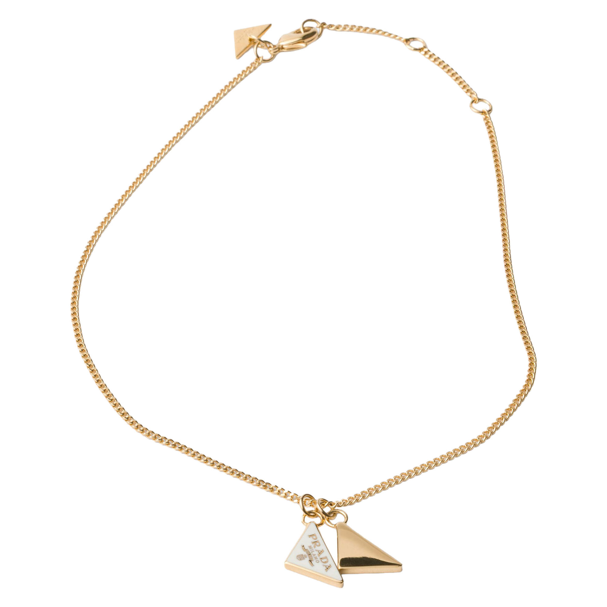 - Enamelled triangle logo, lobster claw clasp fastening, gold-tone finish
