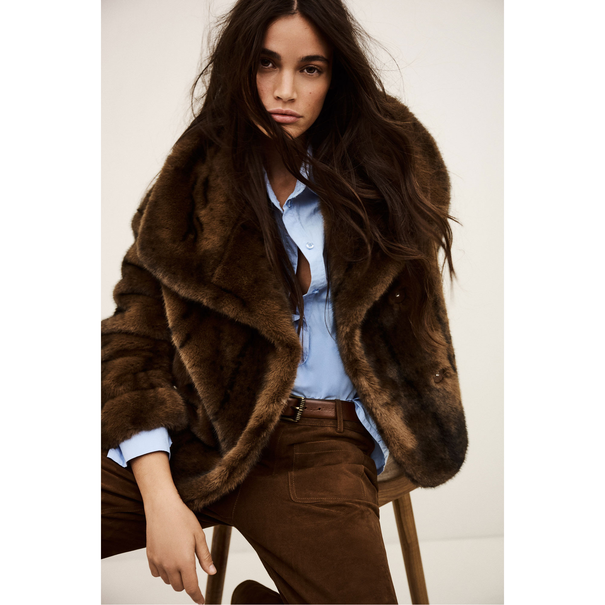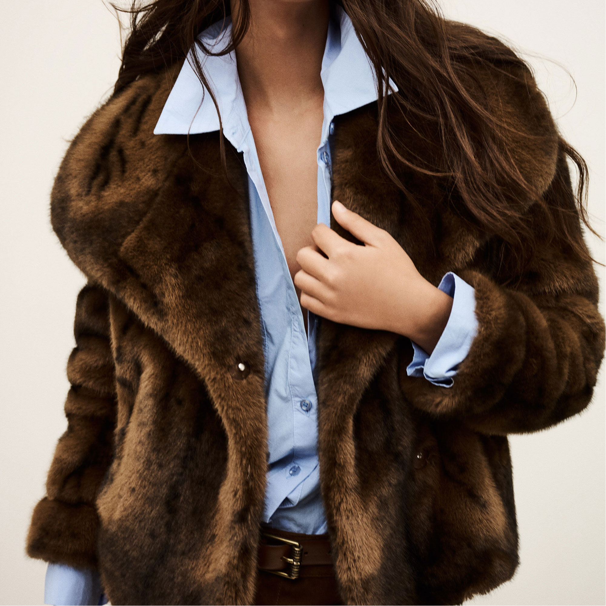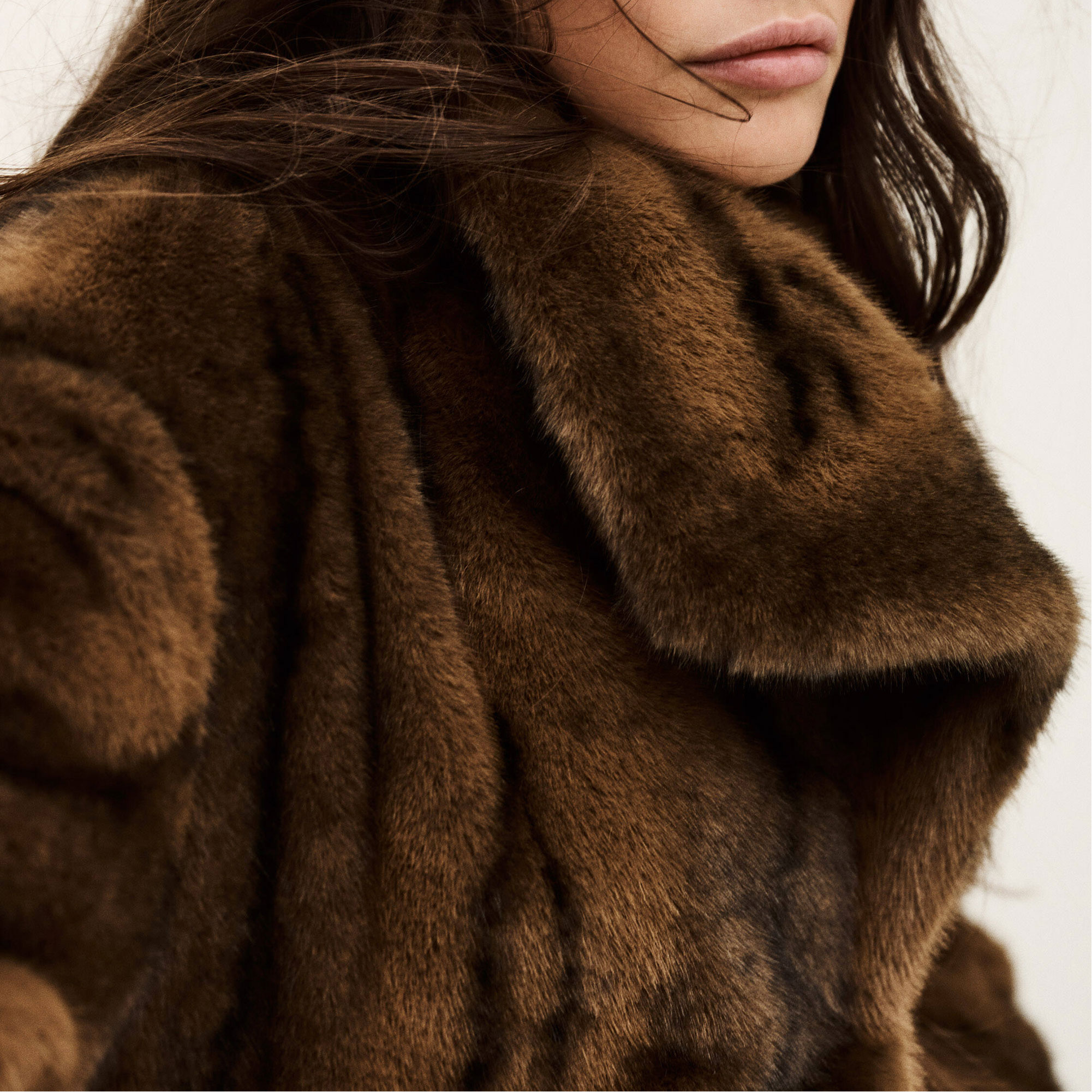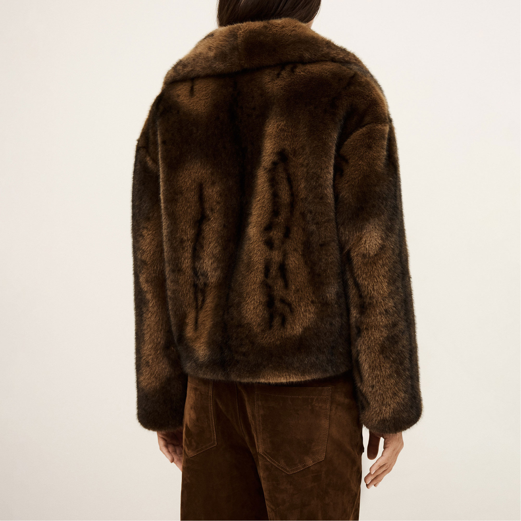 - Large collar, press-stud fastening, soft feel, faux-fur