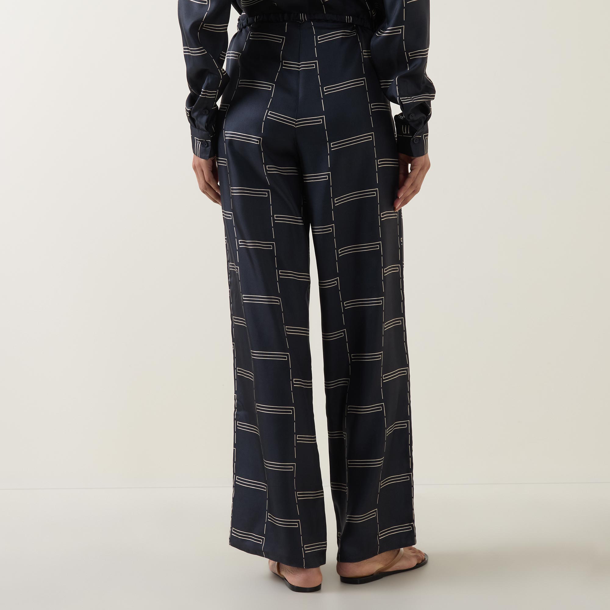 - Elasticated waistband, printed design, high-rise, wide-cut leg, smooth silk finish