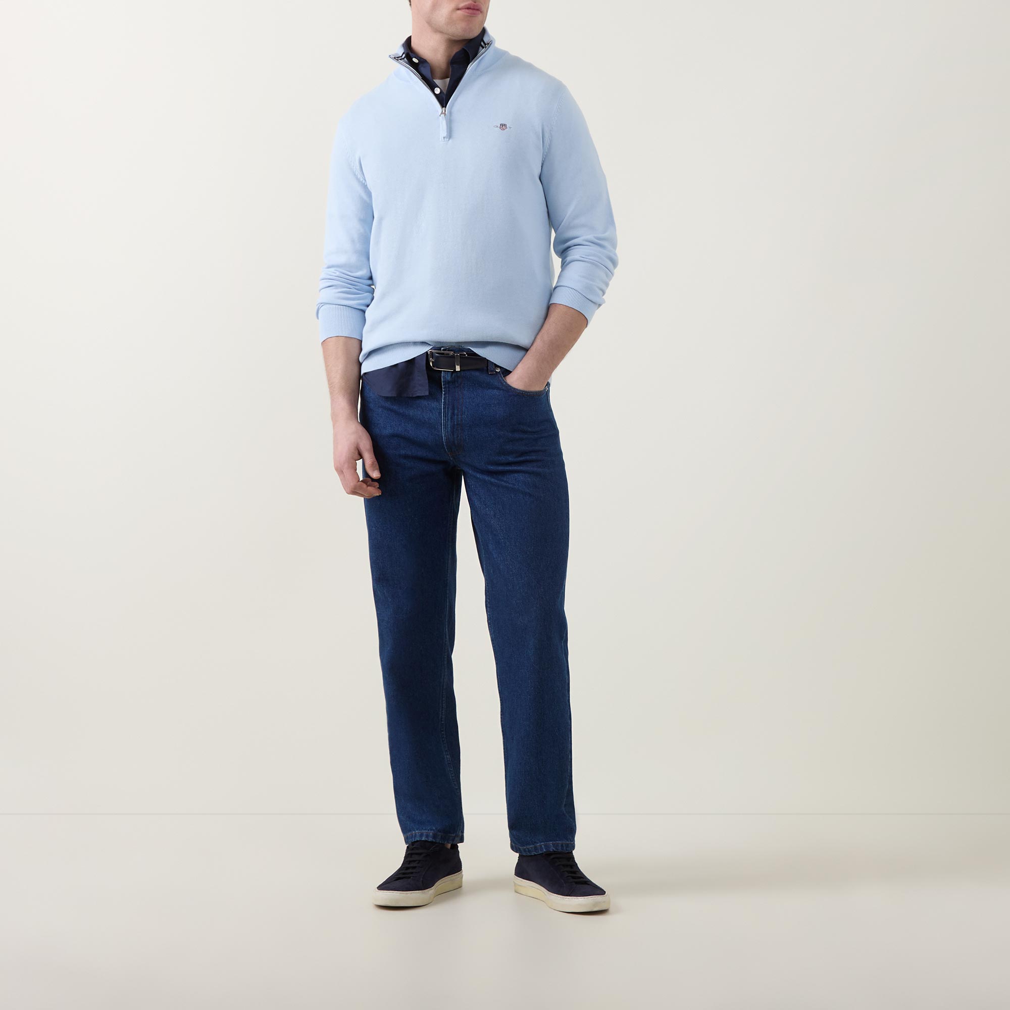 - Funnel neck, half zip fastening, long sleeves, straight hem, ribbed trims, Shield logo embroidery on the chest, knit construction, soft finish