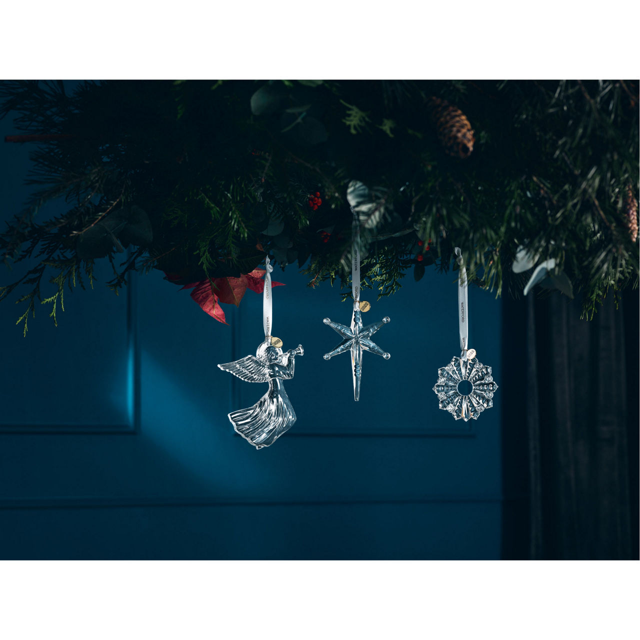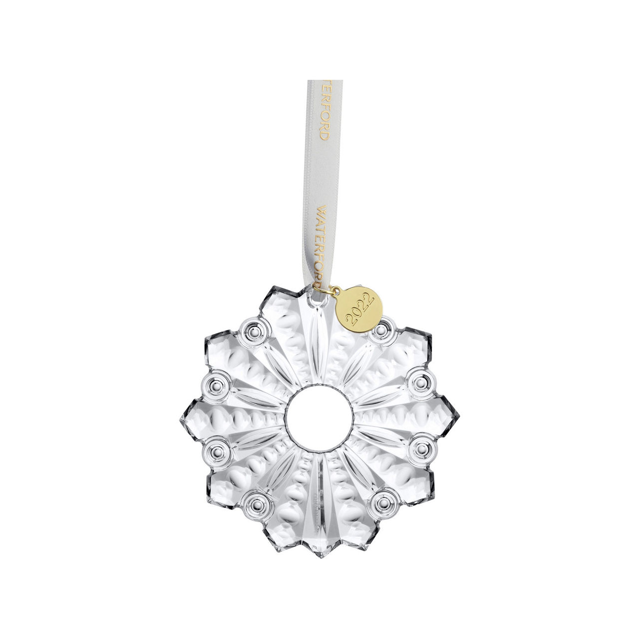 - Expertly designed and crafted snowcrystal crystal ornament Ready to hang with a gold and white satin ribbon Exquisitely finished with a golden 2022 hang tag Carefully wrapped in tissue and packaged in a cloth Waterford bag Beautifully presented in a signature Waterford box