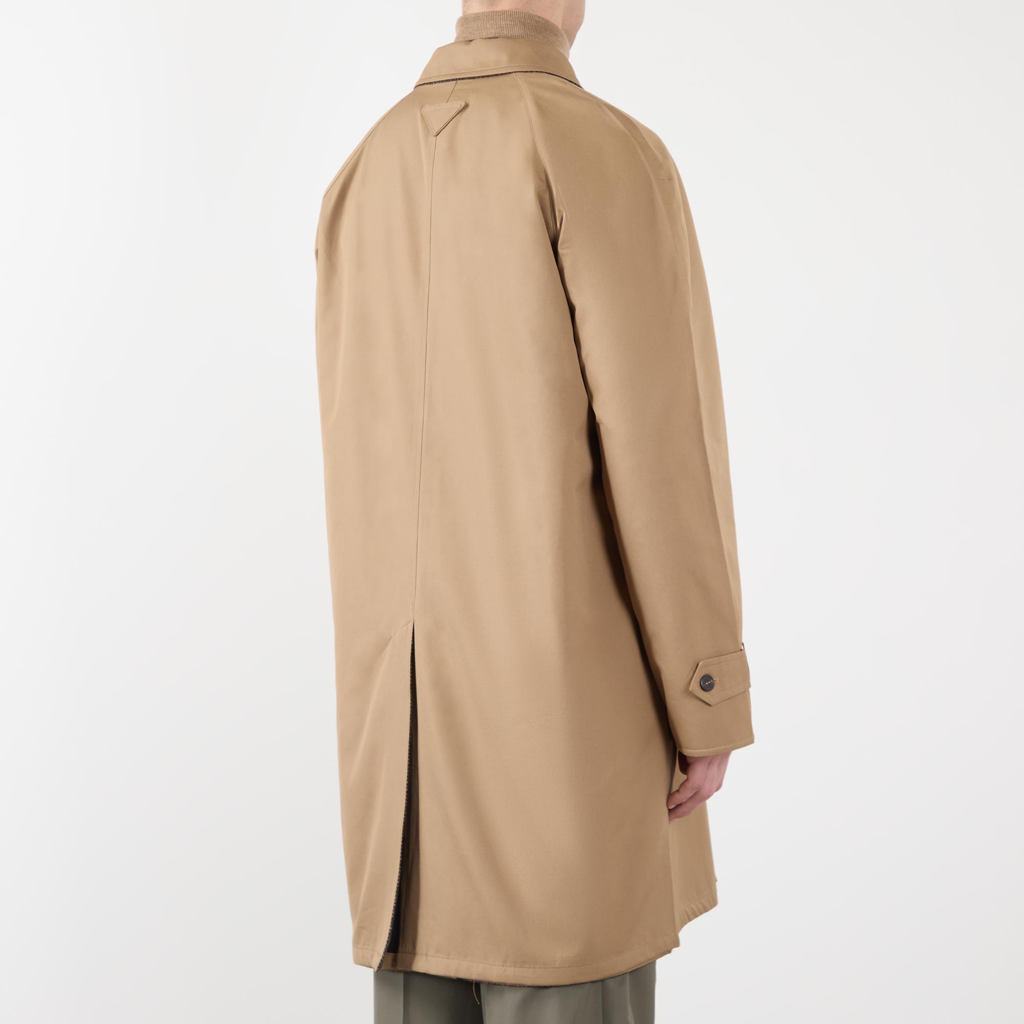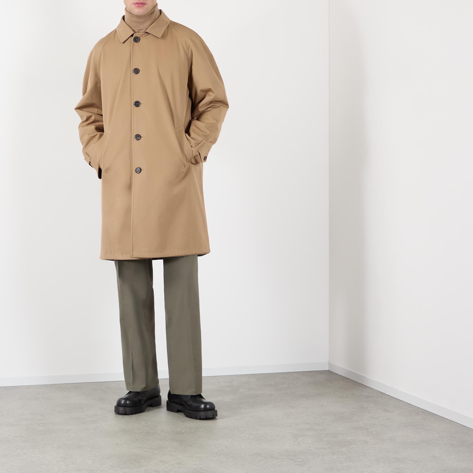 - Reversible design, point collar, long sleeves, single-breasted front, button fastenings, two side in-seam pockets, rear slit, button cuffs
