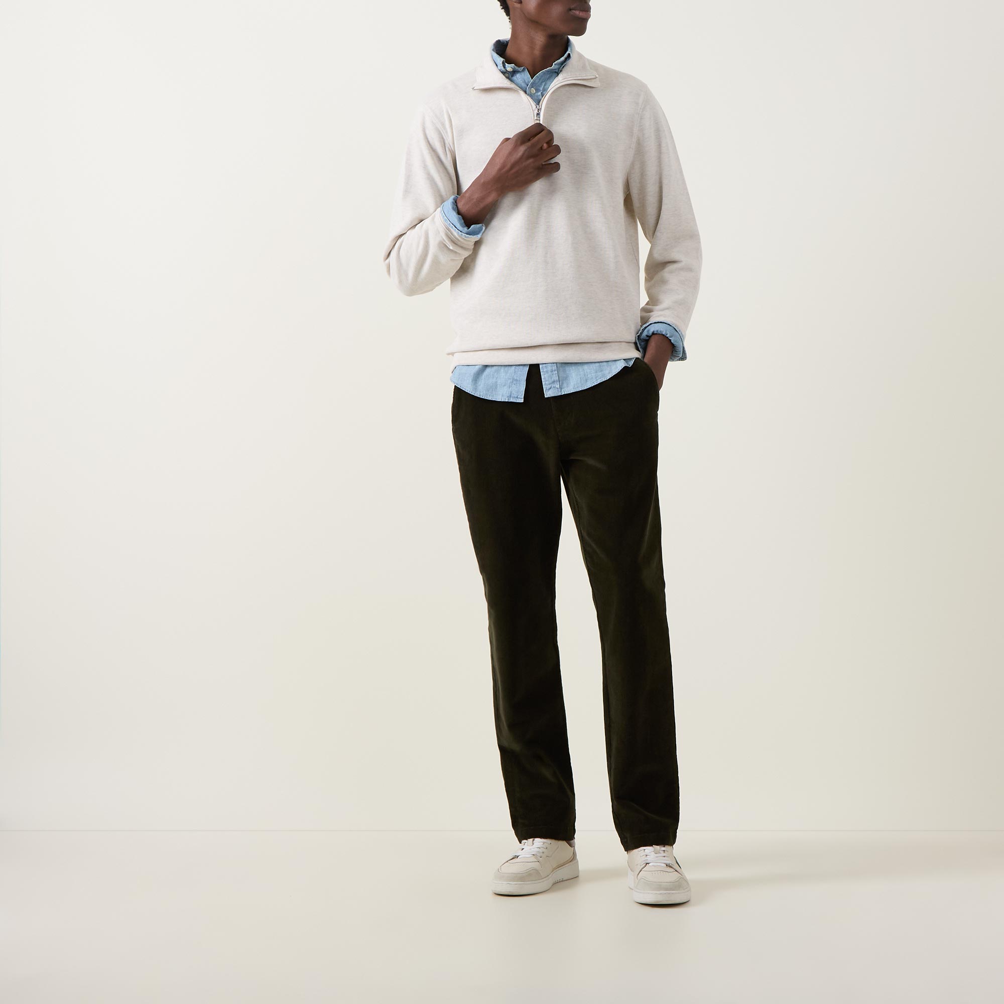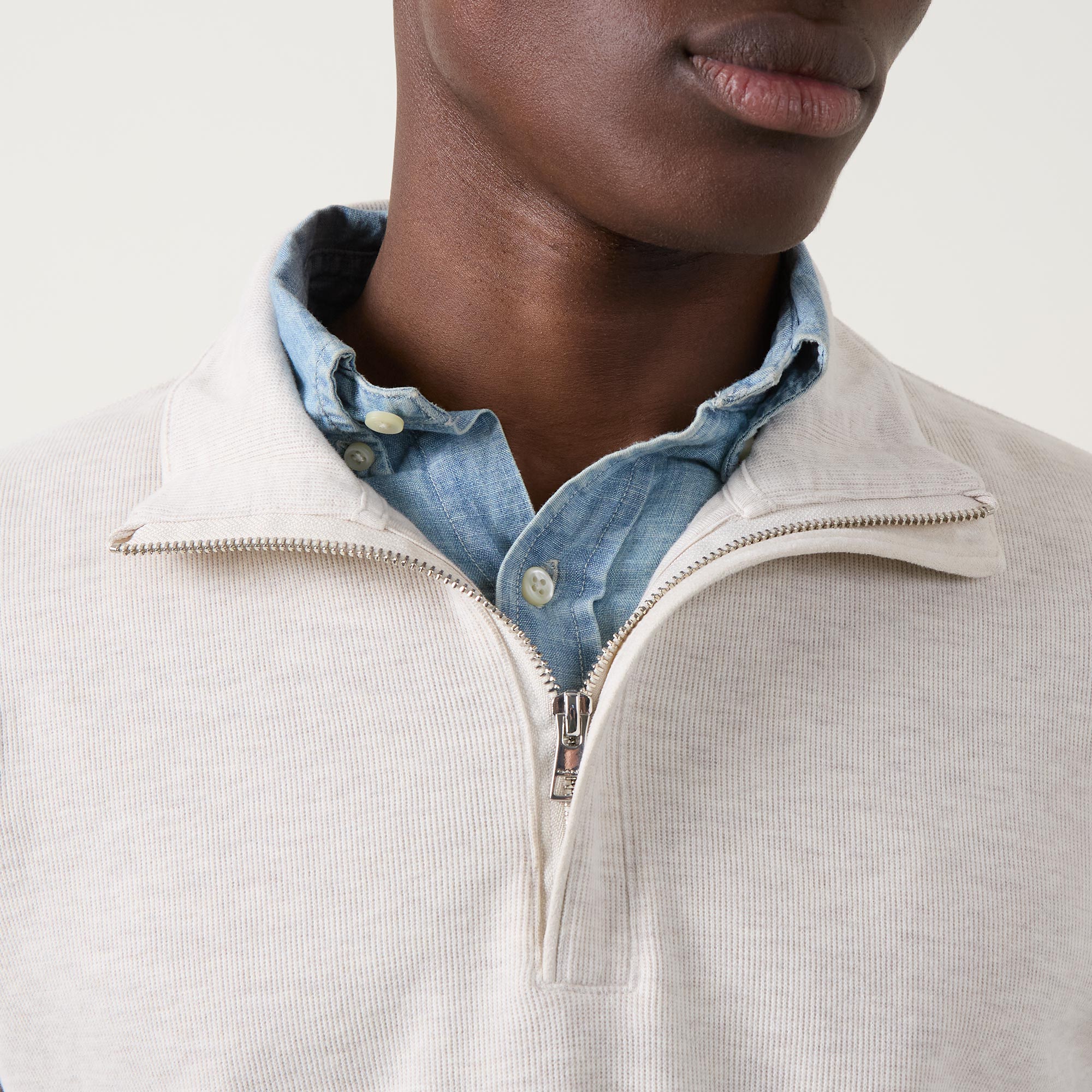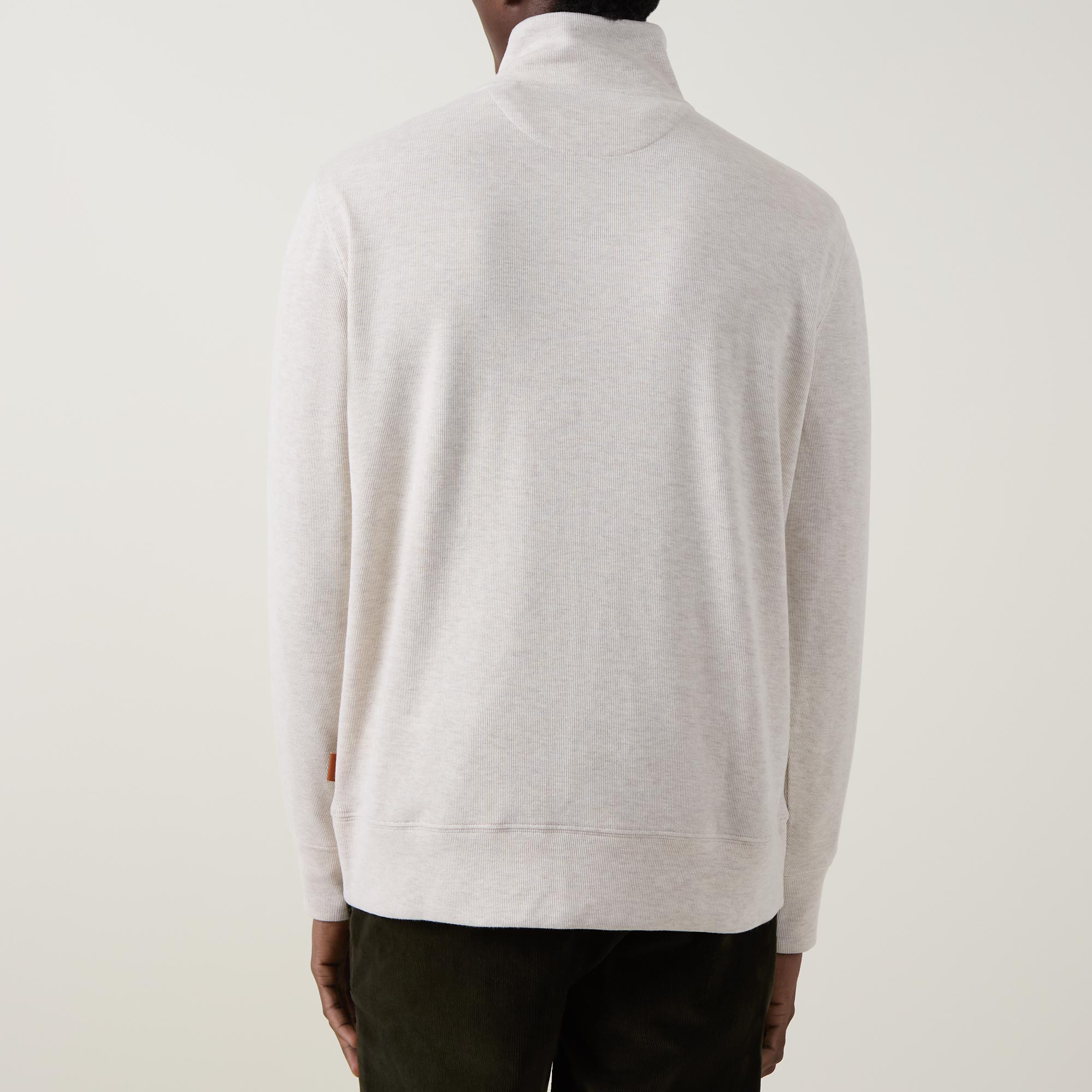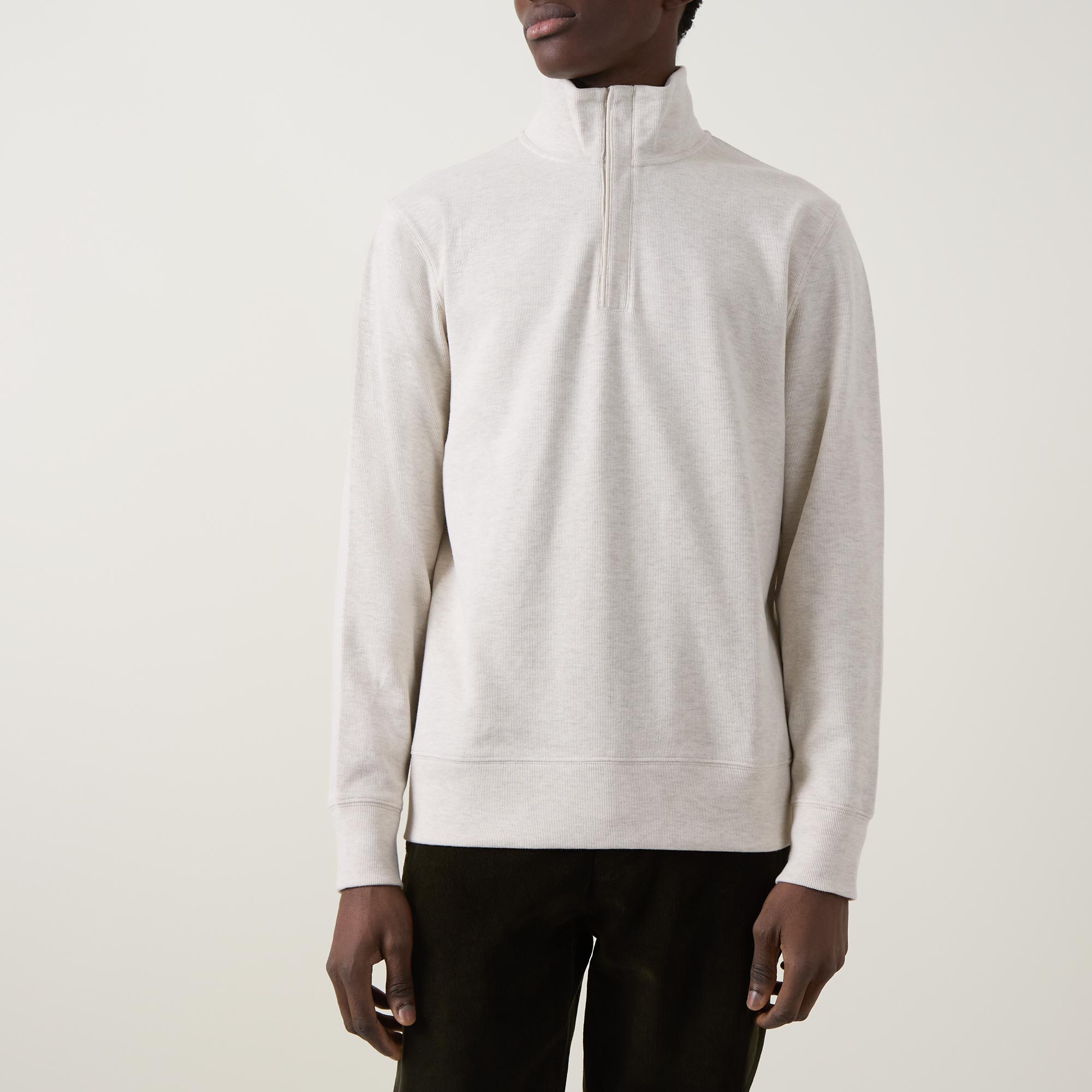 - Half-zip fastening, long sleeves, concealed zip, ribbed trims, straight hemline