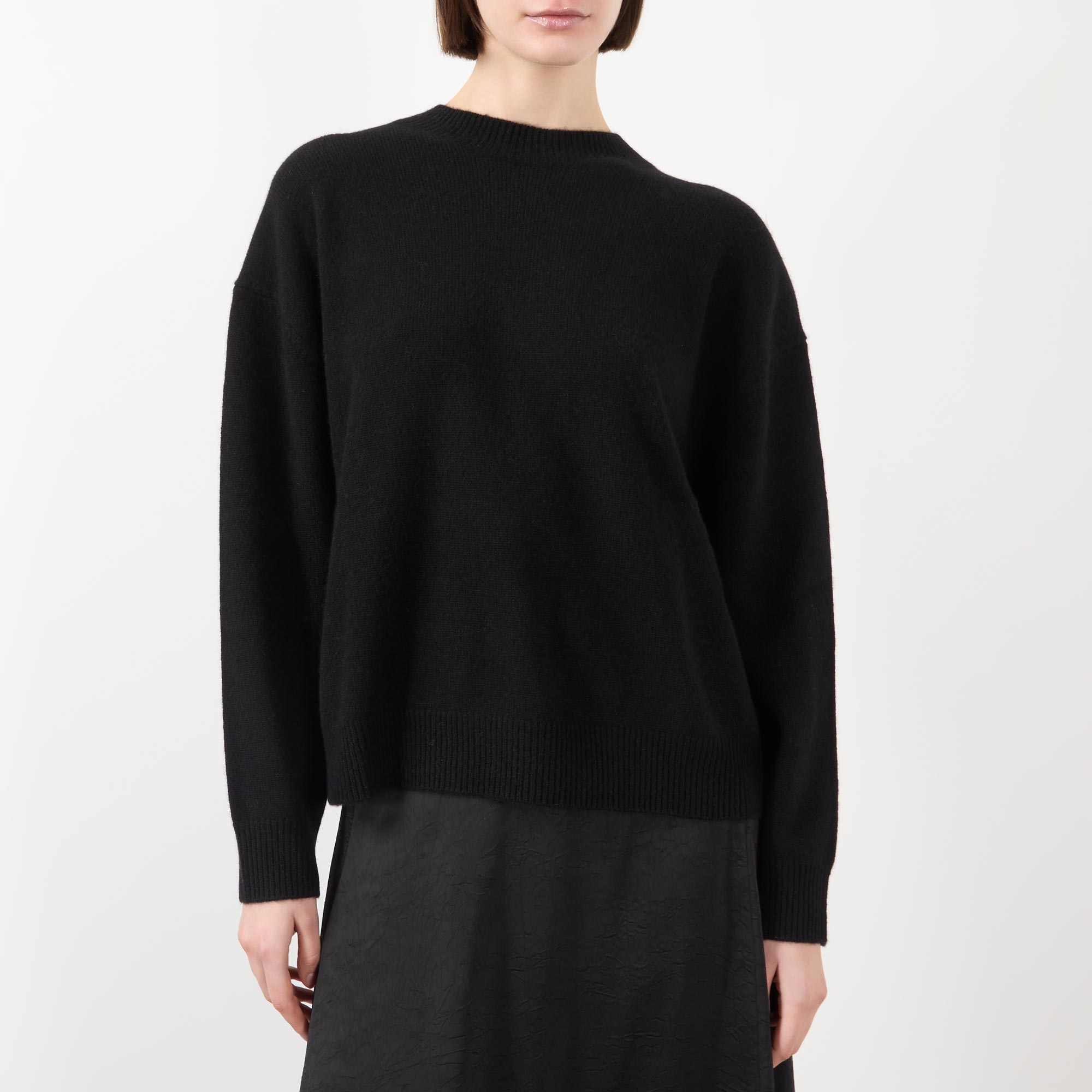 - High crew neckline, dropped shoulders, long sleeves, straight hem, ribbed trims, knit construction, super-soft finish