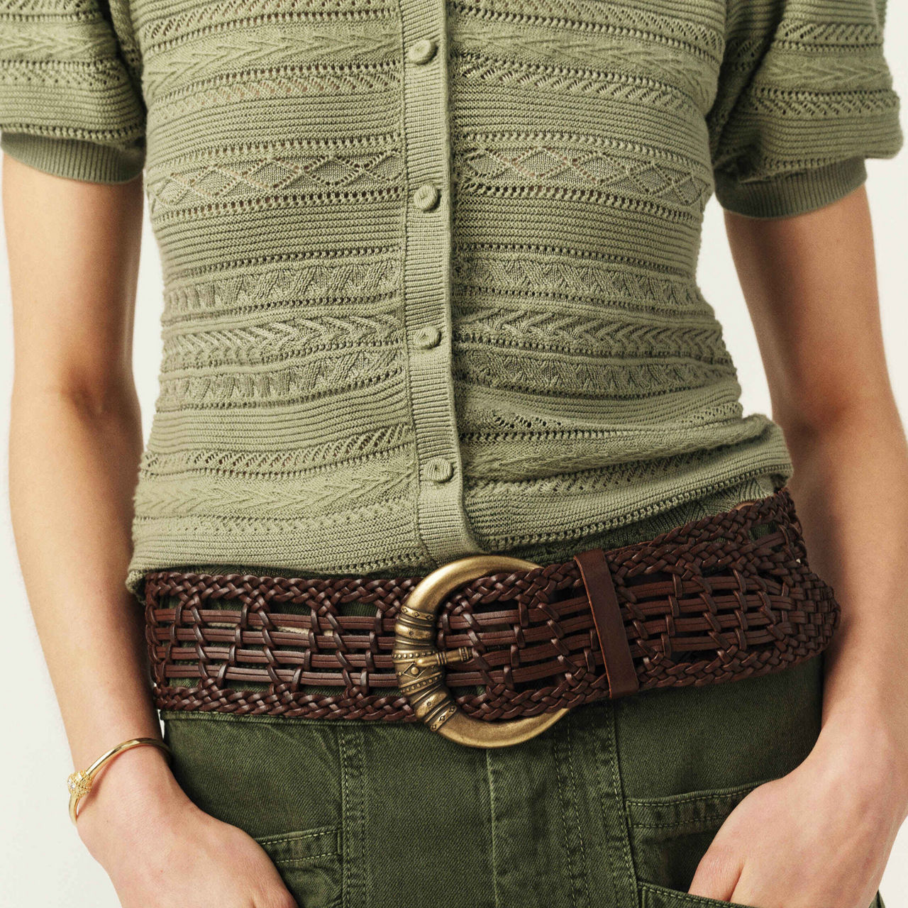 - Braided leather design, metal buckle signed ba&sh