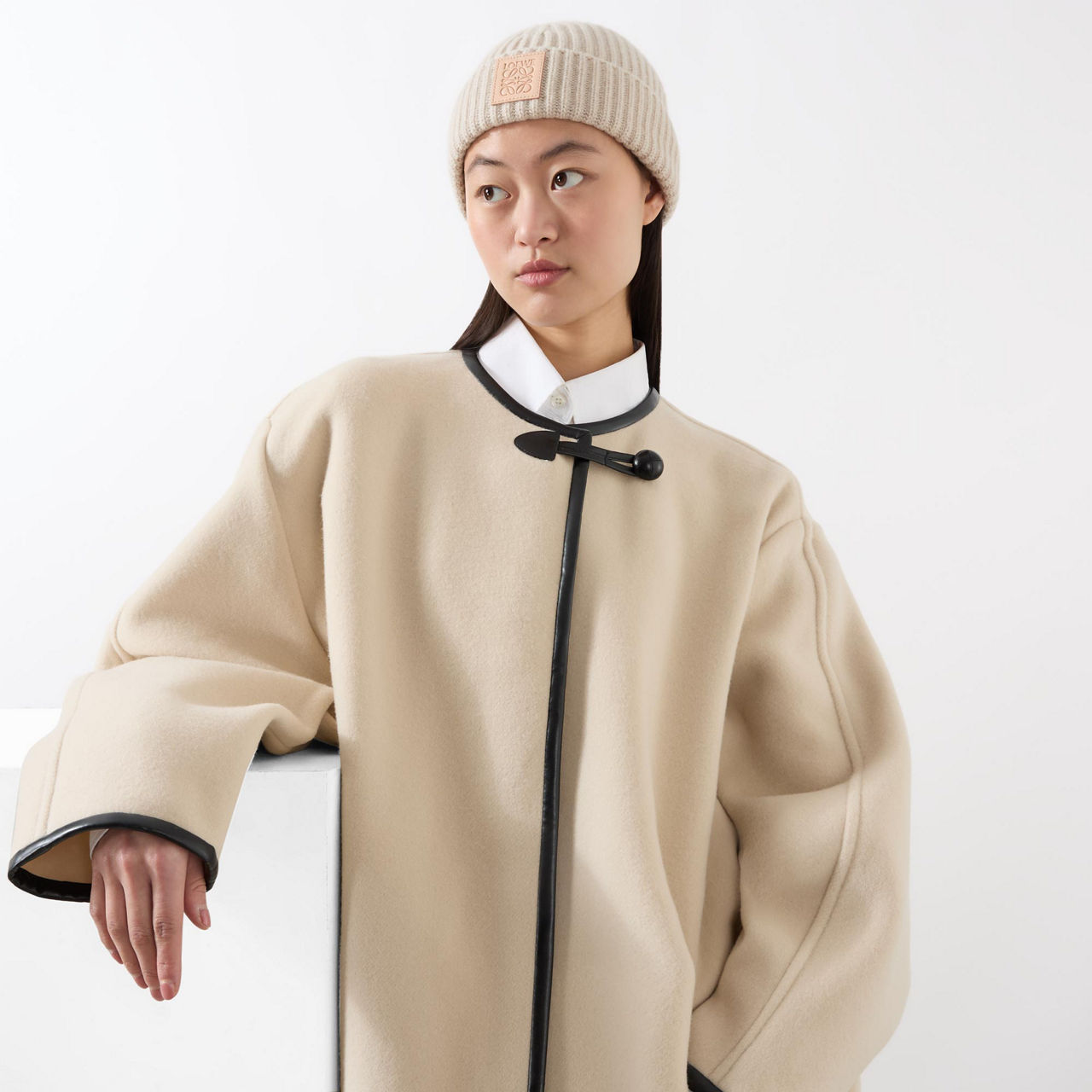 - Turned-up brim, logo Anagram patch, ribbed-knit finish