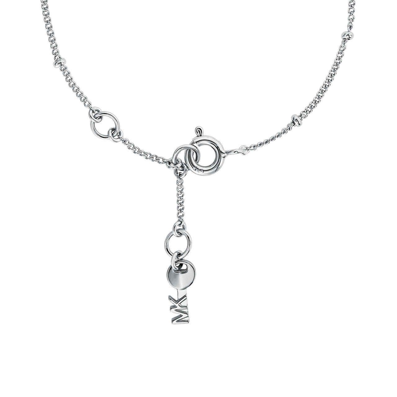 - Silver-toned, padlock charm, pave crystal embellished, logo-embossed, key charm, lobster clasp closure.