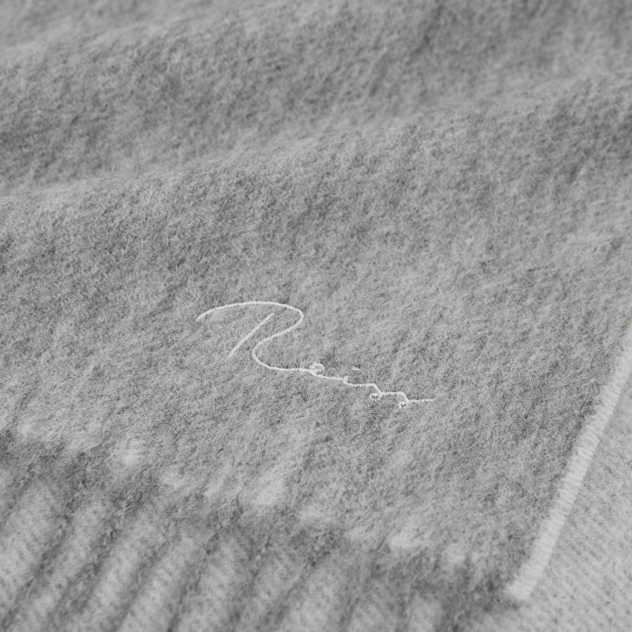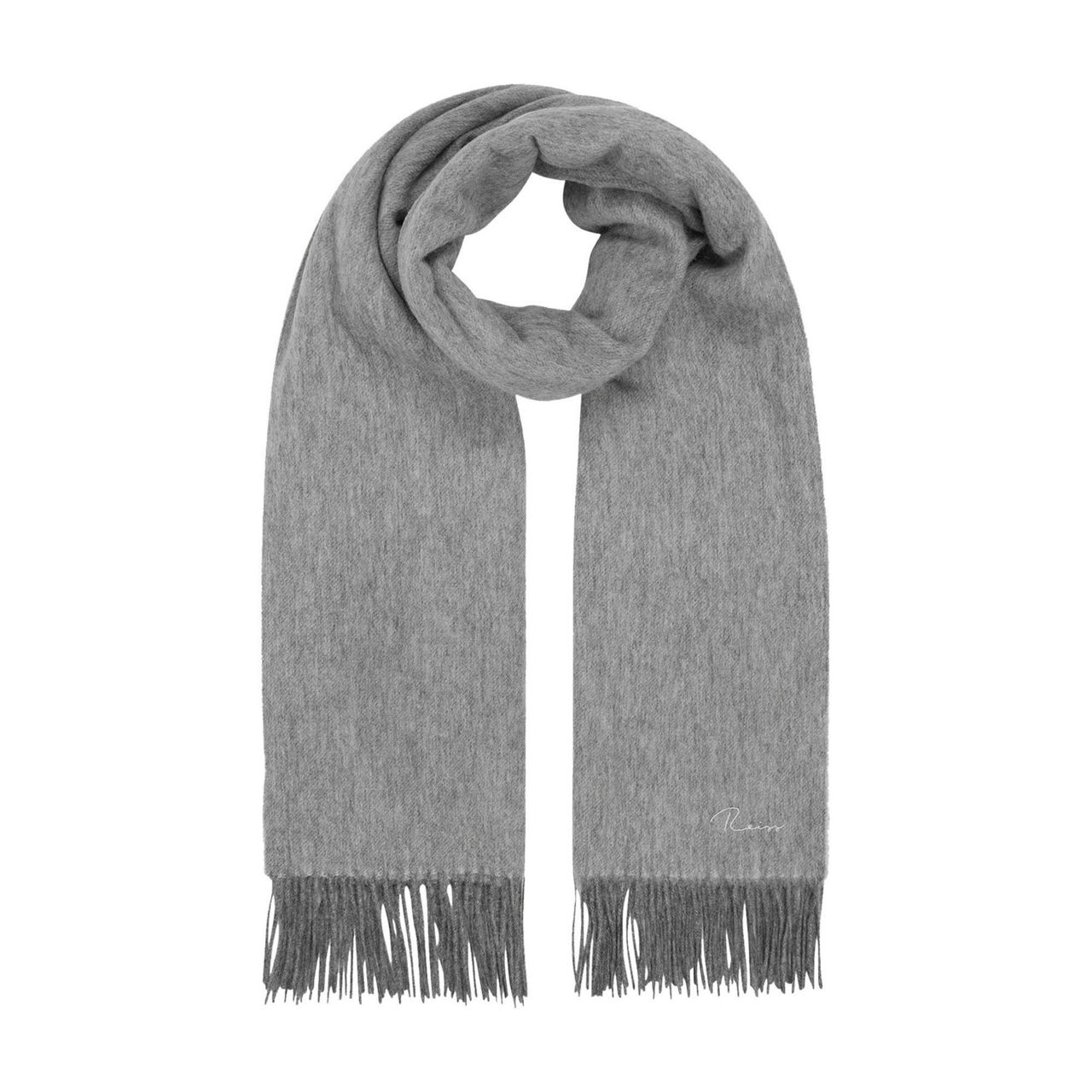 - Solid colour, embroidered logo, fringed tassels, wool-cashmere blend, wrap style