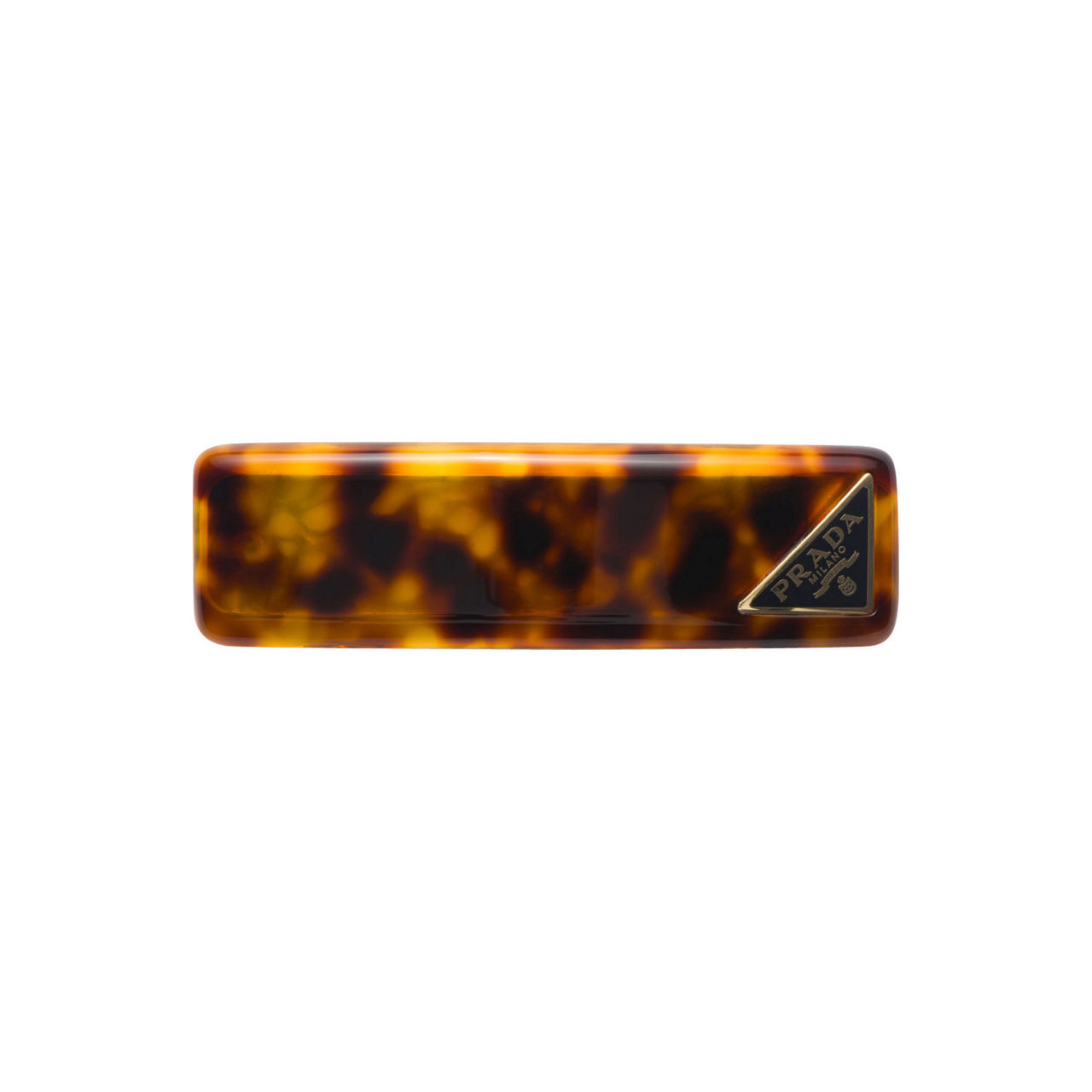 - Clip back fastening, tortoiseshell-pattern, plexiglas finish, enamelled metal triangle logo detail, gold-tone hardware